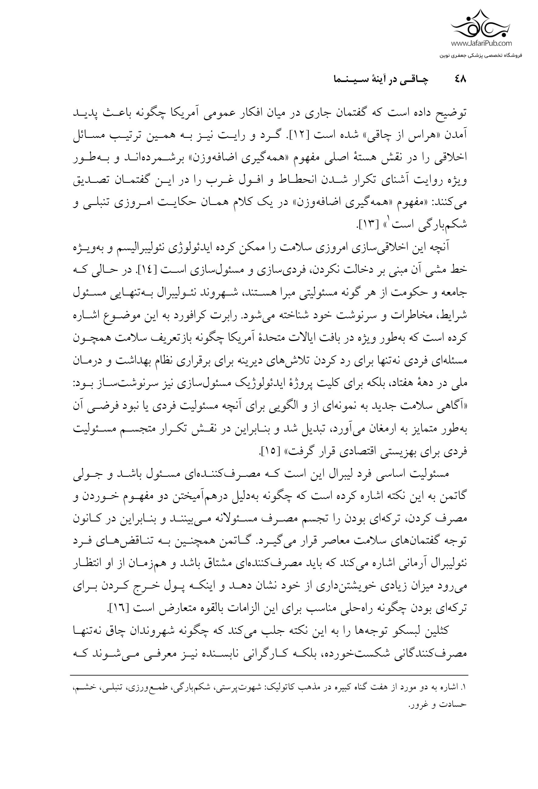سوالات متداول در مورد خرید کتاب چاقی در آینه سینما قیمت این کتاب چقدر است؟ قیمت این کتاب با تخفیف 352,800 تومان است. قیمت بدون تخفیف 360,000 تومان می باشد. این کتاب چه زمانی به دستم می رسد؟ برای کتاب های غیرلاتین، سفارش پس از 1 روز کاری جمع آوری و به پست یا پیک سپرده می شود. اگر مقصد تهران باشد و روش پیک انتخاب شود، در روزهای غیر تعطیل و ساعات کاری همان روز ارسال انجام می شود.