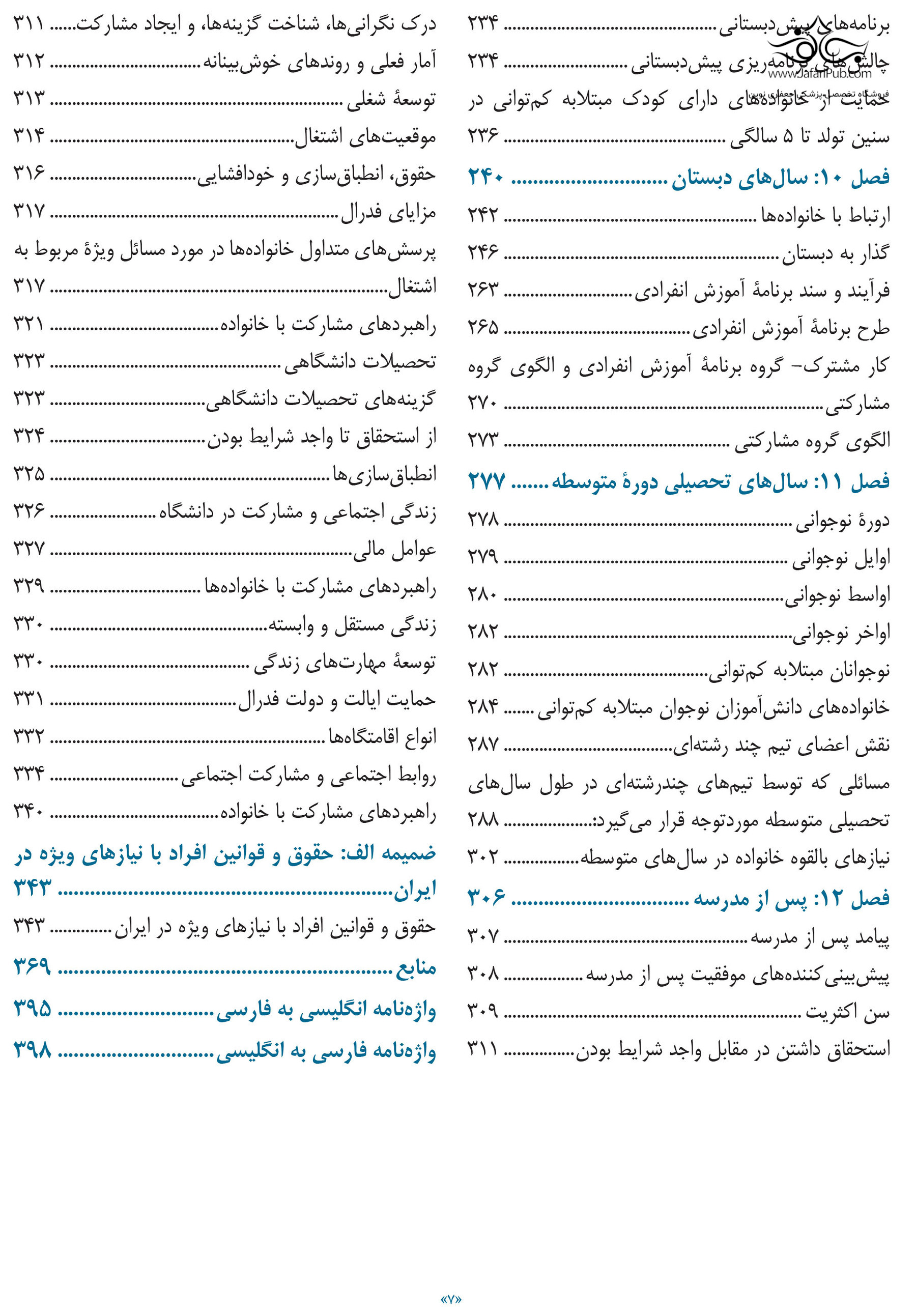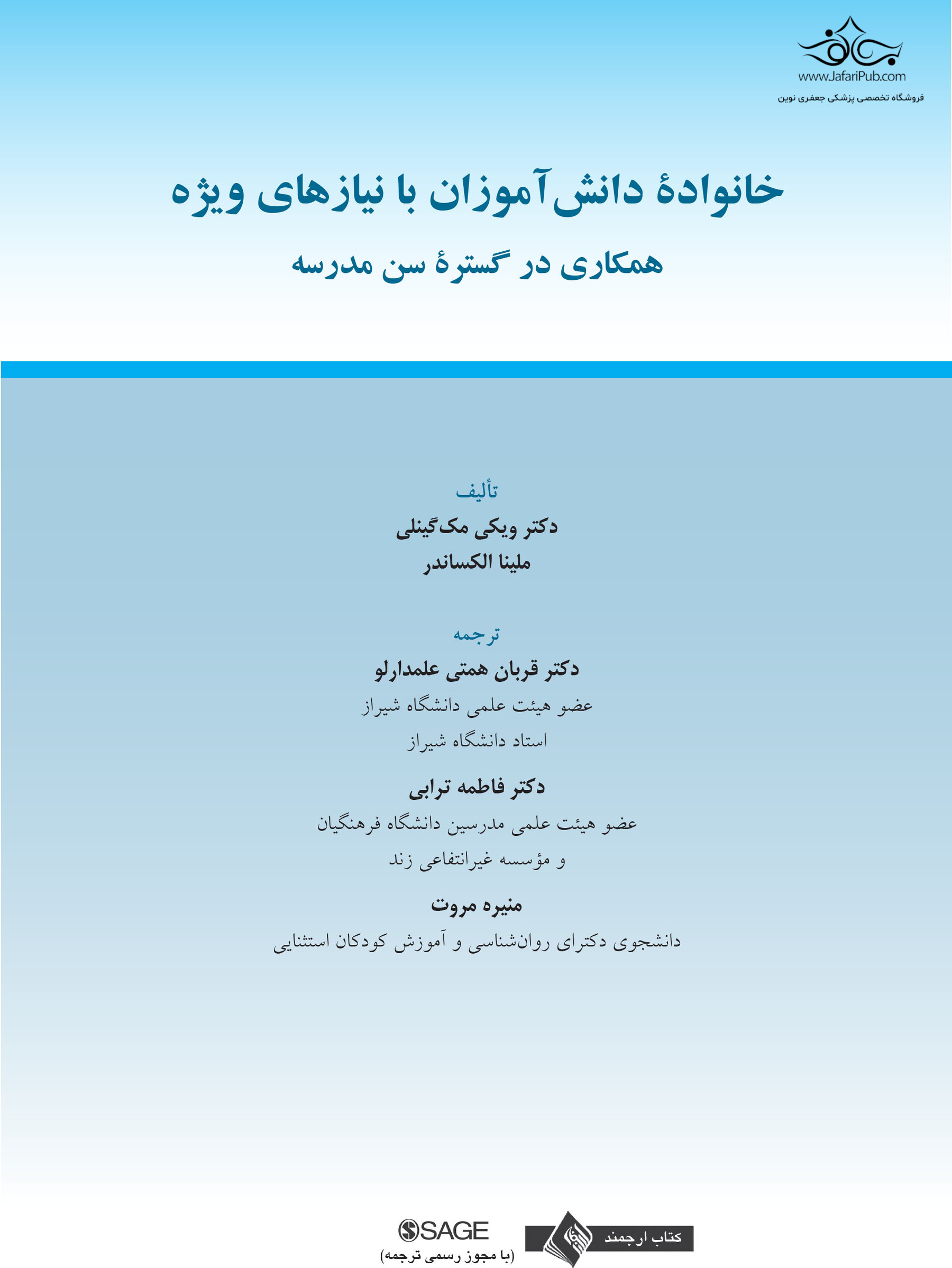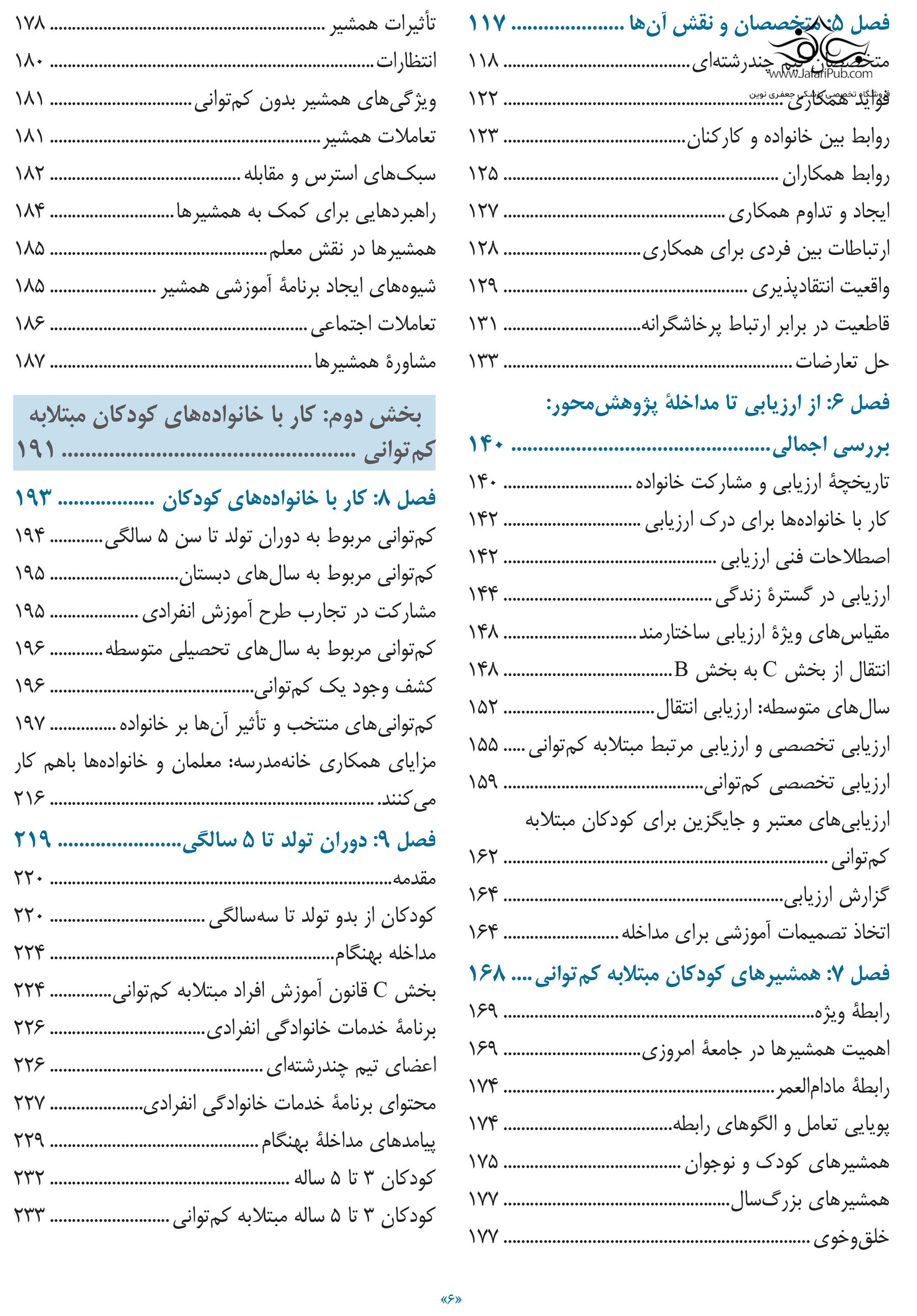 سوالات متداول در مورد خرید کتاب خانواده دانش آموزان با نیازهای ویژه همکاری در گستره سن مدرسه قیمت این کتاب چقدر است؟ قیمت این کتاب با تخفیف 578,200 تومان است. قیمت بدون تخفیف 590,000 تومان می باشد. این کتاب چه زمانی به دستم می رسد؟ برای کتاب های غیرلاتین، سفارش پس از 1 روز کاری جمع آوری و به پست یا پیک سپرده می شود. اگر مقصد تهران باشد و روش پیک انتخاب شود، در روزهای غیر تعطیل و ساعات کاری همان روز ارسال انجام می شود.