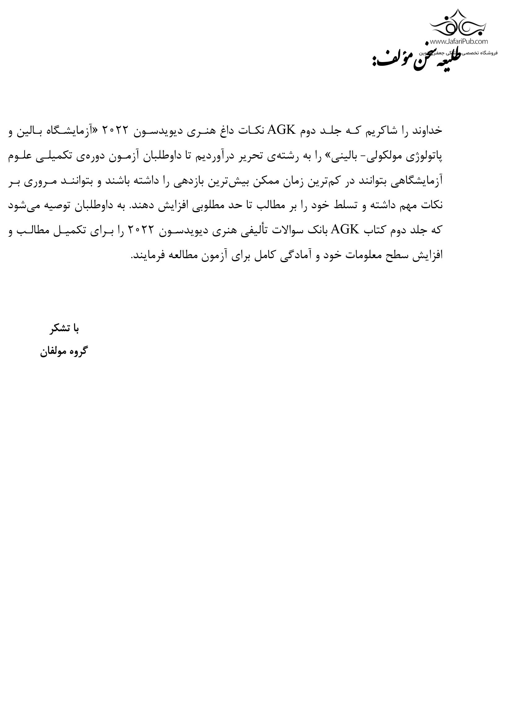 11% AGK بانک سوالات دوره تکمیلی تخصصی علوم آزمایشگاهی فلوشیپ کد کتاب : 190392 انتشارات گروه تالیفی دکتر خلیلی 750,000 تومانقیمت اصلی کتاب 750,000 تومان بود667,500 تومان قیمت فعلی کتاب 750,000 تومان است