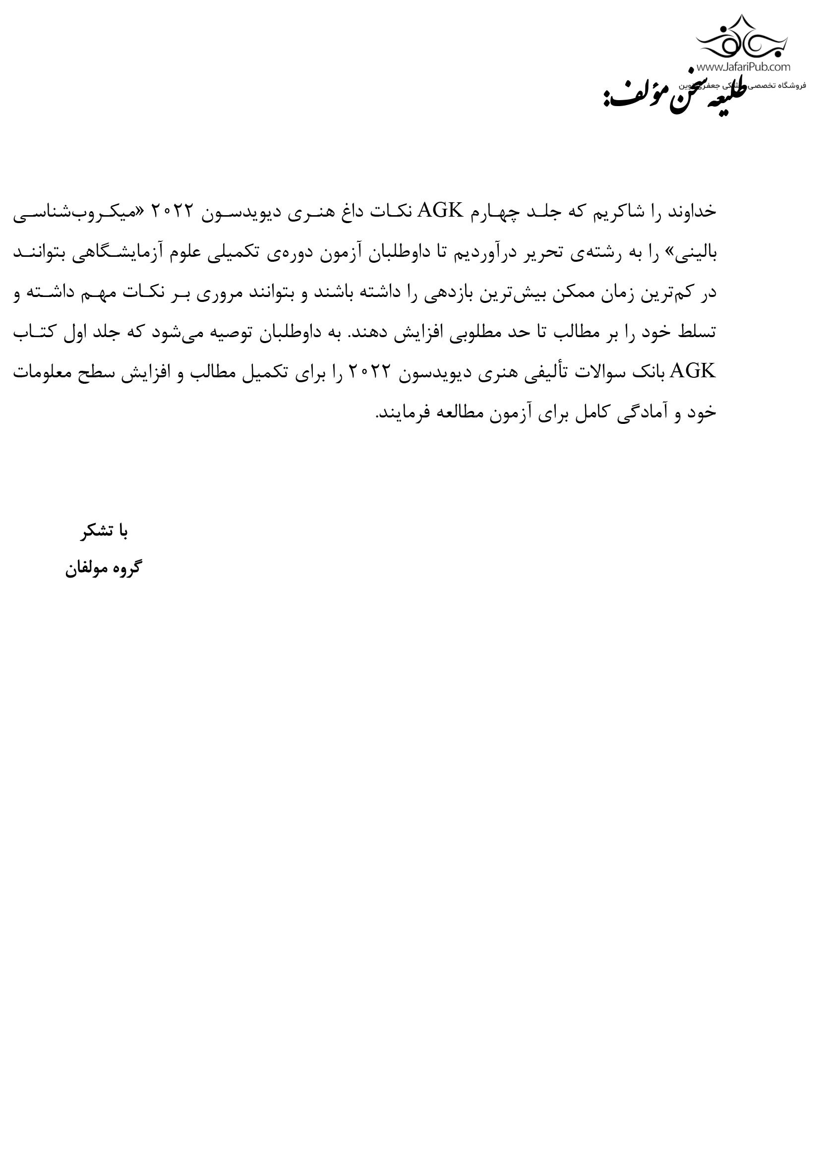 5% خلاصه دروس هنری دیویدسون جلد پنجم میکروبیولوژی 2022 (فصل64-56) کد کتاب : 190409 انتشارات جعفری 495,000 تومانقیمت اصلی کتاب 495,000 تومان بود470,250 تومان قیمت فعلی کتاب 495,000 تومان است