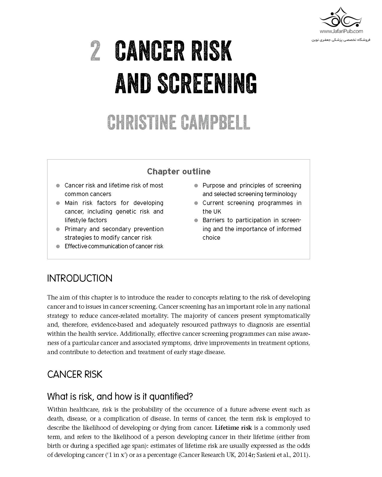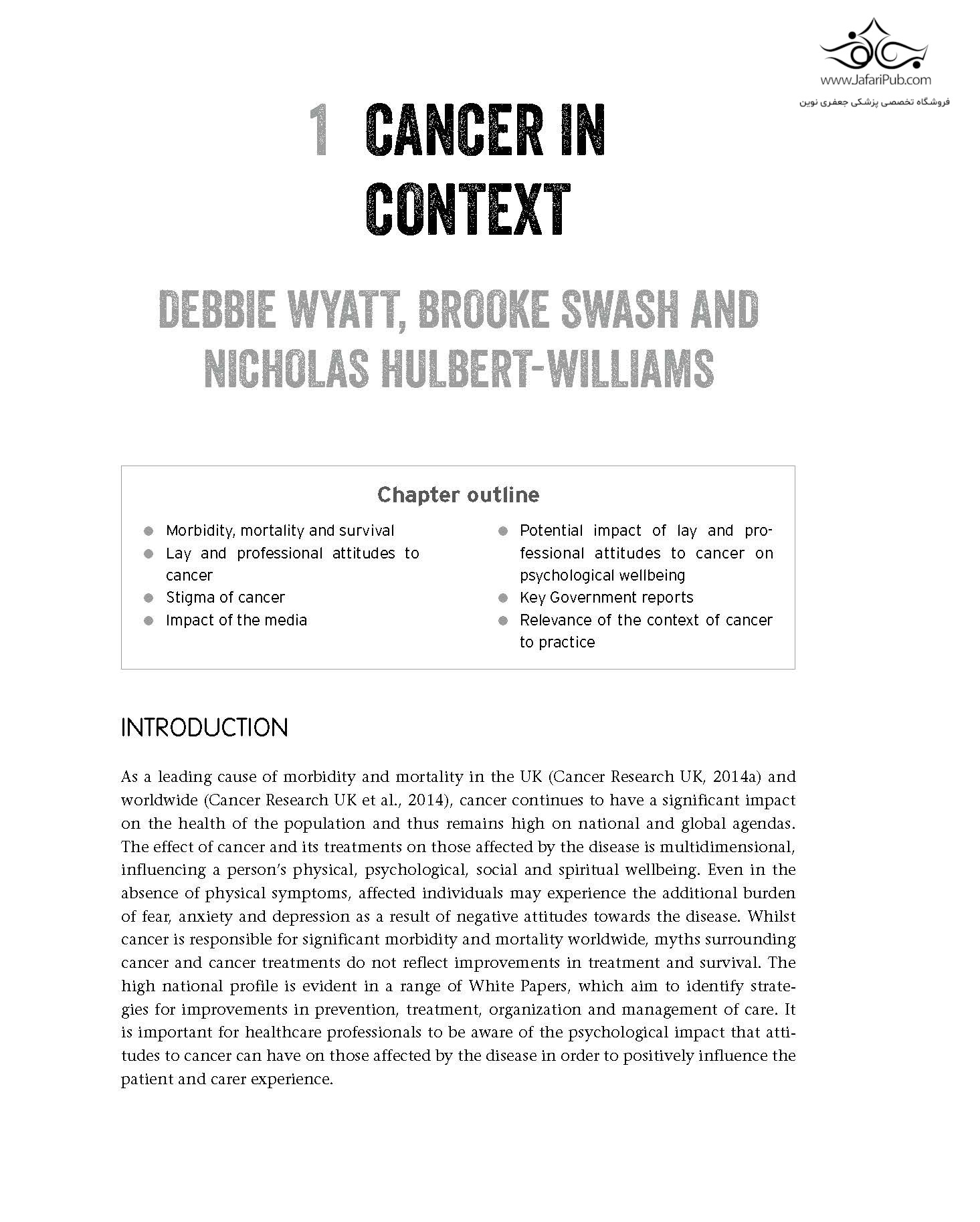 کتاب «سرطان و مراقبت از سرطان» مطالعه ای کامل در مورد سرطان، مراقبت از افراد مبتلا به این بیماری و تأثیر آن بر زندگی روزمره است. این کتاب با پرداختن به جنبه های جسمی و روانی-اجتماعی بیماری، تمام جنبه های اساسی تشخیص، درمان، بقا و جنبه های حمایت روانی-اجتماعی سرطان را برای همه افراد مبتلا به سرطان، یعنی بیماران، خانواده های آنها و ارائه دهندگان مراقبت های بهداشتی آنها، پوشش می دهد.