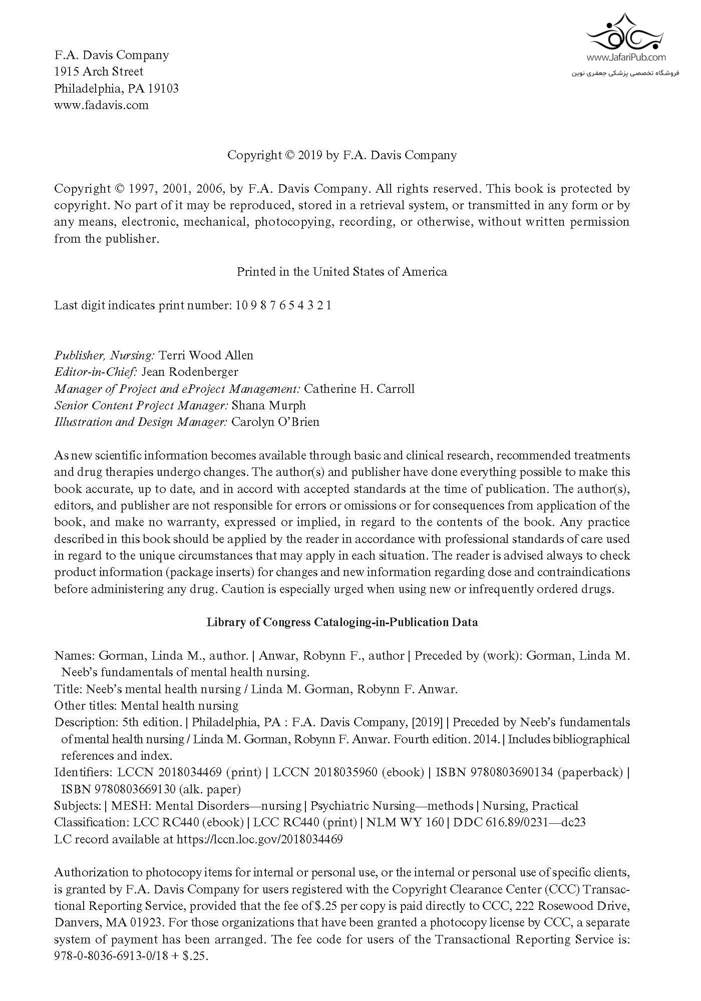 پرستاری سلامت روان نیب، ویرایش پنجم