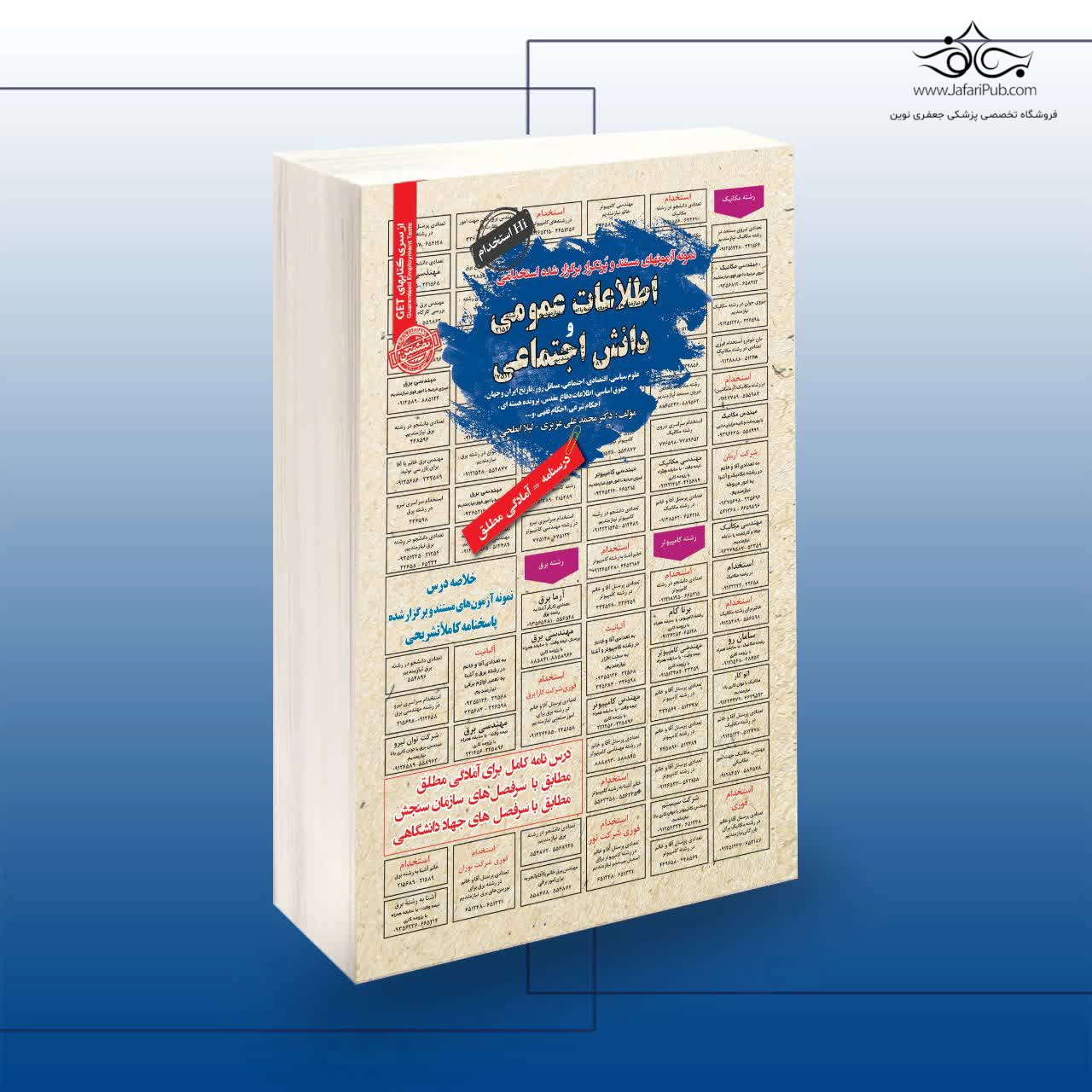 کتاب استخدامی اطلاعات عمومی یکی از مهم ترین منابع مطالعاتی برای داوطلبان آزمون های استخدامی دستگاه های اجرایی، بانک ها و شرکت های دولتی است. این کتاب با هدف افزایش آگاهی عمومی، دانش سیاسی، اجتماعی و فرهنگی داوطلبان تألیف شده تا آن ها را برای پاسخ گویی به سؤالات بخش عمومی آزمون ها آماده کند. در بیشتر آزمون های برگزارشده توسط سازمان اداری و استخدامی کشور و جهاد دانشگاهی، بخش اطلاعات عمومی سهم قابل توجهی از سؤالات را تشکیل می دهد؛ بنابراین، تسلط بر محتوای این کتاب می تواند نقش مهمی در قبولی ایفا کند.