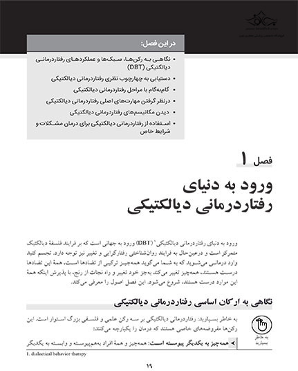 سوالات متداول در مورد خرید کتاب کتاب رفتاردرمانی دیالکتیکی به زبان ساده قیمت این کتاب چقدر است؟ قیمت این کتاب با تخفیف 456,000 تومان است. قیمت بدون تخفیف 465,000 تومان می باشد. این کتاب چه زمانی به دستم می رسد؟ برای کتاب های غیرلاتین، سفارش پس از 1 روز کاری جمع آوری و به پست یا پیک سپرده می شود. اگر مقصد تهران باشد و روش پیک انتخاب شود، در روزهای غیر تعطیل و ساعات کاری همان روز ارسال انجام می شود.