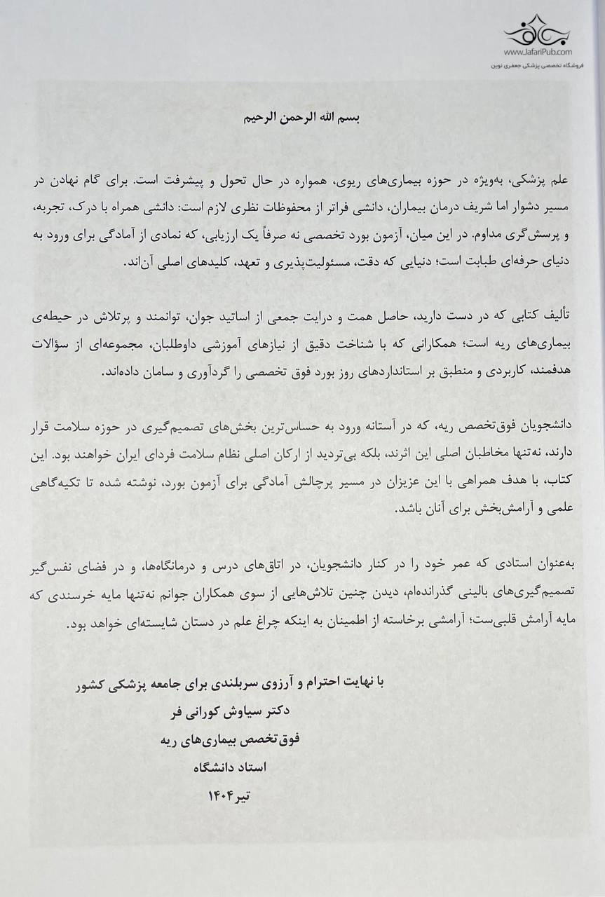 دارای 8% تخفیف مجموعه پرسش ها و پاسخ های تشریحی آزمون بورد فوق تخصص ریه - جلد سوم مجموعه پرسش ها و پاسخ های تشریحی آزمون بورد فوق تخصص ریه - جلد سوم مجموعه پرسش ها و پاسخ های تشریحی آزمون بورد فوق تخصص ریه - جلد سوم مجموعه پرسش ها و پاسخ های تشریحی آزمون بورد فوق تخصص ریه - جلد سوم مجموعه پرسش ها و پاسخ های تشریحی آزمون بورد فوق تخصص ریه - جلد سوم مجموعه پرسش ها و پاسخ های تشریحی آزمون بورد فوق تخصص ریه - جلد سوم مجموعه پرسش ها و پاسخ های تشریحی آزمون بورد فوق تخصص ریه - جلد سوم مجموعه پرسش ها و پاسخ های تشریحی آزمون بورد فوق تخصص ریه - جلد سوم مجموعه پرسش ها و پاسخ های تشریحی آزمون بورد فوق تخصص ریه - جلد سوم کد کتاب 00111781 (139 ) تالیفی و سوالات بورد بر اساس کتاب موری 2021 کانسرهای ریه فصول 73 الی 80 بیماری های اینتراستیشیال ریوی فصول 89 الی 99 ناشر : آرتین طب ( فهرست کتاب های انتشارات آرتین طب ) تعداد صفحه 374 چاپ رنگی زبان فارسی زیر نظر با مقدمه : دکتر سیاوش گورانی فر سال نشر 1404 شابک 9786222938666 قطع وزیری نوبت چاپ اول نویسنده دکتر طیبه محمد علیزاده - دکتر میلاد نصراله زاده - دکتر حسین کاظمی زاده - دکتر محسن صادقی - دکتر غزل روستایی - دکتر سید وحید محمودی موجود در انبار (قیمت و موجودی بروز می باشد ، با خیال راحت خرید کنید) 8% کتاب با 8 درصد تخفیف 800,000 تومانقیمت اصلی : 800,000 تومان بود736,000 تومان قیمت فعلی : 800,000 تومان است 0 ريال جمع تخفیف کالاهای اصلی 0 ريال جمع مبلغ پرداختی کالاهای اصلی 0 ريال جمع تخفیف کالاهای اجباری 0 ريال جمع مبلغ پرداختی کالاهای اجباری 0 ريال جمع تخفیف کالاهای اختیاری 0 ريال جمع مبلغ پرداختی کالاهای اختیاری تعداد درخواستی : سود شما از خرید : 0 جمع مبلغ پرداختی : 0 افزودن به سبد خرید