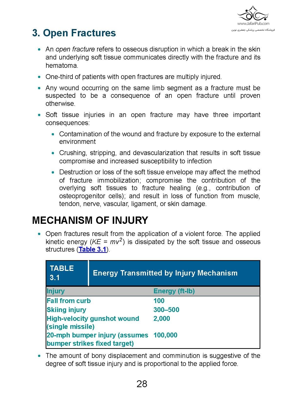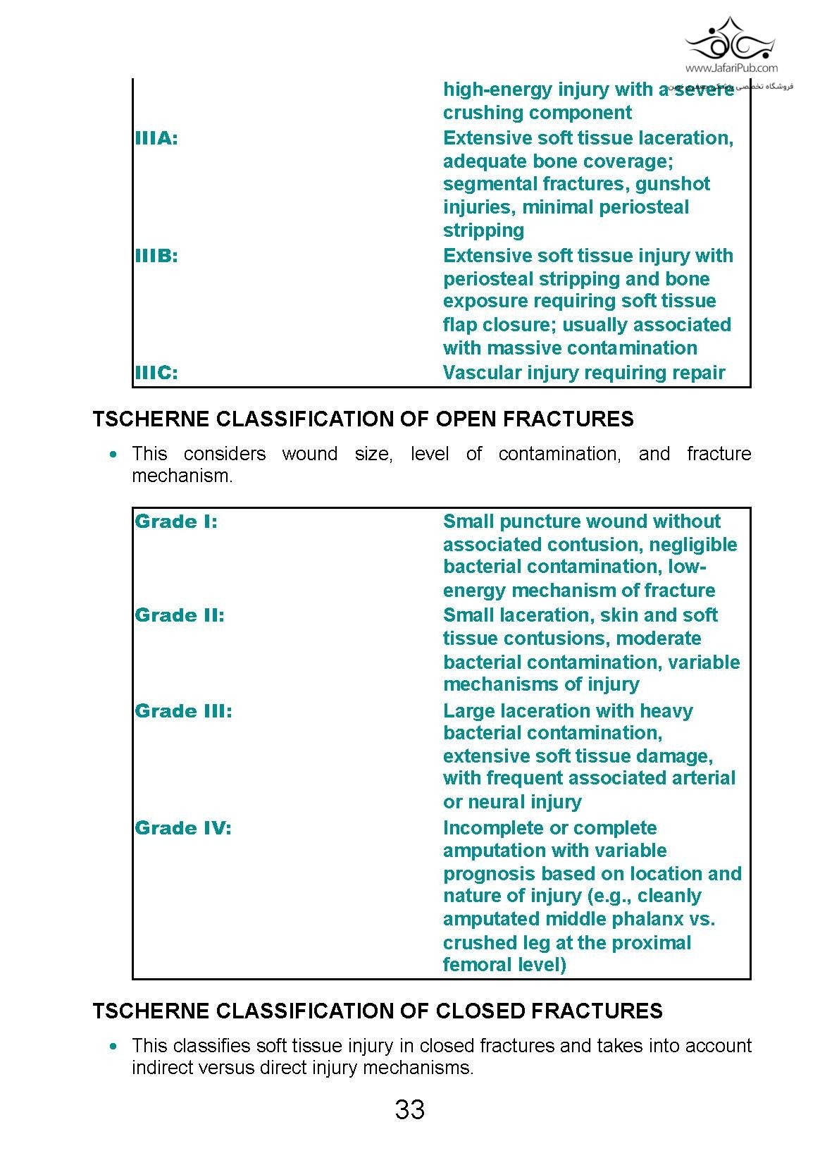 شامل تمام سیستم های طبقه بندی شکستگی های اصلی و پوشش مباحث ویژه مانند ترومای متعدد، زخم های گلوله، شکستگی های پاتولوژیک و اطراف پروتز و مسکن های ارتوپدی، و همچنین یک فصل جدید در مورد ارتوبیولوژیست ها