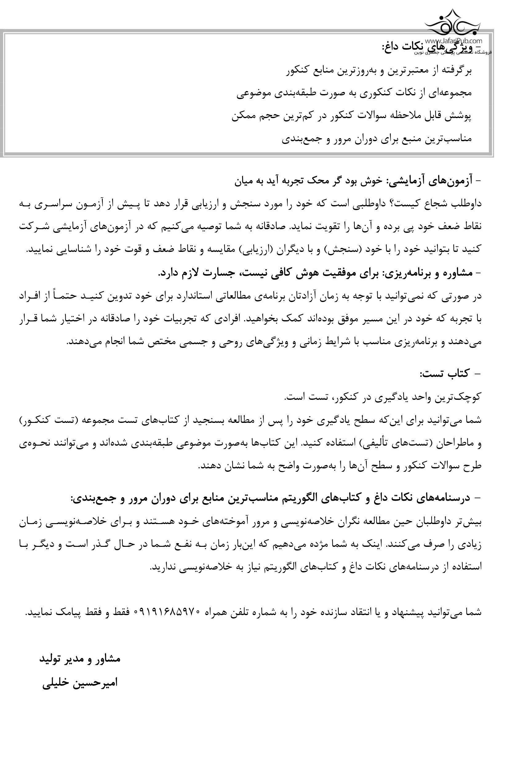 سوالات متداول در مورد خرید کتاب AGK نکات داغ ارزیابی فناوری سلامت (HTA) دو جلدی (ویژه کارشناسی ارشد رشته HTA) قیمت این کتاب چقدر است؟ قیمت این کتاب با تخفیف 312,000 تومان است. قیمت بدون تخفیف 350,000 تومان می باشد. این کتاب چه زمانی به دستم می رسد؟ برای کتاب های غیرلاتین، سفارش پس از 1 روز کاری جمع آوری و به پست یا پیک سپرده می شود. اگر مقصد تهران باشد و روش پیک انتخاب شود، در روزهای غیر تعطیل و ساعات کاری همان روز ارسال انجام می شود.