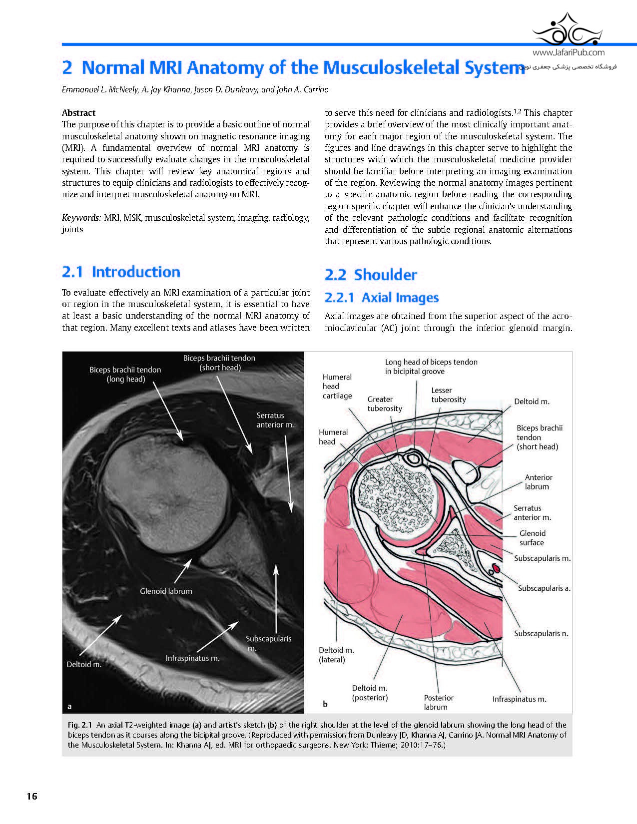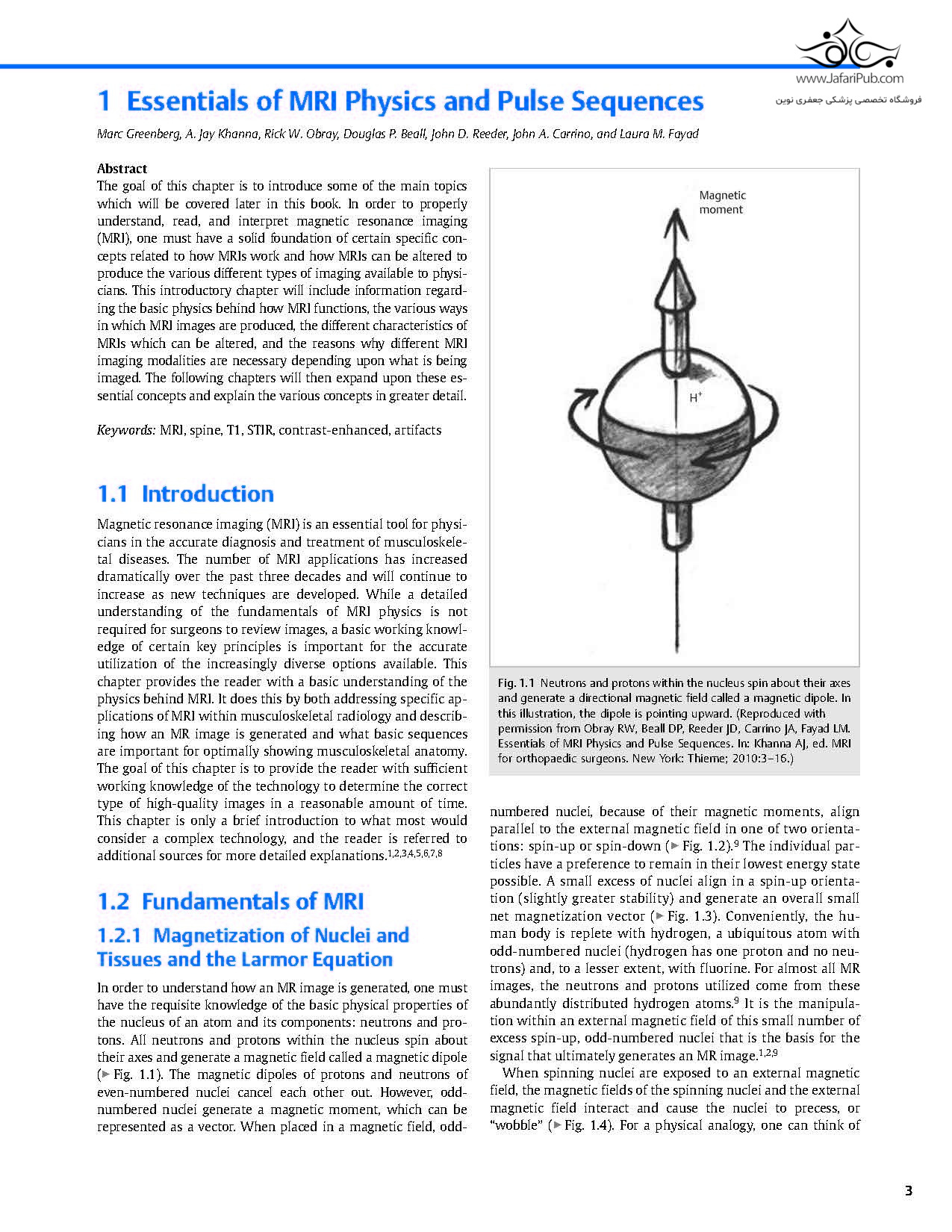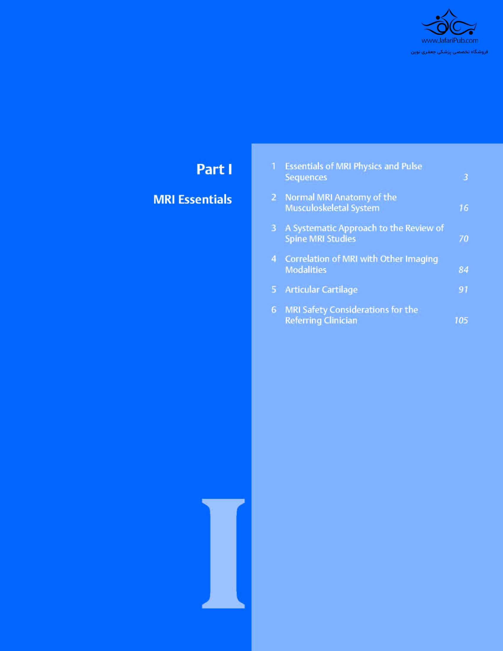 این کتاب درسی، سومین کتاب از یک مجموعه سه جلدی است که دو کتاب قبلی با عنوان های MRI برای جراحان ارتوپدی و MRI اصول برای متخصص ستون فقرات منتشر شده اند. این جلد شامل متن، تصاویر و نقاشی های مرتبط از کتاب های قبلی است، در حالی که شامل نظریه ها و شیوه های فعلی و جدید، مشارکت متخصصان شناخته شده و مطالب مصور اضافی است. ۲۱ فصل این کتاب در پنج بخش سازماندهی شده اند: ملزومات MRI، اندام فوقانی، اندام تحتانی، تصویربرداری عصبی و تومورها.