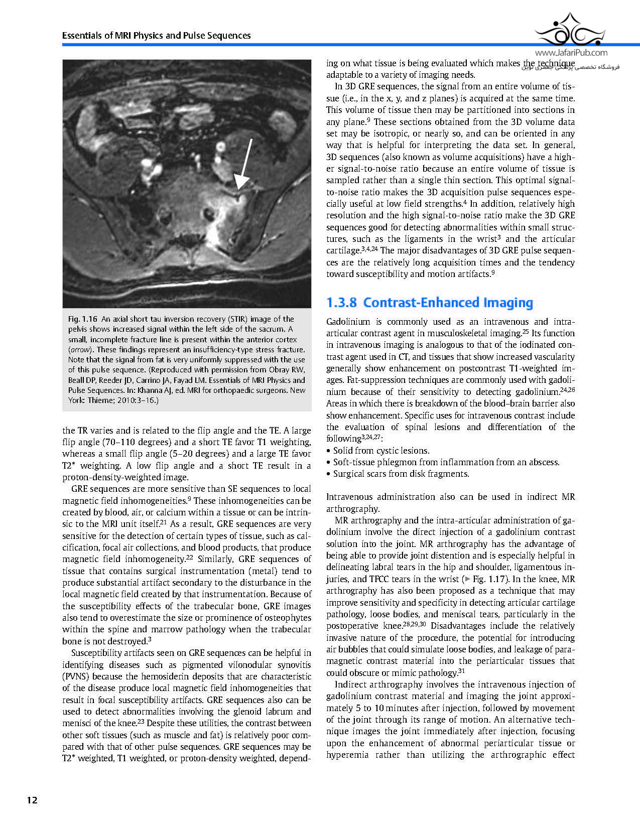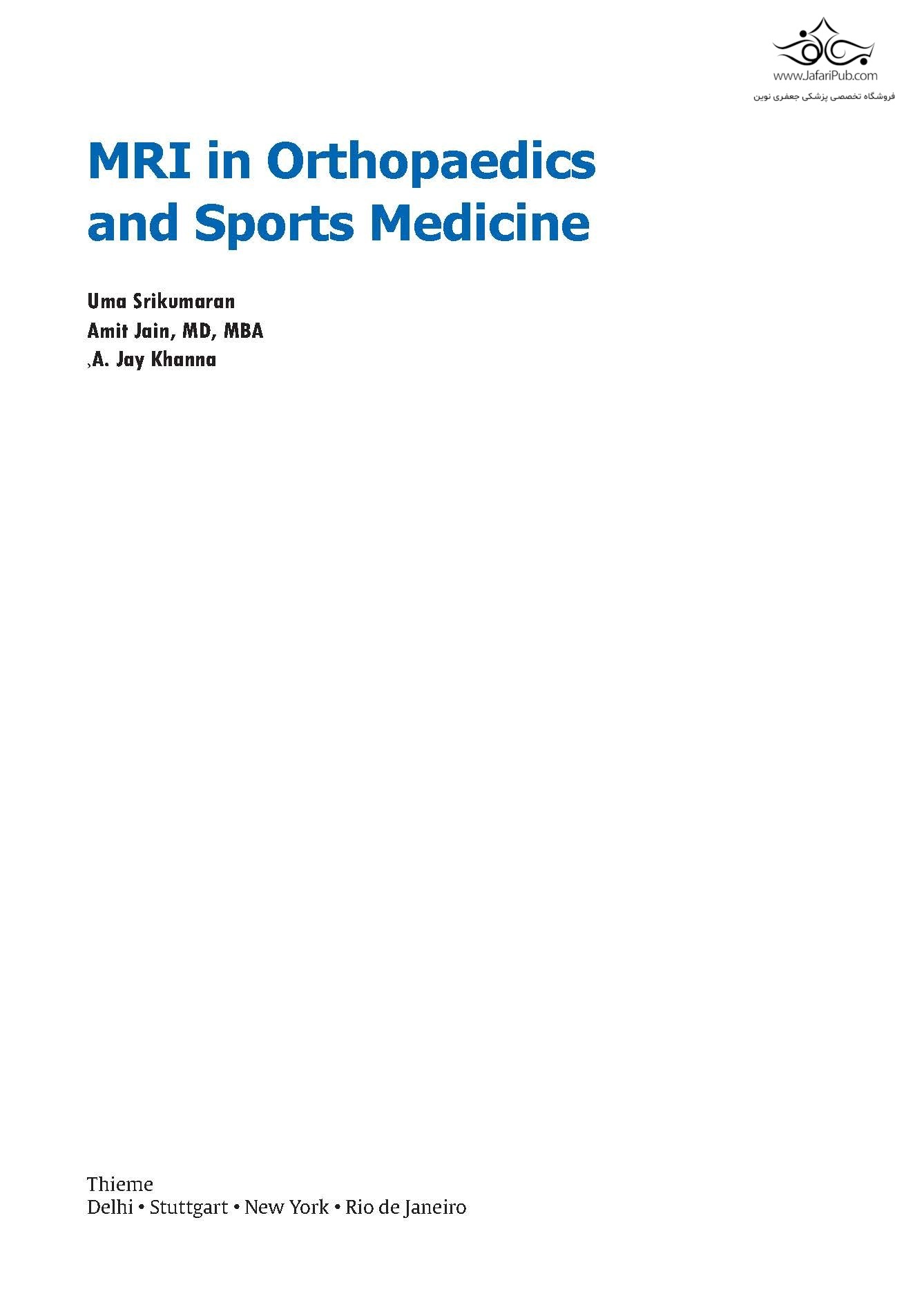 یک منبع ضروری جراحی ارتوپدی برای بررسی دقیق مطالعات MRI اسکلتی-عضلانی و ستون فقرات. اکثر جراحان ارتوپدی مهارت خواندن تشخیص های MRI را به صورت غیررسمی در طول دوره رزیدنتی، فلوشیپ و عمل بالینی می آموزند. برخلاف رادیولوژیست ها که برای ارزیابی مطالعات MRI به صورت سیستماتیک آموزش دیده اند، جراحان ارتوپدی به تخصص و تجربه آناتومیک متکی هستند که ممکن است دقیق ترین روش تفسیر نباشد. کتاب MRI در ارتوپدی و پزشکی ورزشی: اصول ویرایش شده توسط اوما سریکوماران، آمیت جین و ای. جی خانا، مبنایی اساسی برای درک MRI و تفسیر آنها در یک زمینه بالینی ارائه می دهد.