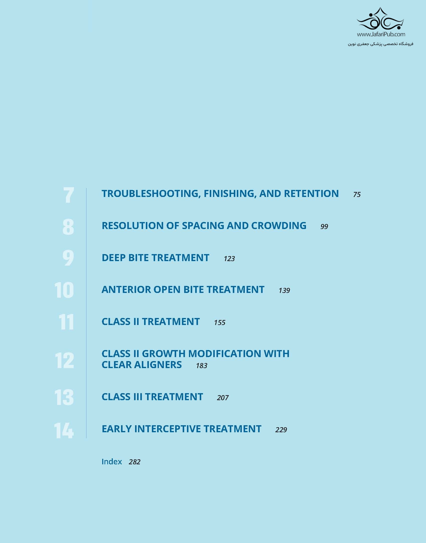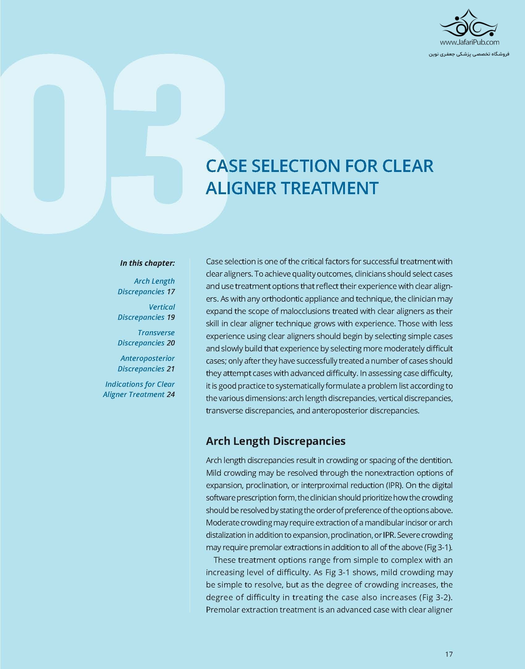 این ویرایش دوم از متن پرفروش و معتبر در مورد الاینرهای شفاف، از ابتدا تا انتها به طور کامل به روزرسانی شده است و پروتکل های گام به گام ویرایش اول را در بر می گیرد، اما شامل تمام تصاویر جدید برنامه ریزی و مرحله بندی دیجیتال برای انعکاس جدیدترین نرم افزارها، موارد جدید در هر فصل بالینی و آخرین پیشرفت ها در فناوری و قابلیت های الاینرهای شفاف است. به طور خاص، مفهوم ترکیب پروتکل های قدامی-خلفی با پروتکل های عمودی برای درمان کلاس II و کلاس III معرفی شده است تا به پزشکان در تدوین برنامه های درمانی برای انواع مختلف مال اکلوژن کمک کند. این ویرایش همچنین شامل فصل های کاملاً جدیدی در مورد اصلاح رشد کلاس II و درمان زودهنگام مداخله ای با گسترش فک بالا است، زیرا الاینرهای شفاف از زمان انتشار ویرایش اول به طور گسترده در این زمینه ها توسعه یافته اند. این ویرایش دوم که دارای ۳۲ مورد بالینی است، شامل ویدیویی برای هر مورد است که طراحی طرح درمان دیجیتال، از جمله الگوهای مرحله بندی، طراحی اتصال و طرح اکلوزال نهایی را توضیح می دهد. در نهایت، کتابشناسی به روزرسانی شده است تا منعکس کننده جدیدترین تحقیقات در مورد درمان الاینرهای شفاف باشد. بیماران بیش از هر زمان دیگری خواهان درمان ارتودنسی زیبایی هستند و الاینرهای شفاف از همیشه توانمندترند، بنابراین آینده روشن است. دریابید که با الاینرهای شفاف چقدر می توانید کار کنید! فهرست مطالب فصل 1. تاریخچه مختصری از دستگاه ارتودنسی فصل 2. مقایسه ای بین دستگاه های ثابت و الاینرهای شفاف فصل 3. انتخاب مورد برای درمان الاینرهای شفاف فصل 4. گردش کار دیجیتال و نظارت بر درمان فصل 5. برنامه ریزی درمان دیجیتال و طراحی نرم افزار فصل 6. مرحله بندی حرکات دندان در طرح نرم افزار دیجیتال فصل 7. عیب یابی، تکمیل و حفظ فصل 8. رفع فاصله و شلوغی فصل 9. درمان دیپ بایت فصل 10. درمان اپن بایت قدامی فصل 11. درمان کلاس II فصل 12. اصلاح رشد کلاس II با الاینرهای شفاف فصل 13. درمان کلاس III فصل 14. درمان زودهنگام مداخله ای