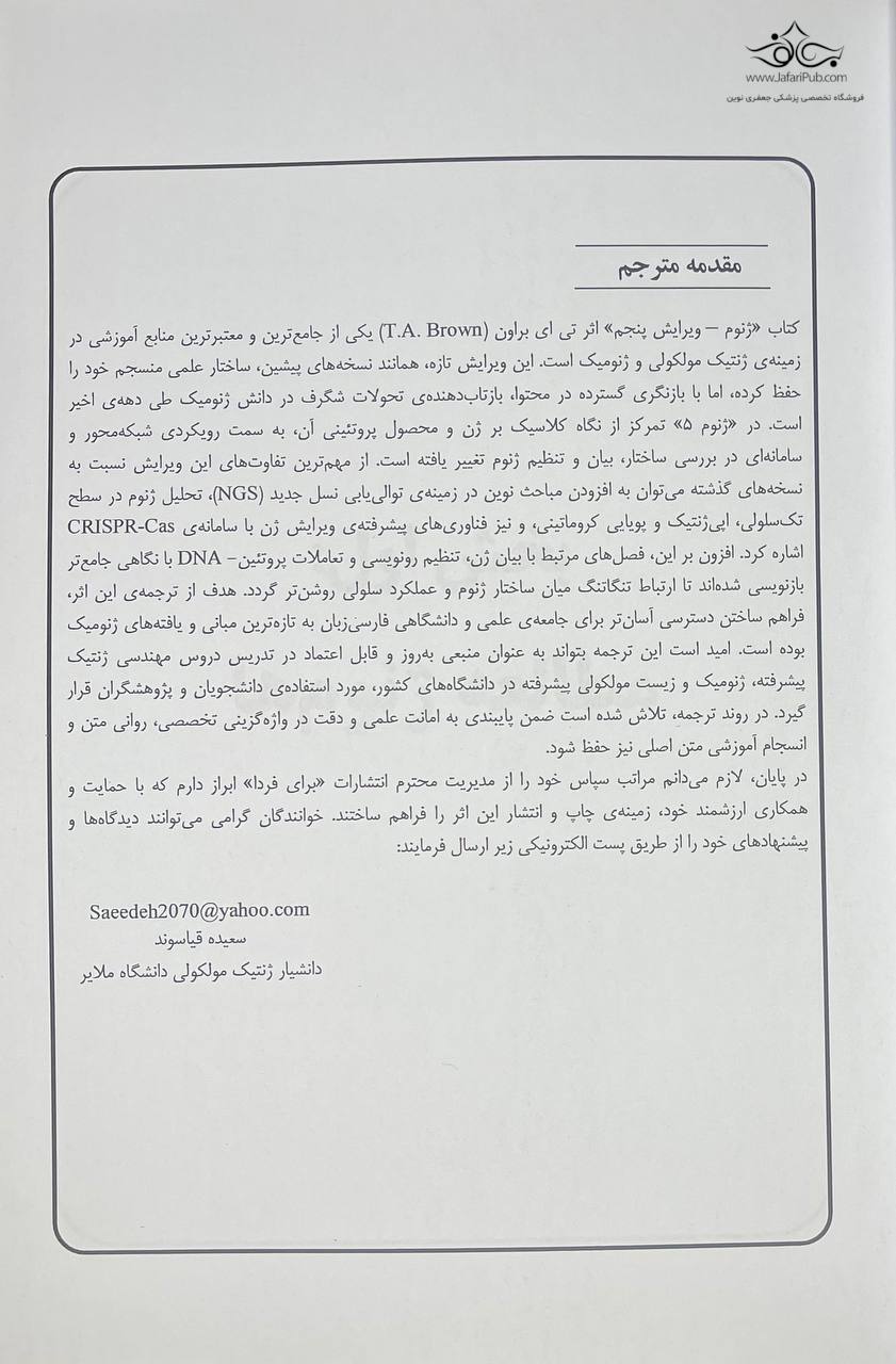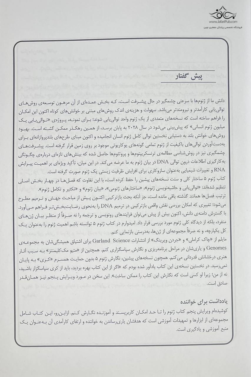 سوالات متداول در مورد خرید کتاب ژنوم 5 قیمت این کتاب چقدر است؟ قیمت این کتاب با تخفیف 765,000 تومان است. قیمت بدون تخفیف 900,000 تومان می باشد. این کتاب چه زمانی به دستم می رسد؟ برای کتاب های غیرلاتین، سفارش پس از 1 روز کاری جمع آوری و به پست یا پیک سپرده می شود. اگر مقصد تهران باشد و روش پیک انتخاب شود، در روزهای غیر تعطیل و ساعات کاری همان روز ارسال انجام می شود.
