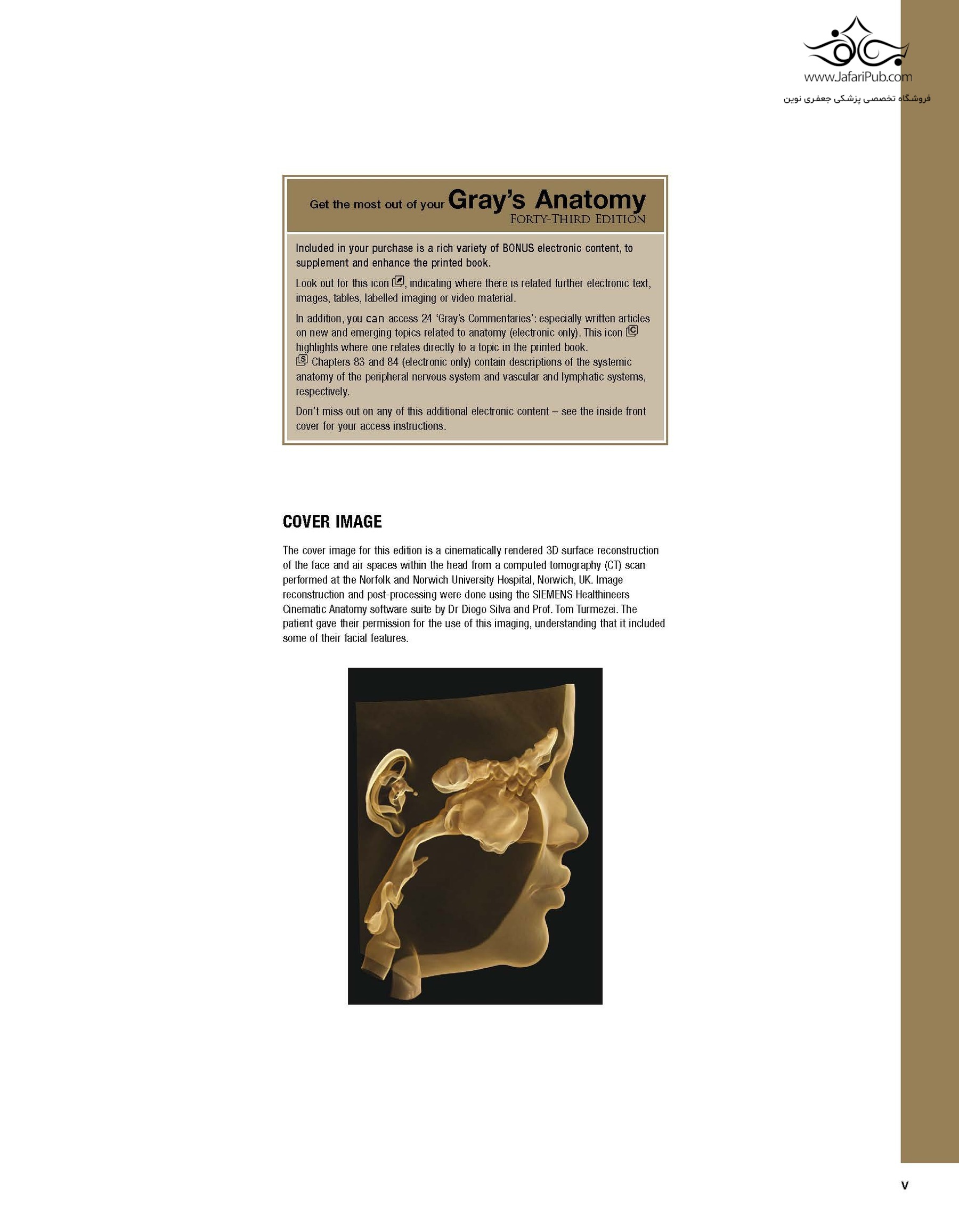 با تکیه بر این سنت برتری و اعتبار، ویرایش چهل و سوم آناتومی گری توسط آناتومیست ها، دانشمندان و جراحان برجسته جهان به دقت بازنگری و به روزرسانی شده است تا پوشش بی نظیر و مبتنی بر شواهد از آناتومی ناحیه ای، نوروآناتومی، زیست شناسی سلولی، جنین زایی و رشد را ارائه دهد. دیدگاهی مبتنی بر سیستم ها از طریق فصل های اضافی در کتاب الکترونیکی همراه ارائه شده است.