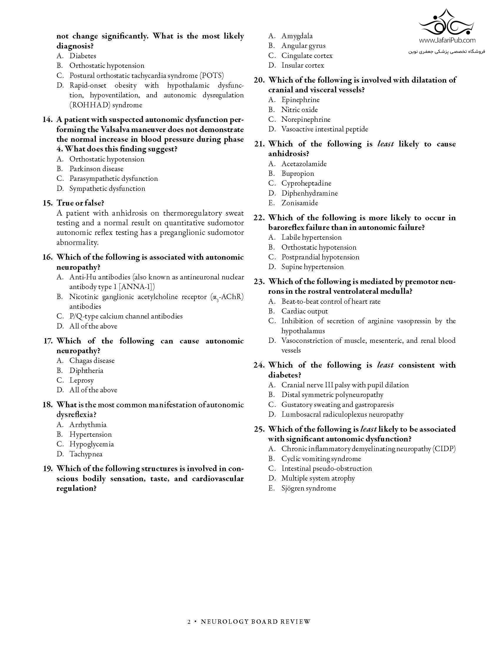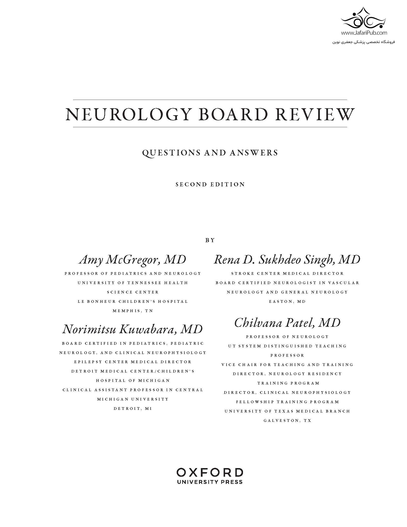 این ویرایش دوم به روز شده و گسترش یافته که شامل بیش از ۱۱۰۰ سوال نوشته شده در قالب های مختلف است، شامل پیشرفت هایی در مغز و اعصاب و نوروژنتیک، تصاویر و جداول اضافی و توضیحات واضح از دستورالعمل های اخیر است. این کتاب نه تنها برای متخصصان مغز و اعصاب که برای آزمون بورد تخصصی آماده می شوند، بلکه برای دانشجویان پزشکی در طول دوره های کارآموزی خود، و همچنین پزشکان داخلی و پزشکی خانواده، متخصصان اطفال، جراحان مغز و اعصاب، پزشکان اورژانس، متخصصان مراقبت های ویژه و دانشمندان علوم اعصاب که می خواهند دانش خود را به روز کنند، بسیار مفید است.