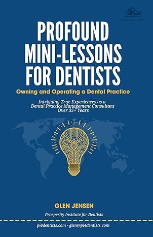 In Profound Mini-Lessons for Dentists, veteran consultant Glen Jensen shares the unbelievable true stories from 35+ years of saving dental practices – each one packed with eye-opening lessons, suspense, and laugh-out-loud moments that will leave you wiser (and glad it didn’t happen to you!).