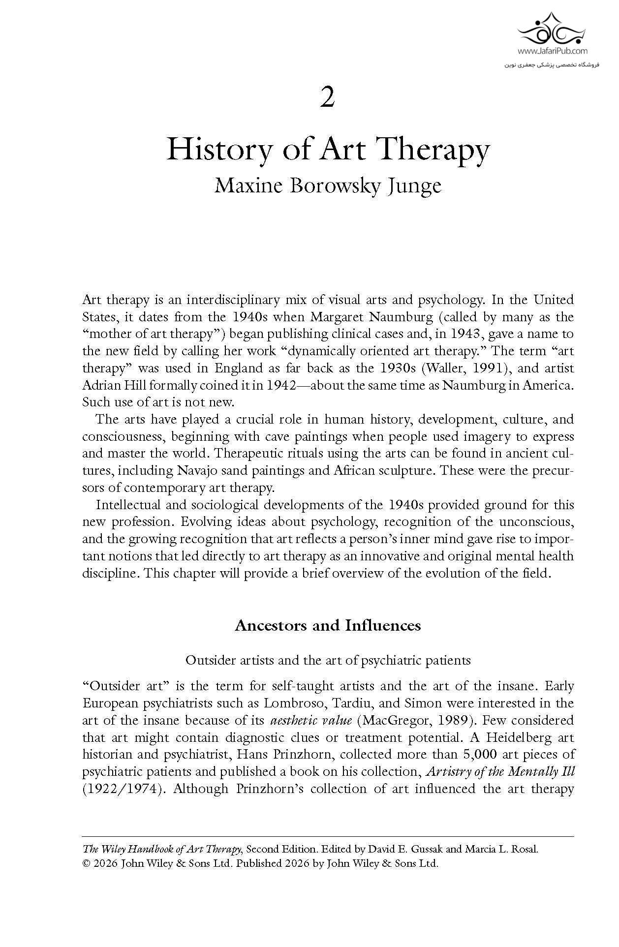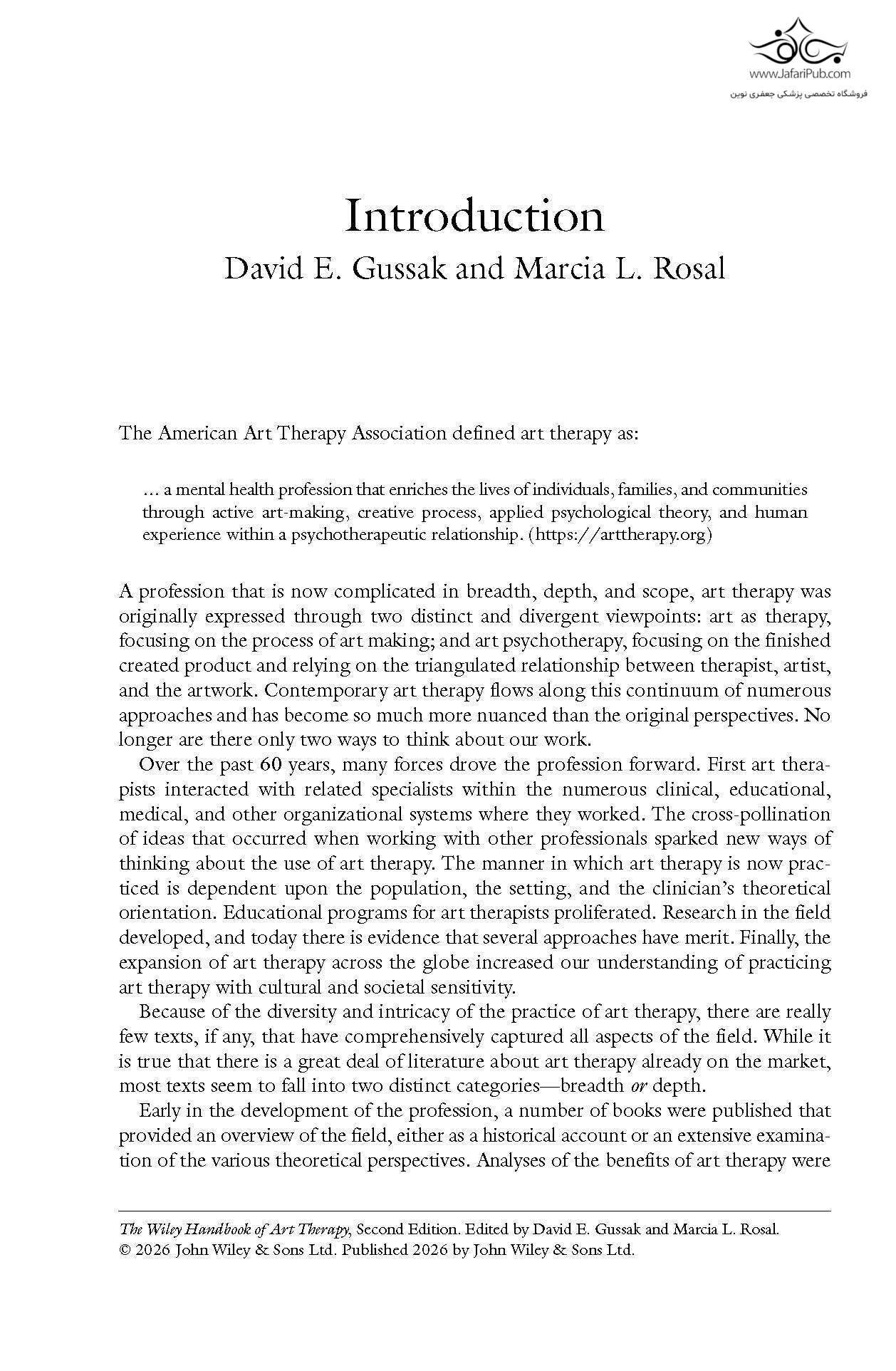 در ویرایش دوم کتاب راهنمای هنر درمانی وایلی که به تازگی ویرایش شده است، تیمی از درمانگران برجسته هنر، مجموعه ای بی سابقه از عمق و وسعت را در مورد موضوع هنر درمانی ارائه می دهند. این کتاب تصویری معاصر و جامع از حرفه ای است که از زمان انتشار ویرایش اول این کتاب، دستخوش تحولات عمیقی شده است.