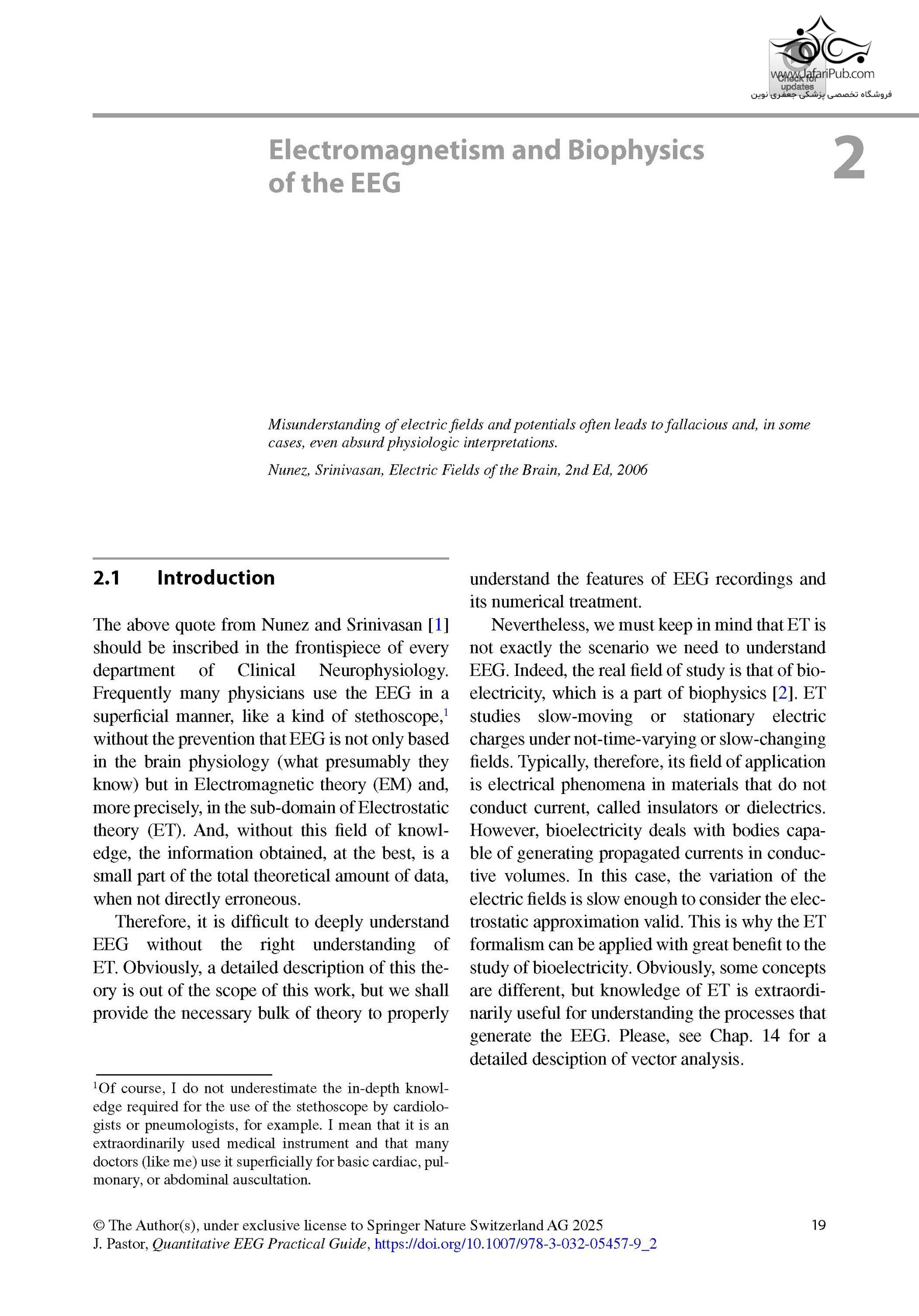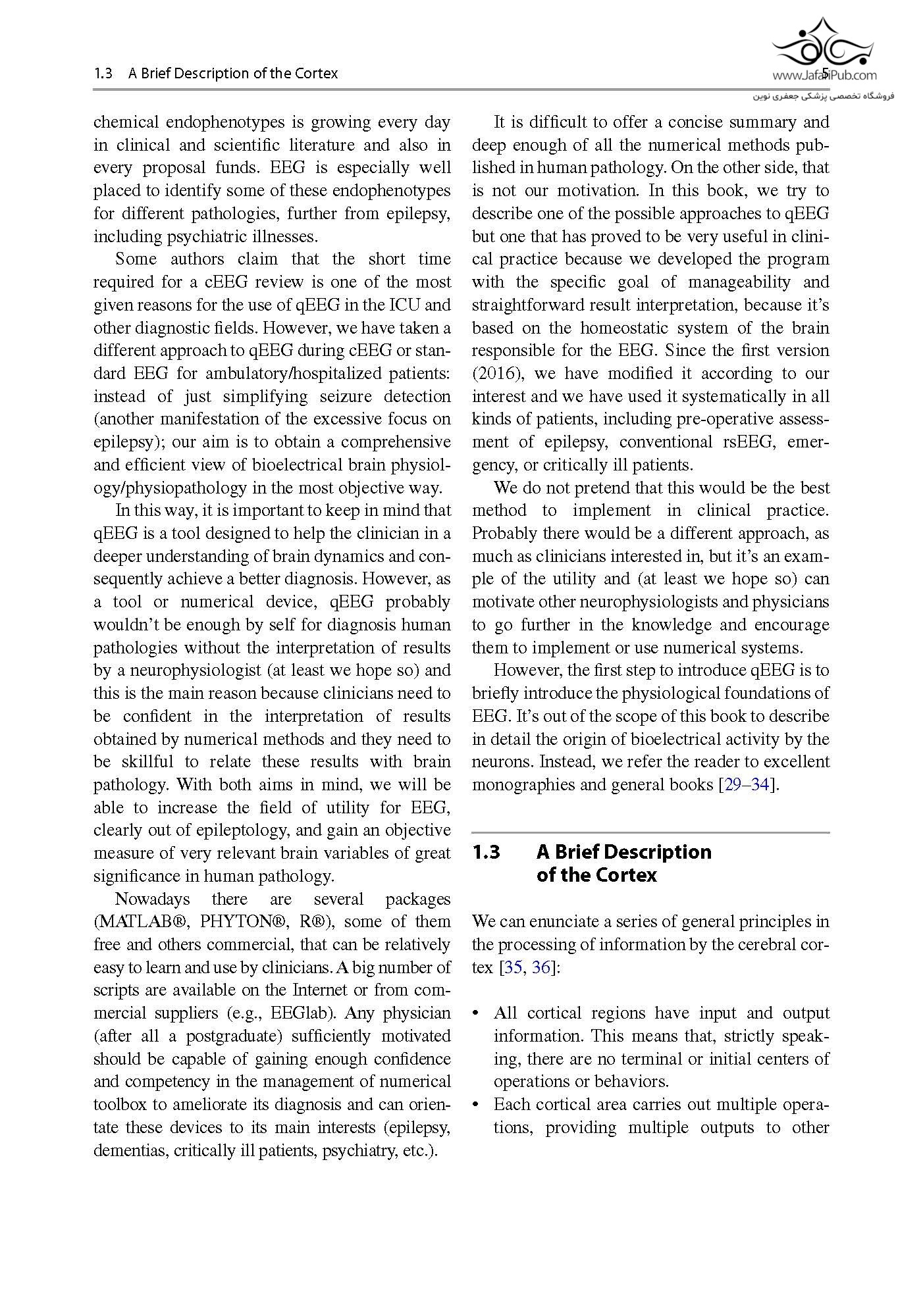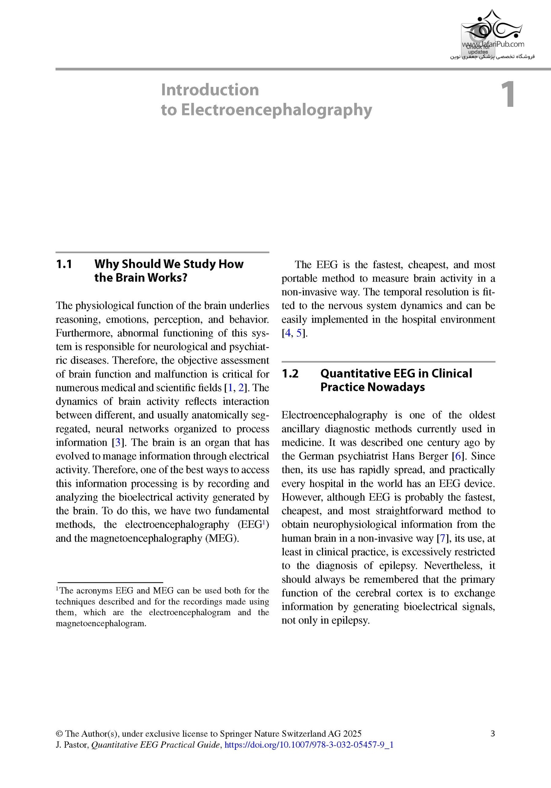 هدف اصلی این کتاب، ارائه دانش ضروری و مبانی نظری مورد نیاز برای انجام EEG دیجیتال و ادغام EEG کمی (qEEG) در عمل بالینی معمول به پزشکان است. خوانندگان درک روشنی از اصول پشت qEEG به دست خواهند آورد و یاد می گیرند که چگونه برخی از پرکاربردترین ابزارهای عددی را برای تجزیه و تحلیل EEG به کار گیرند.