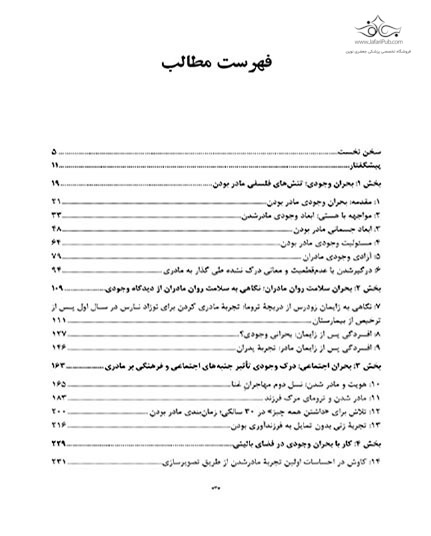 سوالات متداول در مورد خرید کتاب بحران وجودی مادر شدن قیمت این کتاب چقدر است؟ قیمت این کتاب با تخفیف 525,000 تومان است. قیمت بدون تخفیف 535,500 تومان می باشد. این کتاب چه زمانی به دستم می رسد؟ برای کتاب های غیرلاتین، سفارش پس از 1 روز کاری جمع آوری و به پست یا پیک سپرده می شود. اگر مقصد تهران باشد و روش پیک انتخاب شود، در روزهای غیر تعطیل و ساعات کاری همان روز ارسال انجام می شود.