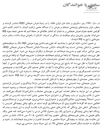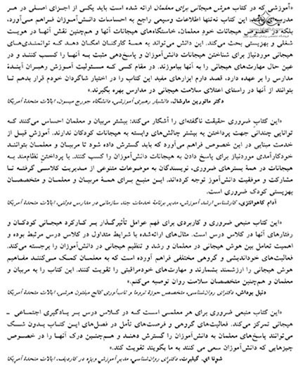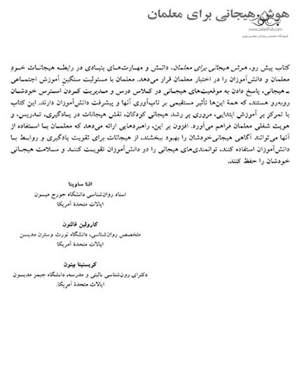 سوالات متداول در مورد خرید کتاب هوش هیجانی برای معلمان قیمت این کتاب چقدر است؟ قیمت این کتاب با تخفیف 343,000 تومان است. قیمت بدون تخفیف 350,000 تومان می باشد. این کتاب چه زمانی به دستم می رسد؟ برای کتاب های غیرلاتین، سفارش پس از 1 روز کاری جمع آوری و به پست یا پیک سپرده می شود. اگر مقصد تهران باشد و روش پیک انتخاب شود، در روزهای غیر تعطیل و ساعات کاری همان روز ارسال انجام می شود.