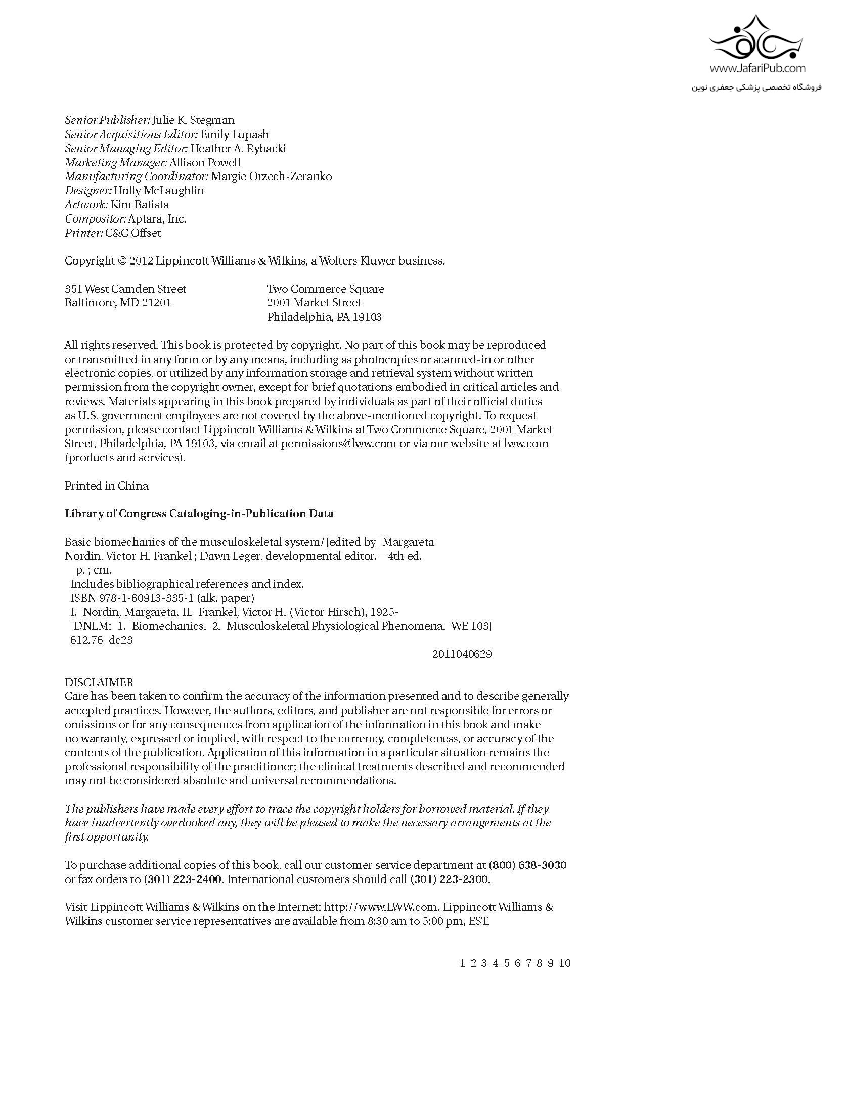 سوالات متداول در مورد خرید کتاب Basic Biomechanics of the Musculoskeletal System, Fourth Edition 2012 قیمت این کتاب چقدر است؟ قیمت این کتاب بسته به نوع جلد و نسخه متفاوت است و از 1,738,000 تومان شروع می شود. در حال حاضر با تخفیف 1,564,000 تومان عرضه می شود. این کتاب چه زمانی به دستم می رسد؟ برای کتاب های انگلیسی یا لاتین، زمان تحویل بین 3 تا 6 روز کاری است.