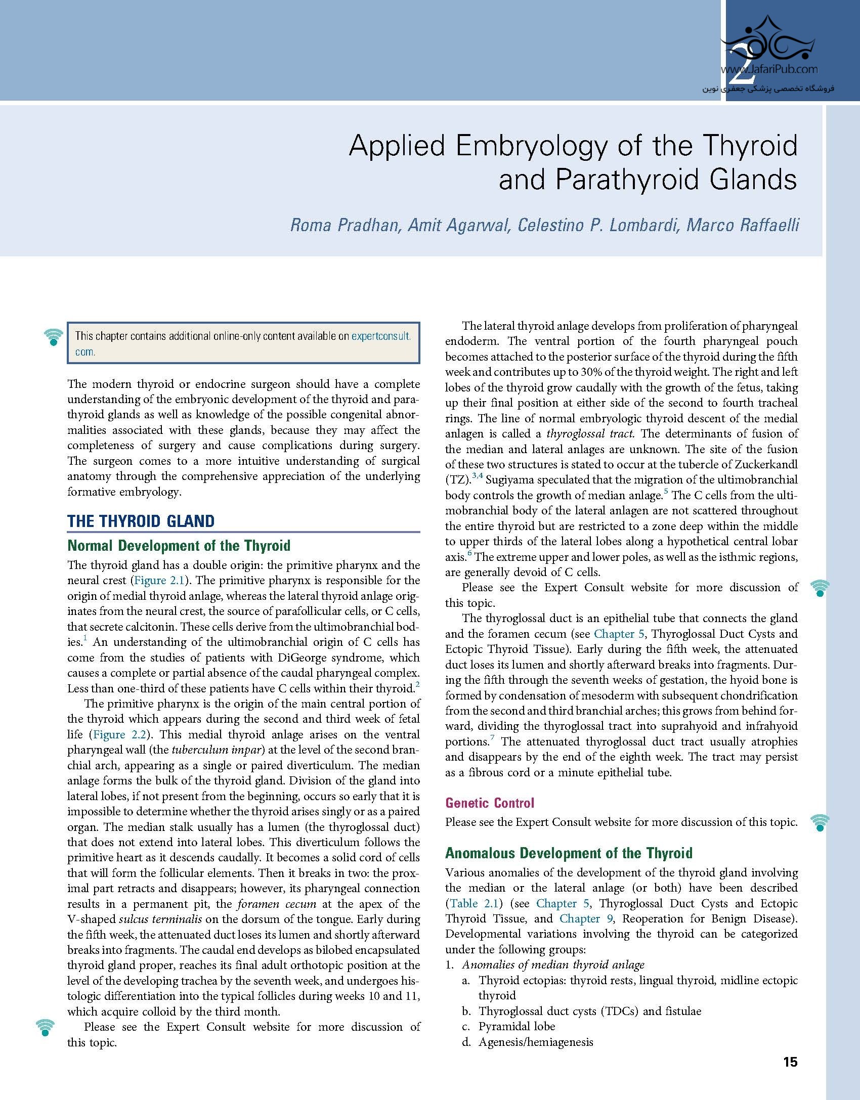 فصل های ساده و قالب بندی شده، ارزیابی قبل از عمل، آناتومی جراحی، تکنیک های حین عمل و مدیریت پس از عمل را برای طیف کاملی از اختلالات غدد تیروئید و پاراتیروئید پوشش می دهند. بیش از 30 ویدیوی عملی، شما را گام به گام در جراحی کم تهاجمی تیروئید، آناتومی جراحی و پایش عصب راجعه حنجره، جراحی سرطان تیروئید پیشرفته موضعی و بیماری غدد لنفاوی و موارد دیگر راهنمایی می کنند؛ به علاوه 23 ویدیوی راهنمای فصل از نویسندگان با سردبیر بخش ویدیوهای متنی جراحی، گرگوری دبلیو. راندولف جونیور.