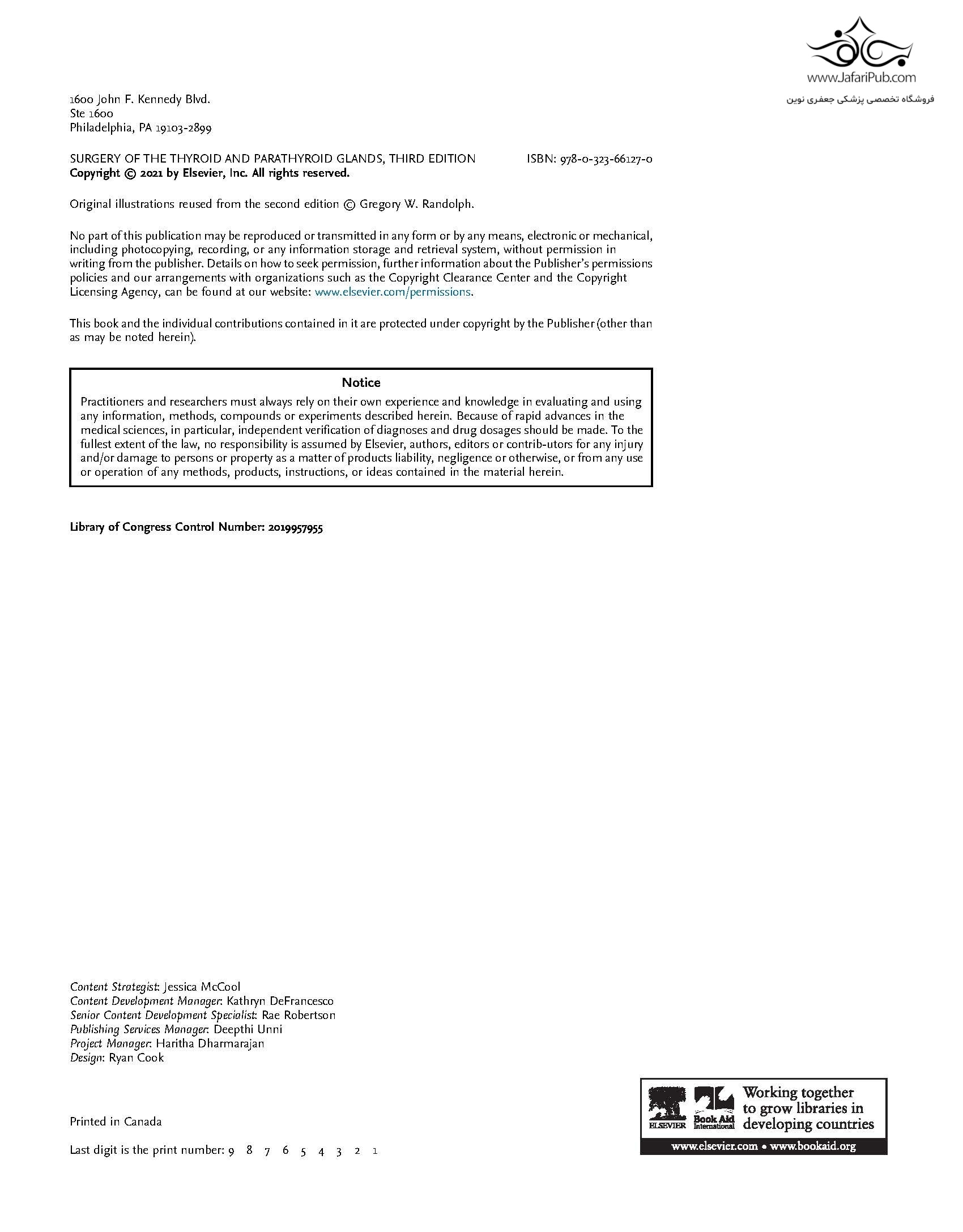 ویرایش سوم کتاب «جراحی غدد تیروئید و پاراتیروئید»، با گردآوری بیش از ۱۲۰ متخصص از رشته های گوش و حلق و بینی، جراحی عمومی، غدد درون ریز و آسیب شناسی، رویکردی میان رشته ای به مدیریت جراحی و درمان بیماری های خوش خیم و بدخیم ارائه می دهد. این متن/اطلس مشهور، منبعی ایده آل برای تمام سطوح تجربه جراحی است: برای رزیدنت ها و جراحان جوان، تمام آناتومی، روش های جراحی و بررسی های مربوطه را به وضوح ارائه می دهد؛ برای جراحان باتجربه، جزئیات مدیریت موارد دشوار، از جمله جراحی ترمیمی را شرح می دهد. این ویرایش که با تصاویر فراوان و ده ها ویدیو همراه است، شما را با زنجیره کامل مراقبت در جراحی تیروئید و پاراتیروئید به روز می کند.