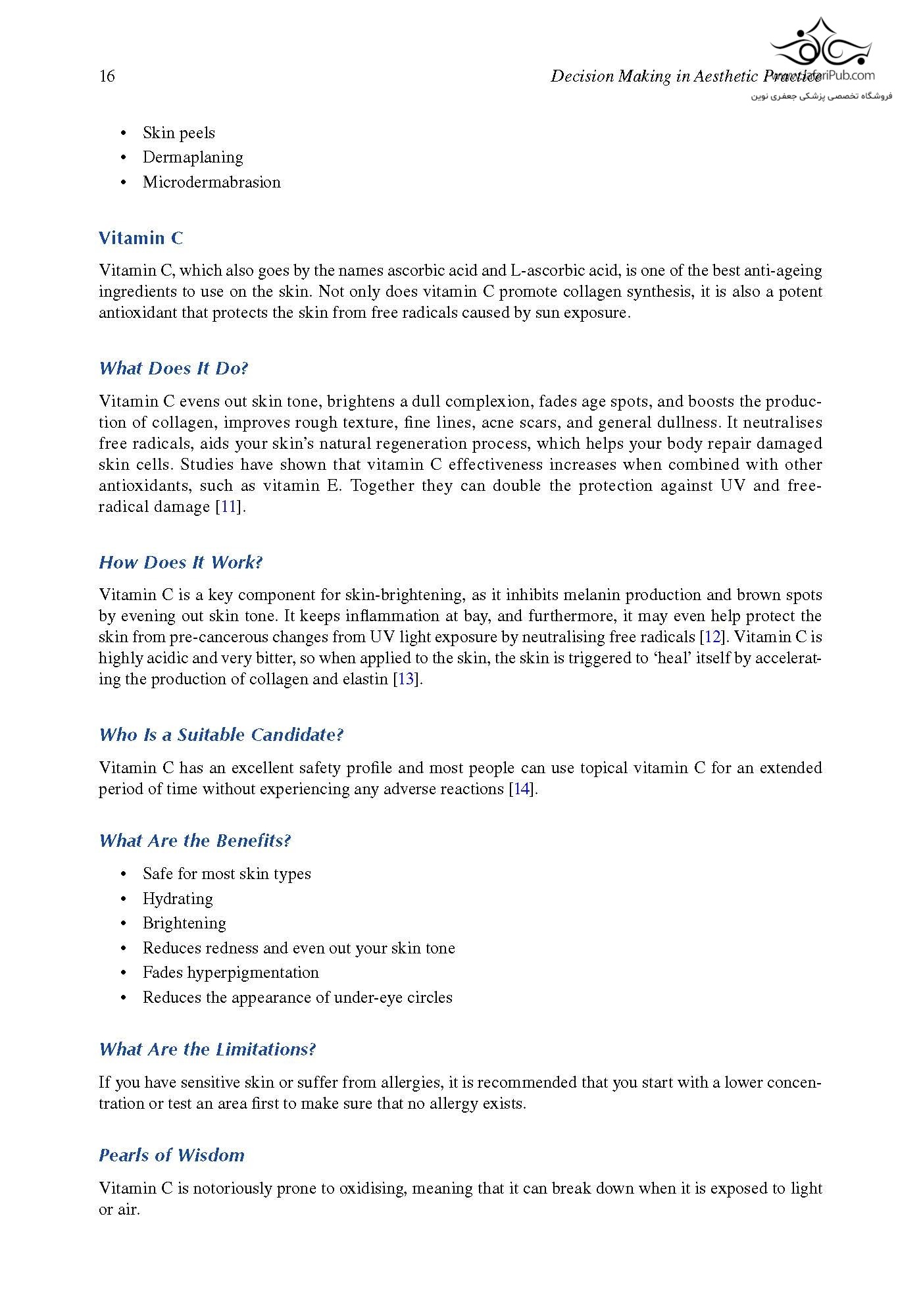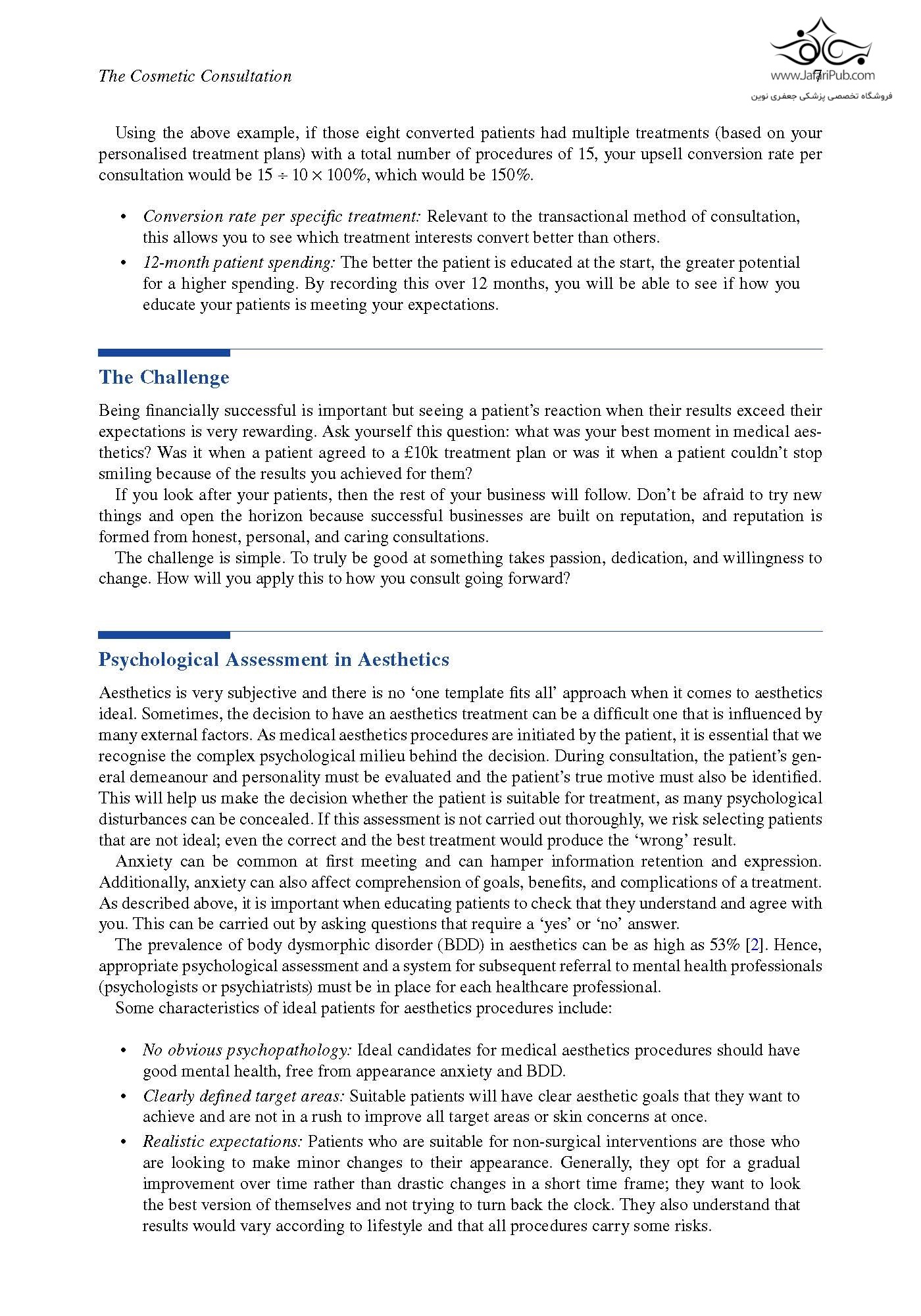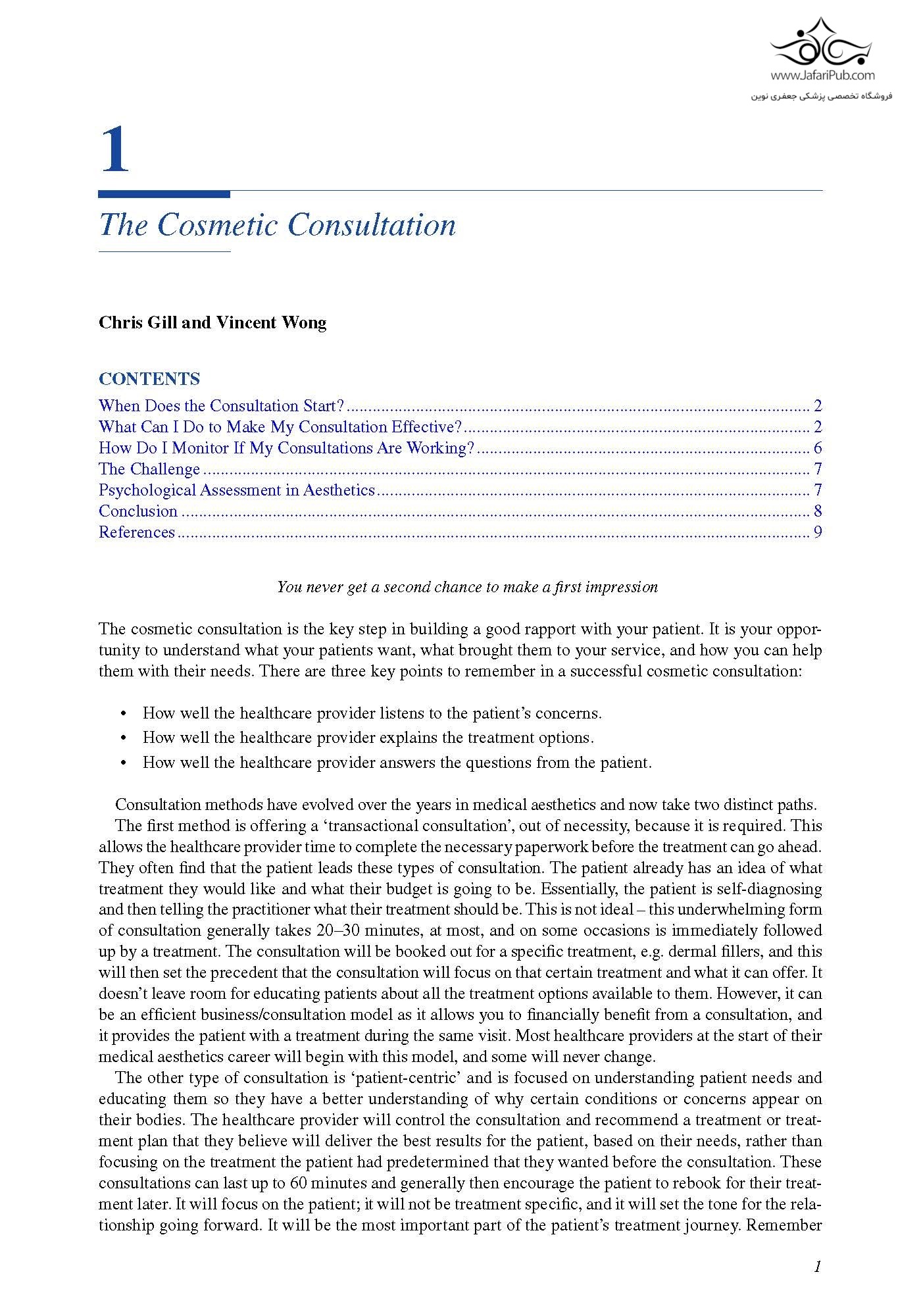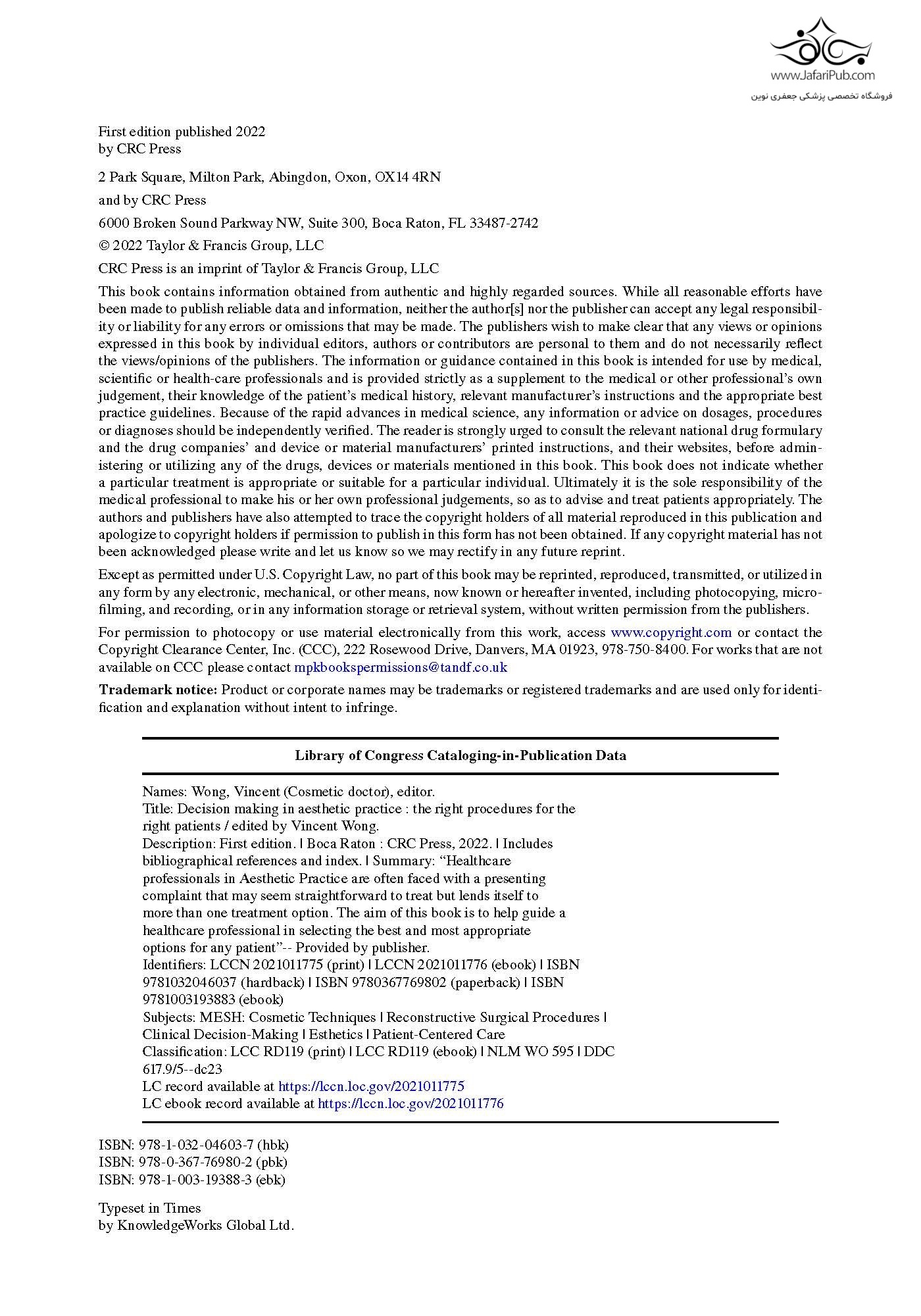 متخصصان مراقبت های بهداشتی در عمل زیبایی شناسی اغلب با شکایتی مواجه می شوند که ممکن است درمان آن ساده به نظر برسد، اما خود را به بیش از یک گزینه درمانی می رساند. برای دستیابی و ارائه بهترین نتایج با ظاهر طبیعی، برخی نکات اساسی در مورد صورت باید رعایت شود. باید درک خوبی از علت اصلی شکایت هر بیمار وجود داشته باشد. و این دانش باید به طور موثر با بیمار ارتباط برقرار کند. هدف این کتاب کمک به راهنمایی یک متخصص مراقبت های بهداشتی در انتخاب بهترین و مناسب ترین گزینه برای هر بیمار است.