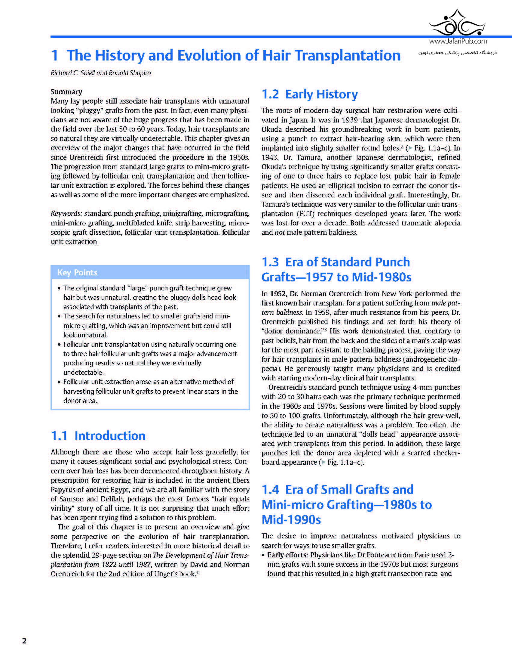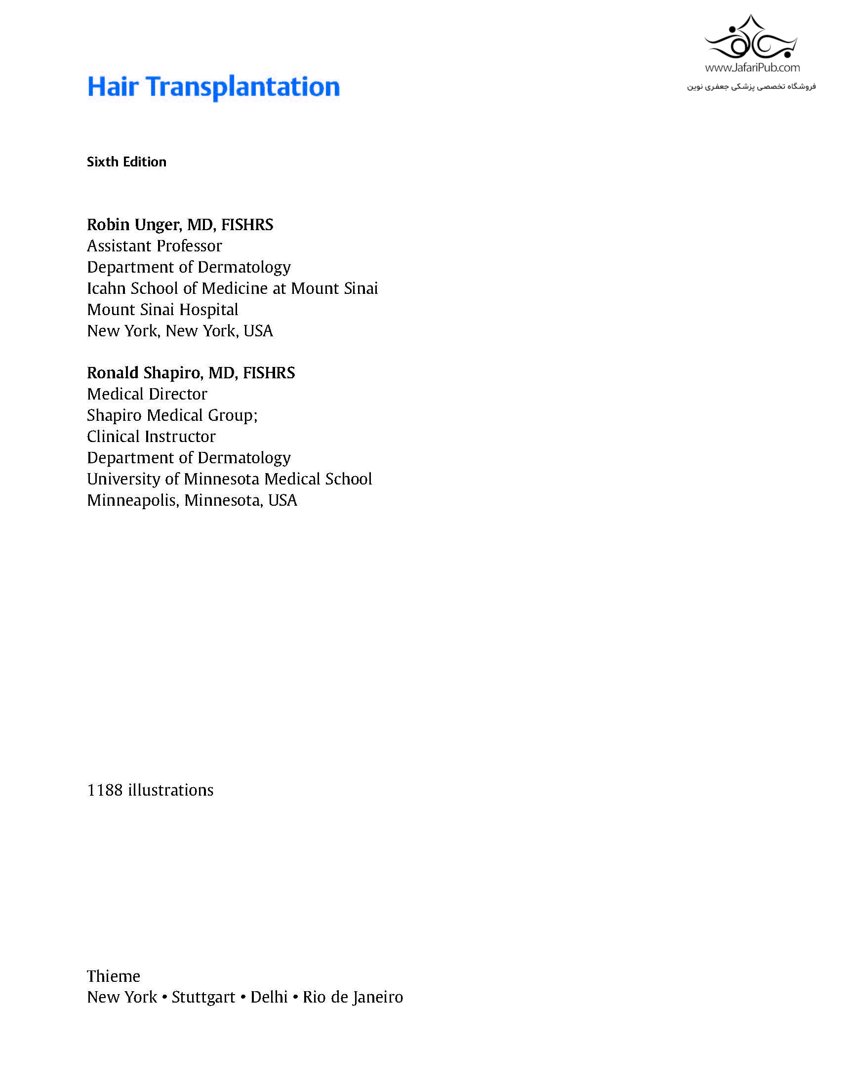 این نسخه ششم پیوند مو، ویرایش شده توسط جراحان مشهور رابین آنگر و رونالد شاپیرو و با مشارکت نوآوران در سراسر جهان، بر شهرت دیرینه خود به عنوان یک منبع آموزشی قابل اعتماد، بی طرف و تحسین شده برای تکنیک های مدرن ترمیم مو استوار است. . نسخه ششم که به طور کامل با آخرین پیشرفت ها به روز شده است، شامل بحث کامل در مورد جوانب مثبت و منفی رویکردهای مختلف جراحی و غیرجراحی، اختلاف نظرها و مرواریدهای بالینی مبتنی بر شواهد است که از طریق تخصص عملی جمع آوری شده است. همچنین موضوعات مهم مدیریت تمرین مانند آموزش مناسب، ابزار دقیق و مسائل پزشکی و حقوقی را پوشش می دهد.