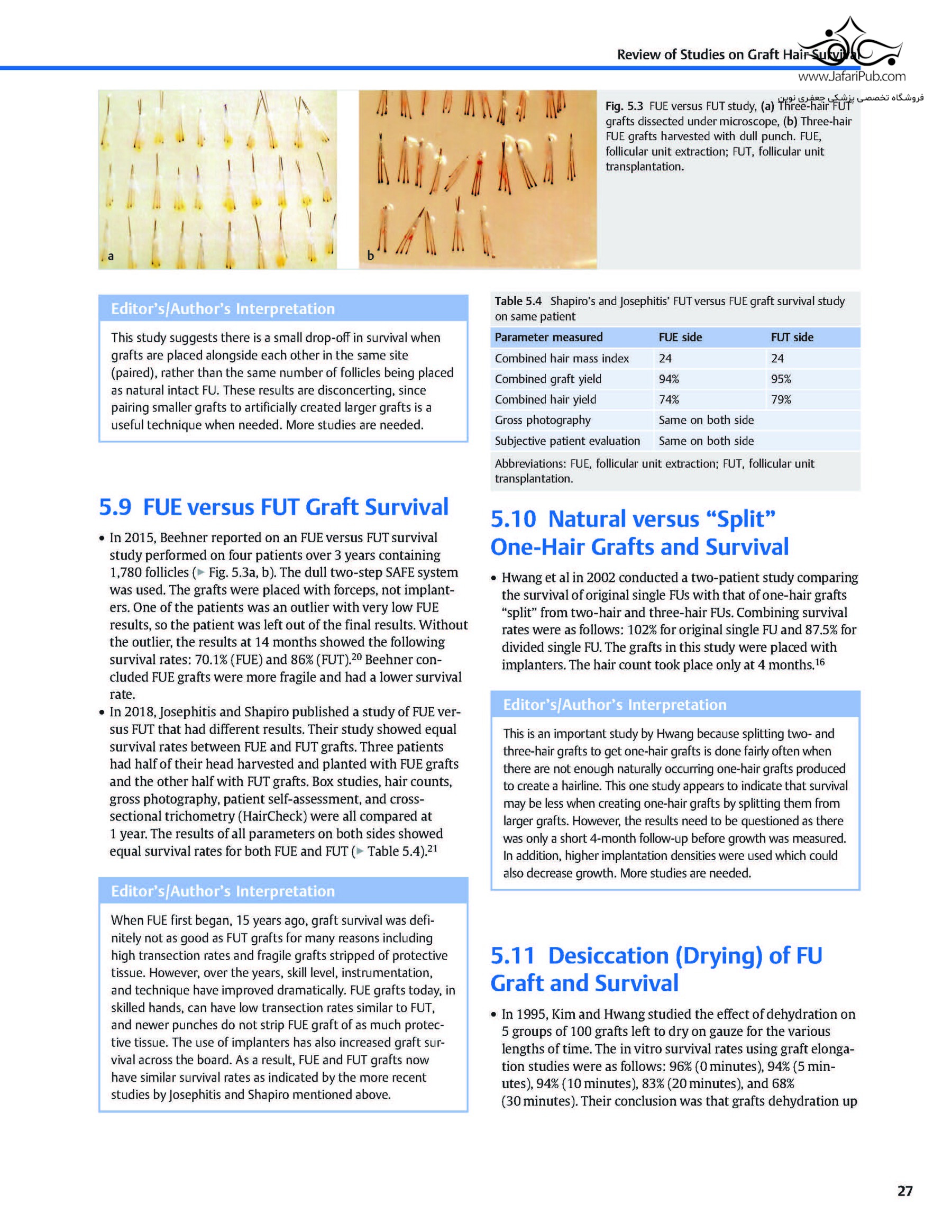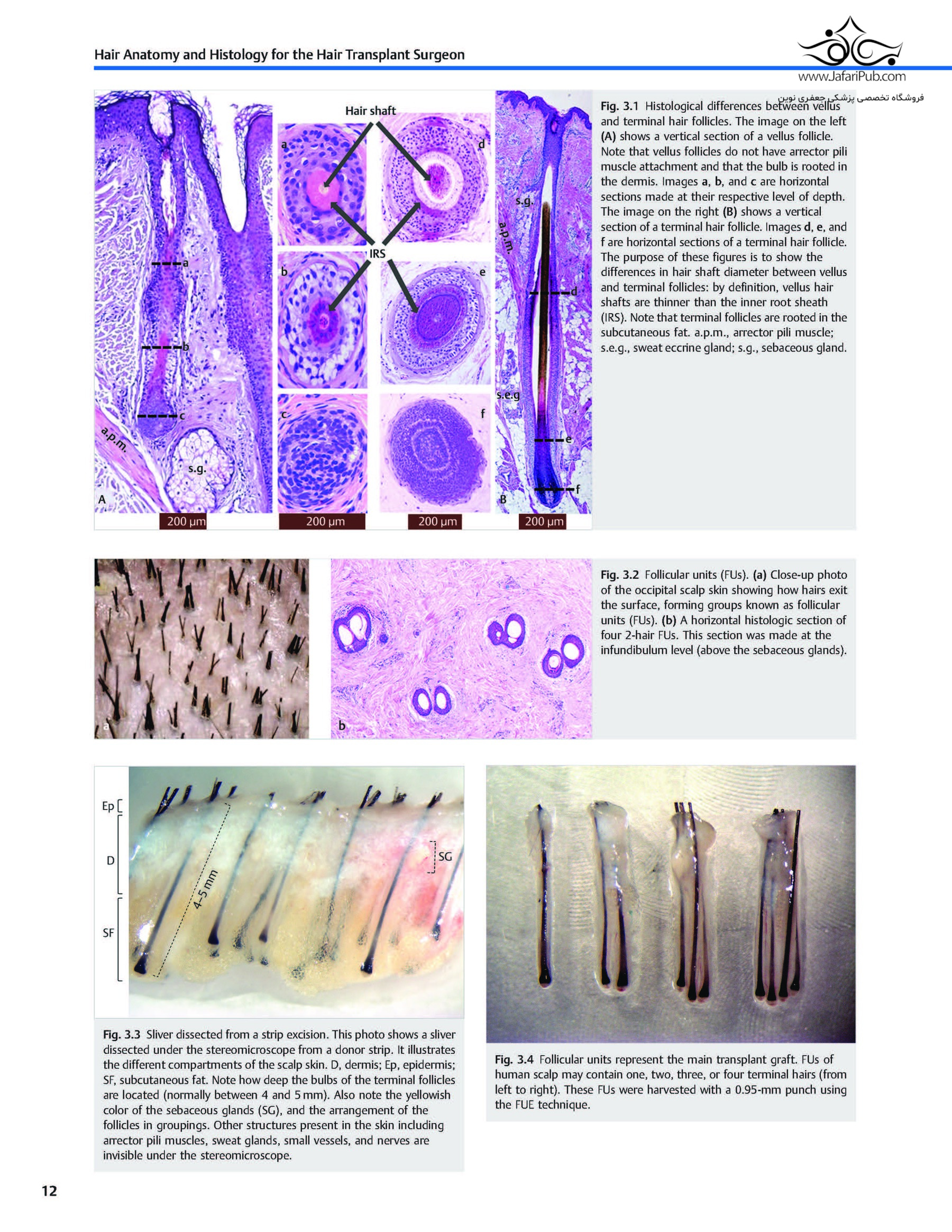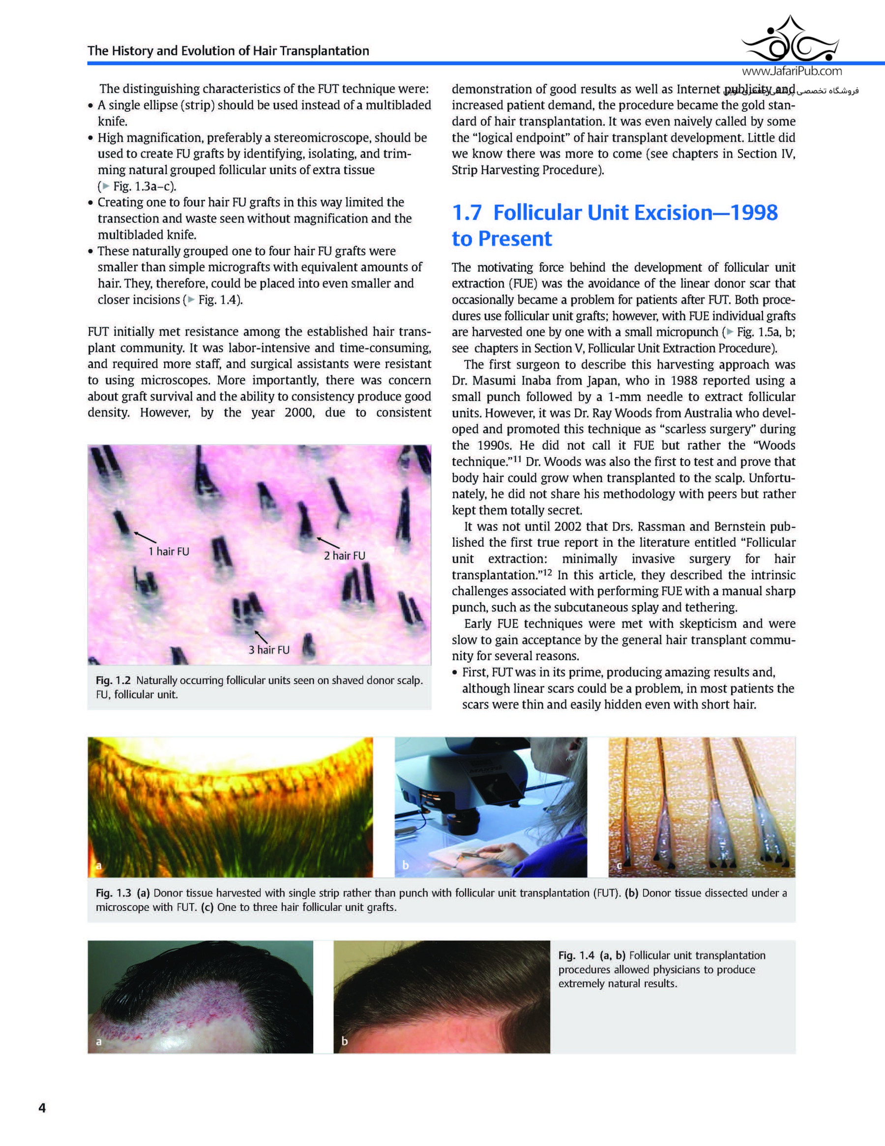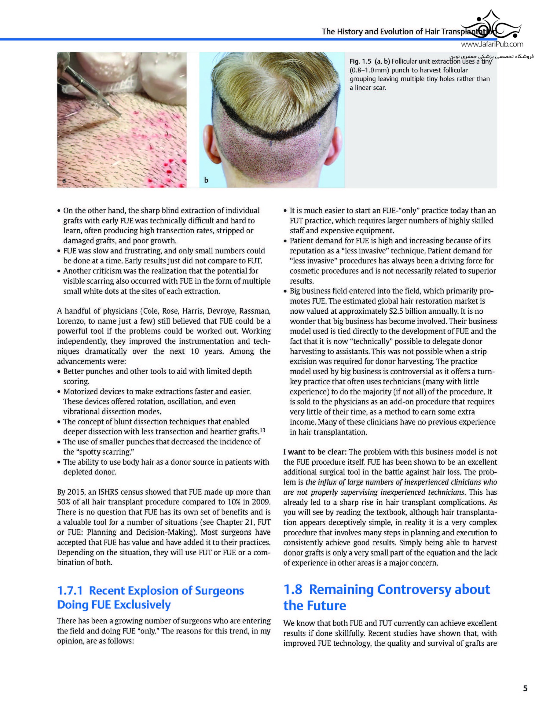 بخش جدیدی که شامل 26 فصل اختصاص داده شده به استخراج واحد فولیکولی (FUE) است، پیشرفت های قابل توجهی را که از نسخه قبلی انجام شده است، شامل گزینه هایی برای اتوماسیون چند فازی، طراحی های پانچ بهبود یافته و ابزار دقیق پیشرفته را پوشش می دهد. سایر موارد اضافه شده به متن، کاربرد گسترده کاشت کننده های تیز و کسل کننده را برای قرار دادن پیوند موی بدون آسیب، میکروپیگمانتاسیون پوست سر (SMP)، محلول های نگه دارنده بهبود یافته، سلول های نوظهور و درمان های احیاکننده و موارد دیگر را توضیح می دهد.