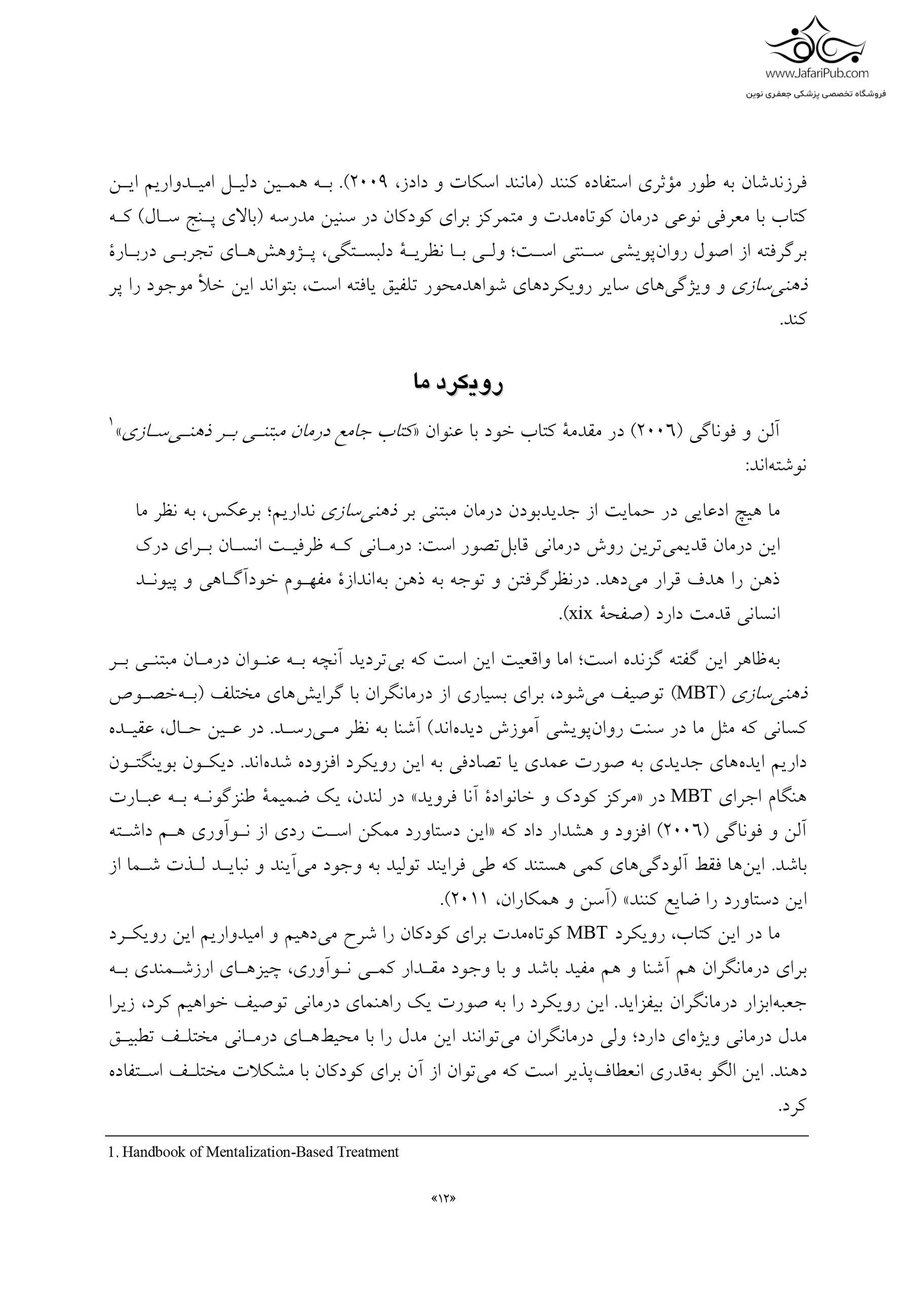 سوالات متداول در مورد خرید کتاب درمان مبتنی بر ذهنی سازی برای کودکان رویکردی کوتاه مدت قیمت این کتاب چقدر است؟ قیمت این کتاب با تخفیف 367,500 تومان است. قیمت بدون تخفیف 375,000 تومان می باشد. این کتاب چه زمانی به دستم می رسد؟ برای کتاب های غیرلاتین، سفارش پس از 1 روز کاری جمع آوری و به پست یا پیک سپرده می شود. اگر مقصد تهران باشد و روش پیک انتخاب شود، در روزهای غیر تعطیل و ساعات کاری همان روز ارسال انجام می شود.
