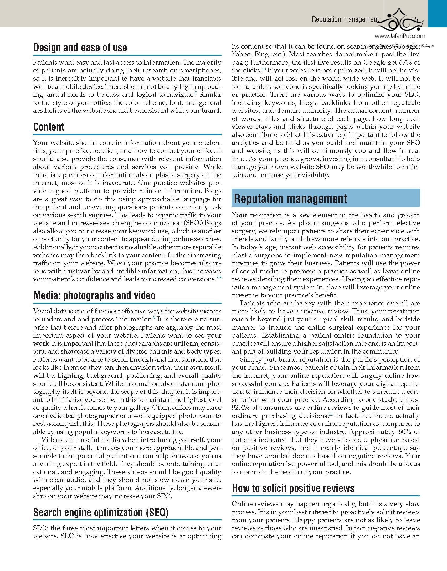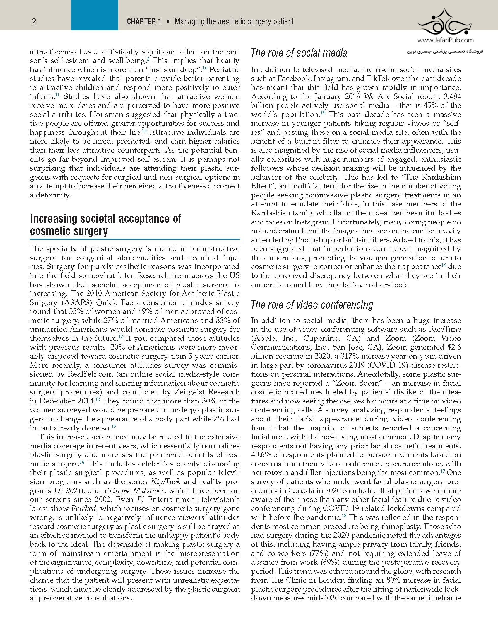 فصل های جدید مراقبت های بهداشتی مبتنی بر ارزش، تحقیقات خدمات بهداشتی در جراحی پلاستیک، آموزش و تدریس در جراحی پلاستیک، و جراحی تایید جنسیت را پوشش می دهد. پوشش سراسری شامل کارهای ترجمه ای جدید و پیشگام است که آینده جراحی پلاستیک را شکل می دهد.