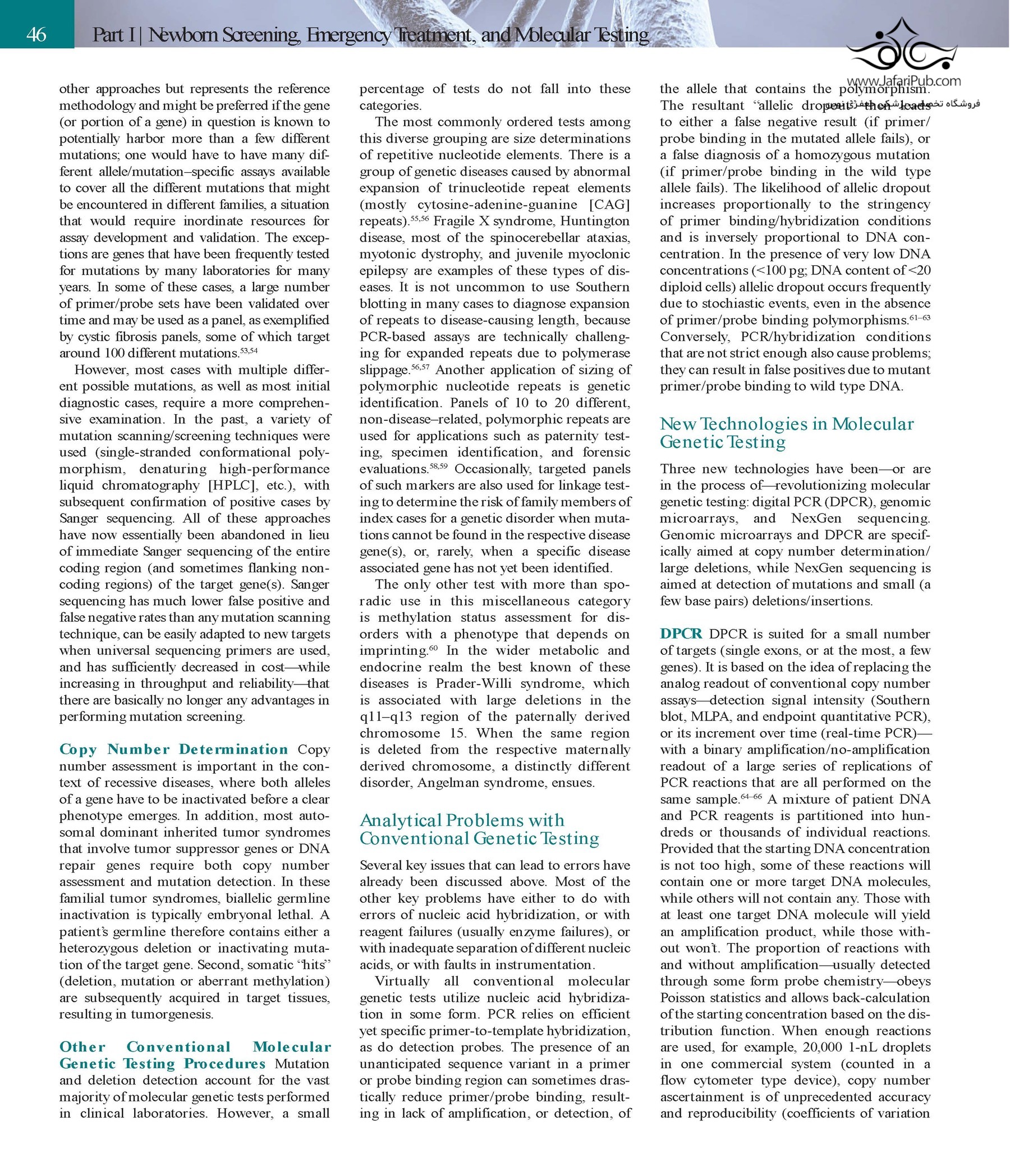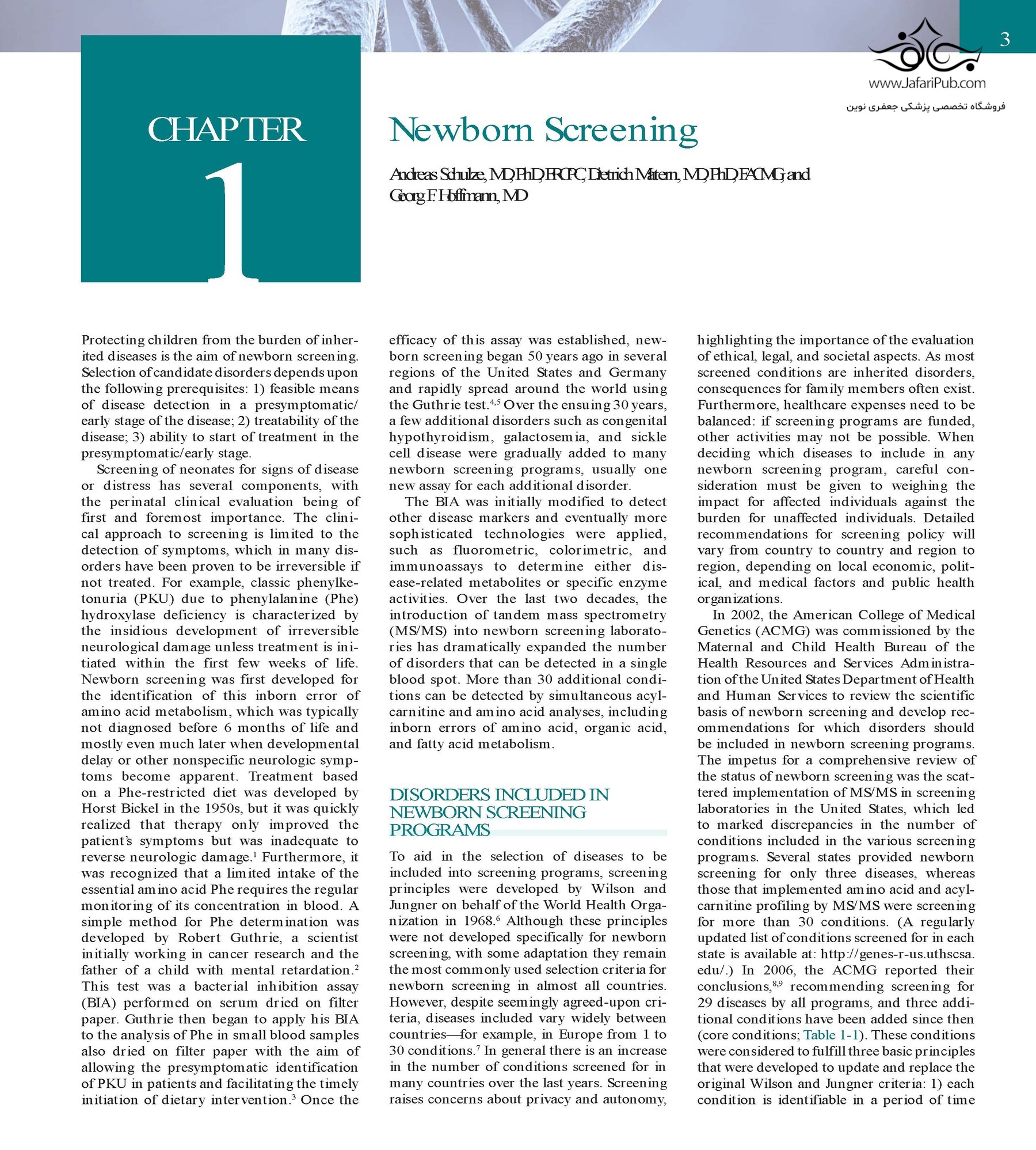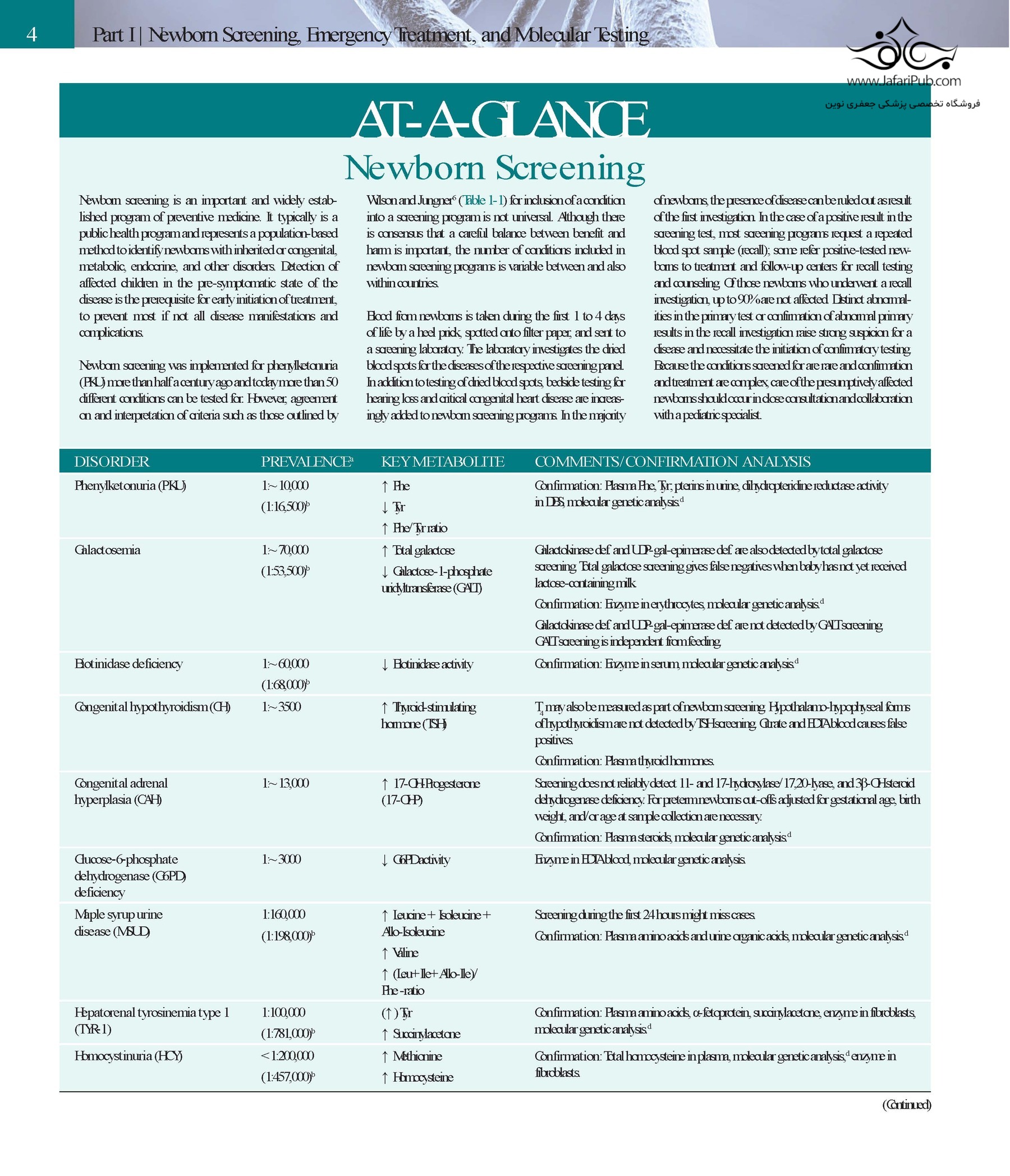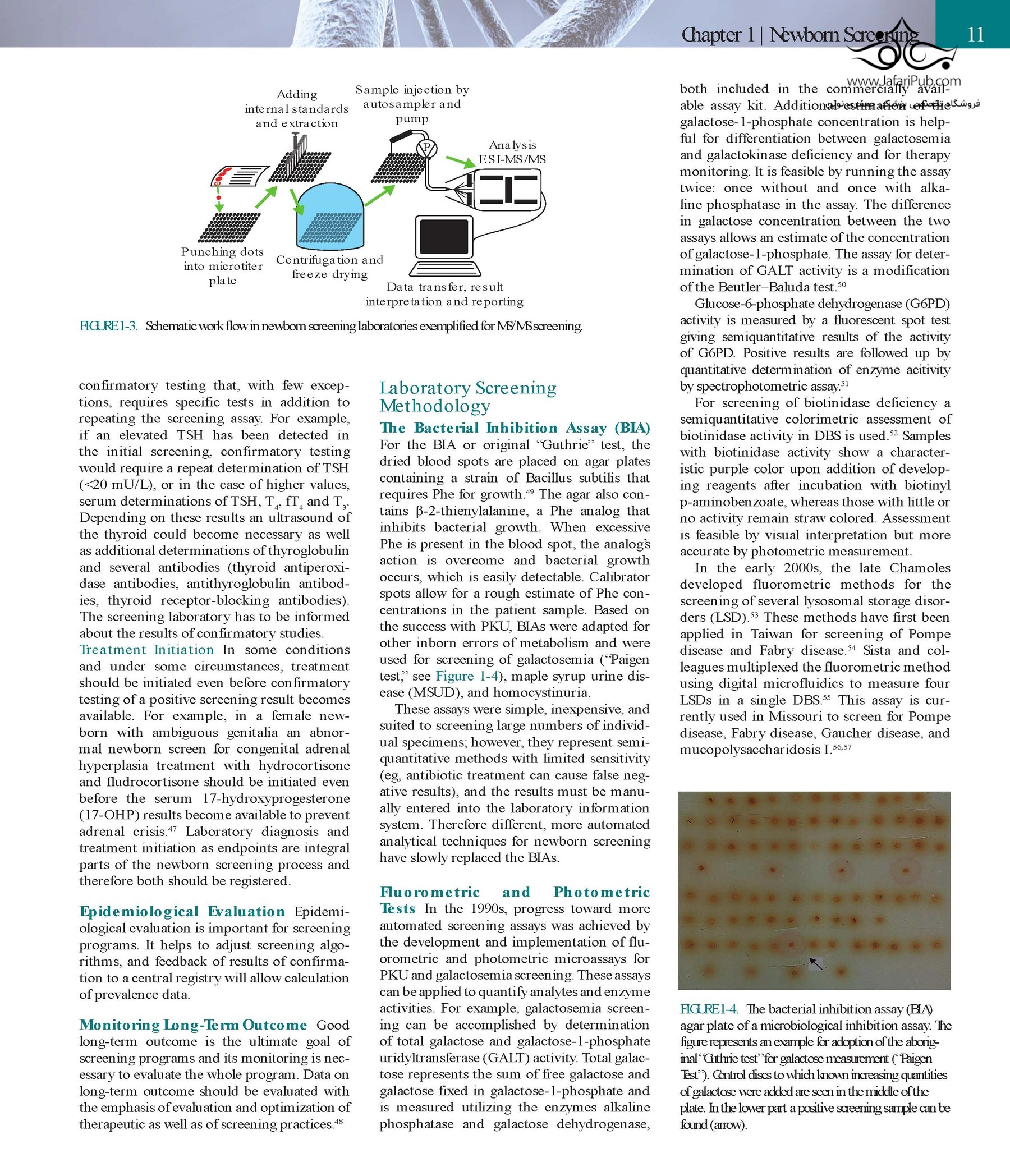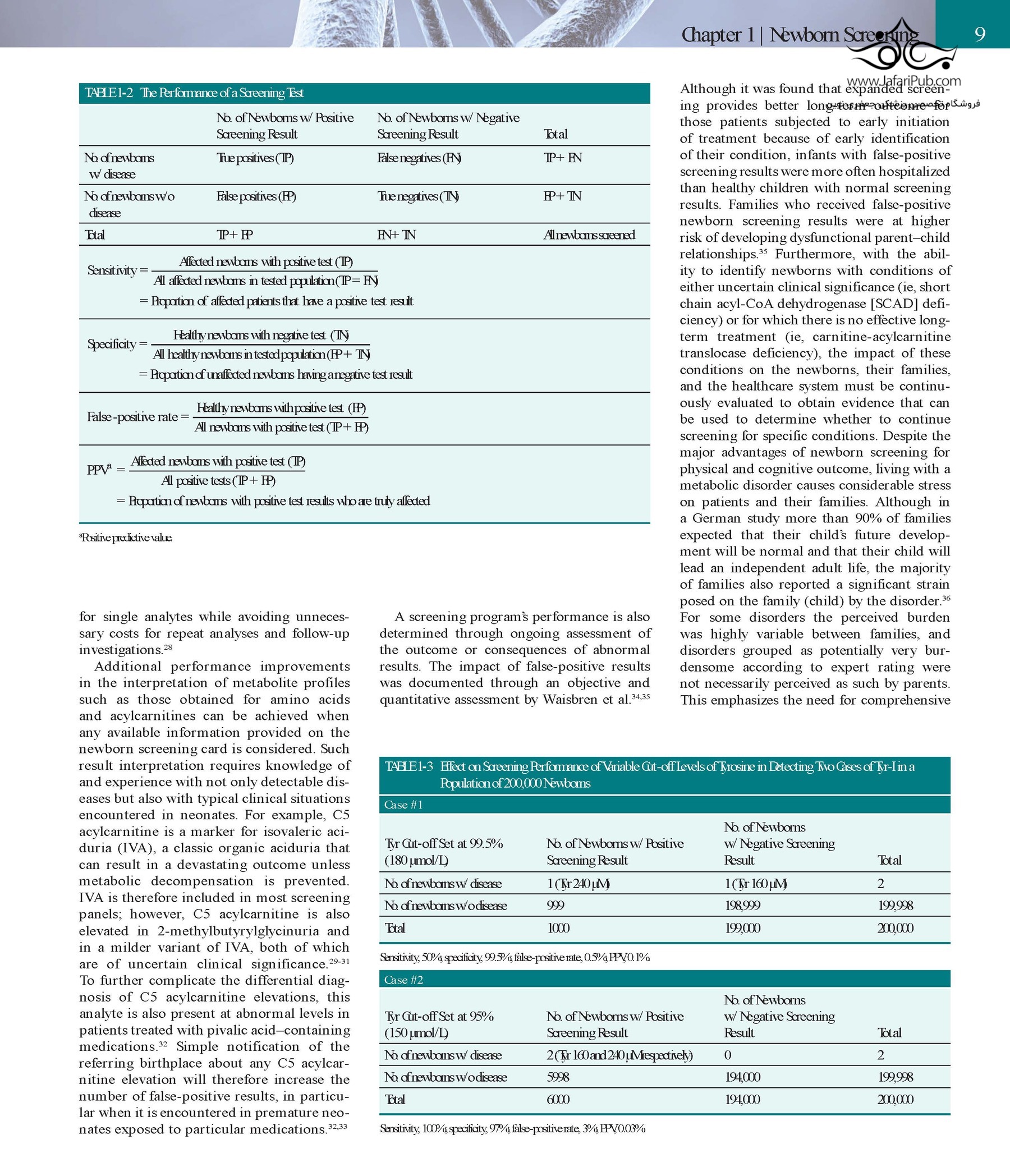 • Chapter on newborn screening walks you through an abnormal screening result to follow-up diagnostic testing