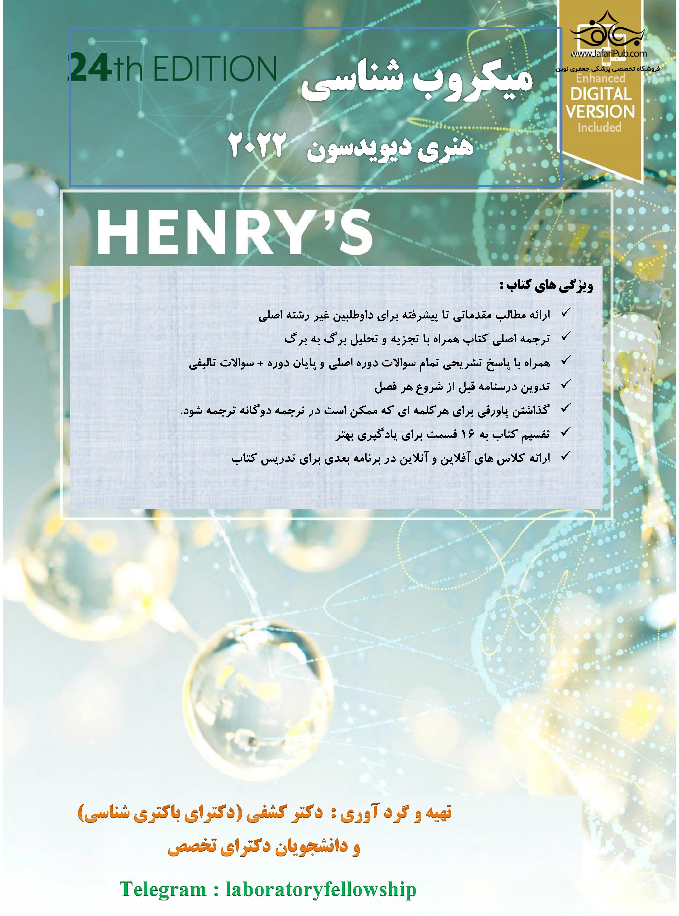 باکتری شناسی هنری دیویسون 2022 برای آزمون فلوشیب (دکترای تکمیلی علوم آزمایشگاهی) دکتر کشفی (سیاه و سفید)