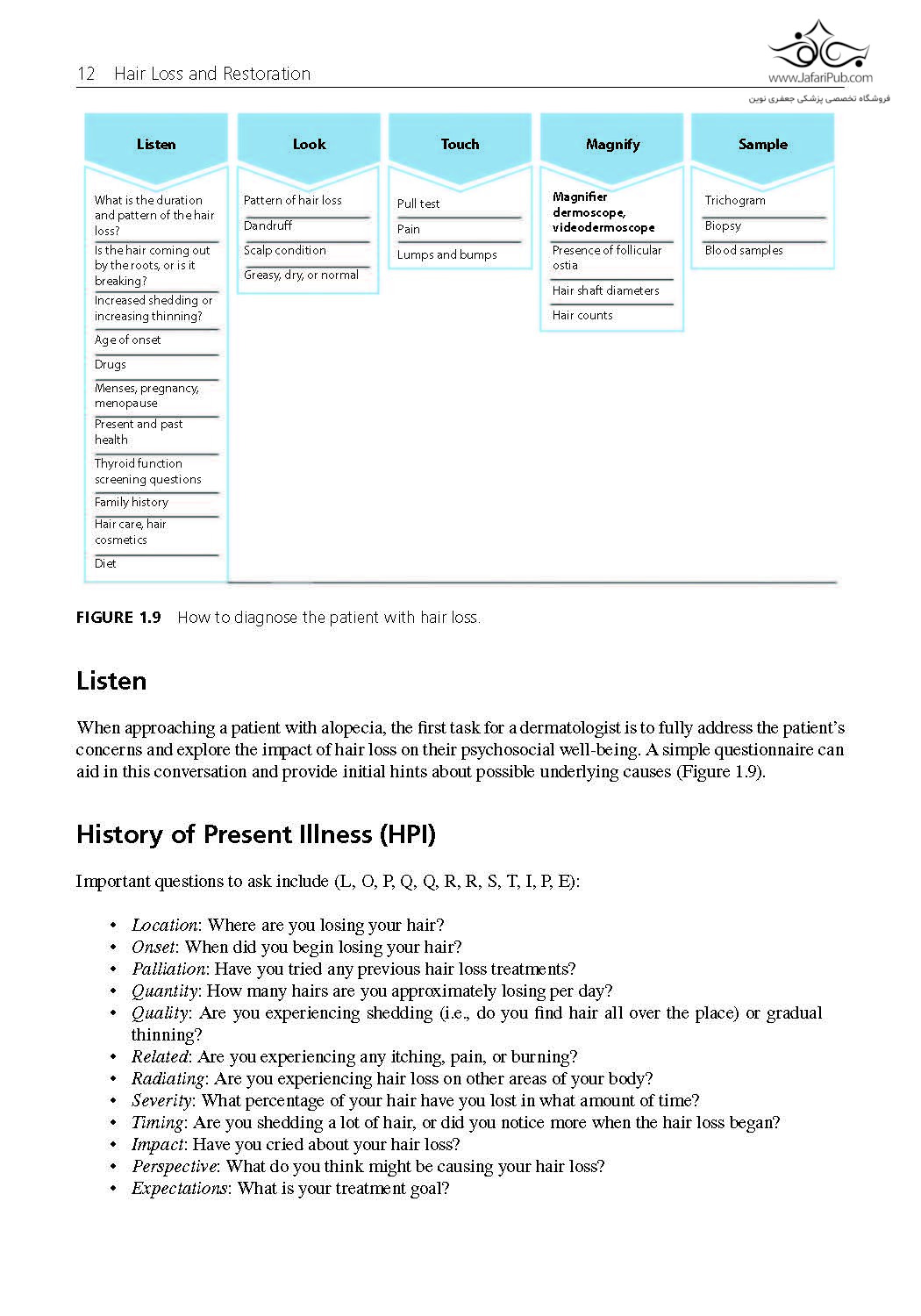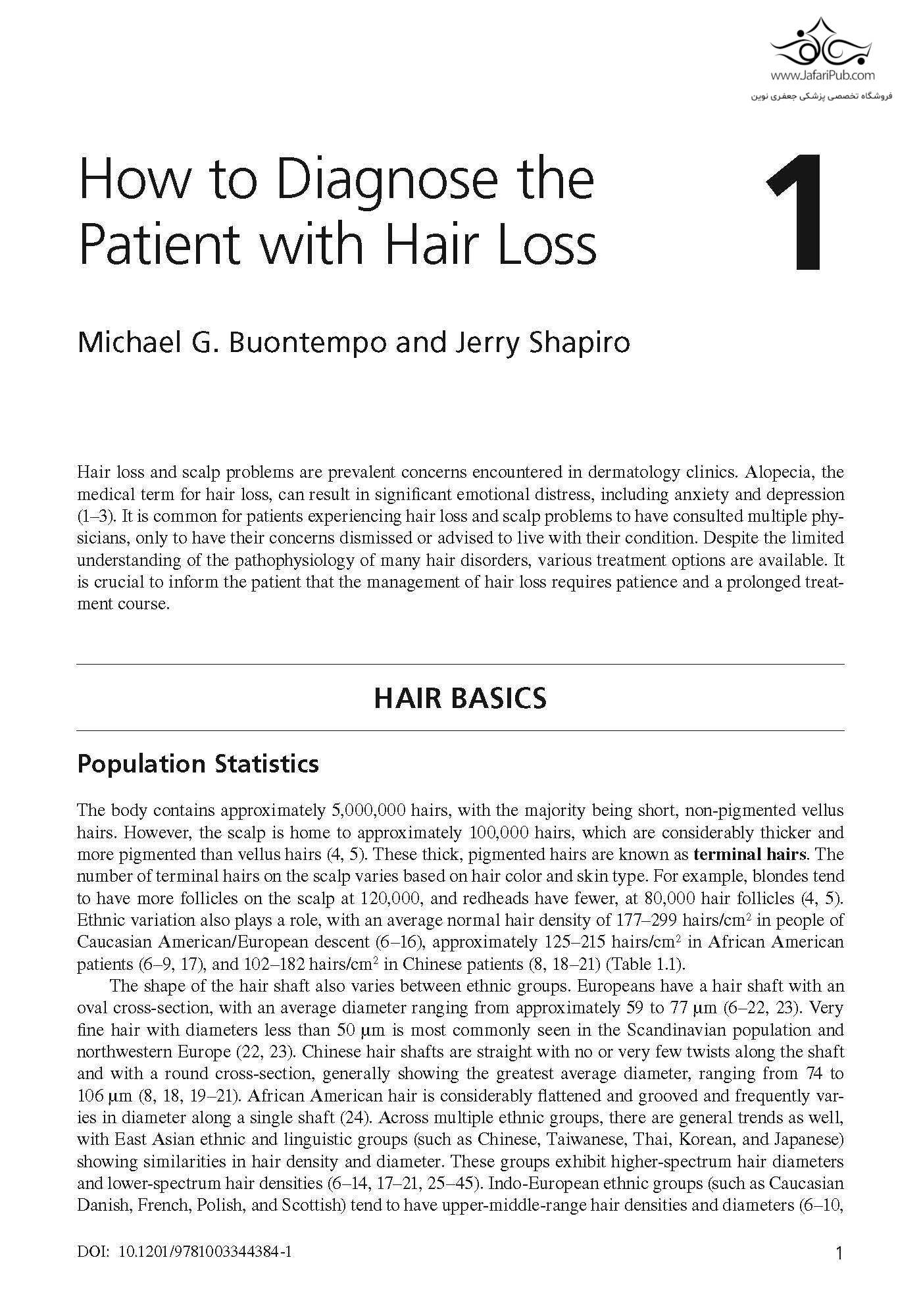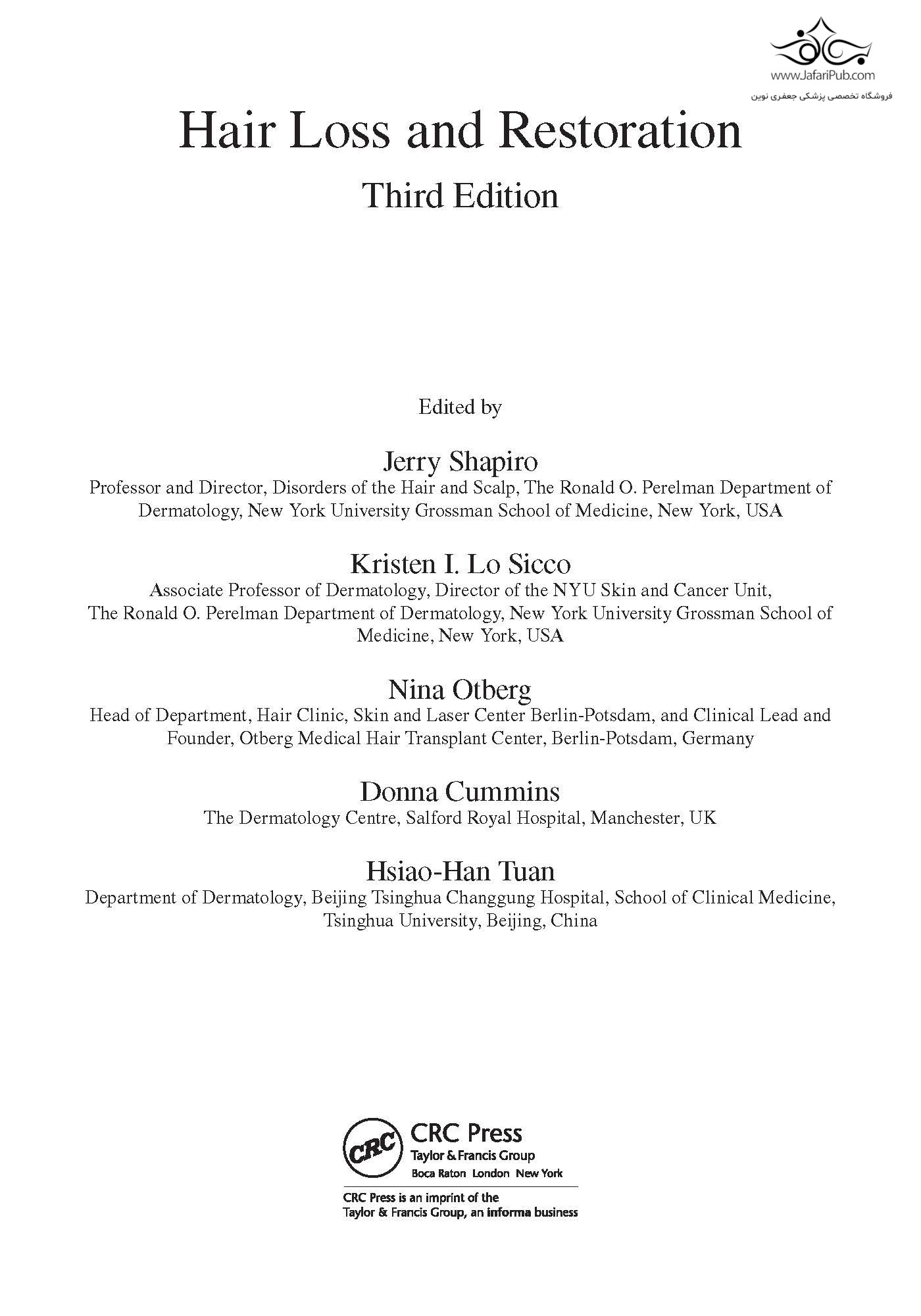 این نسخه جدید از یک منبع تثبیت شده نگاهی گسترده به مدیریت عملی، هم پزشکی و هم جراحی، همه اشکال ریزش مو ارائه می دهد. معاینه صحیح بیمار مبتلا به ریزش مو، همانطور که آلوپسی آندروژنتیک، شایع ترین علت ریزش مو، به طور عمیق مورد بحث قرار می گیرد. بیماری خودایمنی آلوپسی آره آتا به طور جامع مورد بررسی قرار می گیرد که شامل پاتوژنز، ویژگی های بالینی، تشخیص افتراقی و درمان می شود. این نسخه همچنین آخرین پیشرفت ها در تشخیص و درمان بیماری را به همراه جراحی ترمیم مو پوشش می دهد.