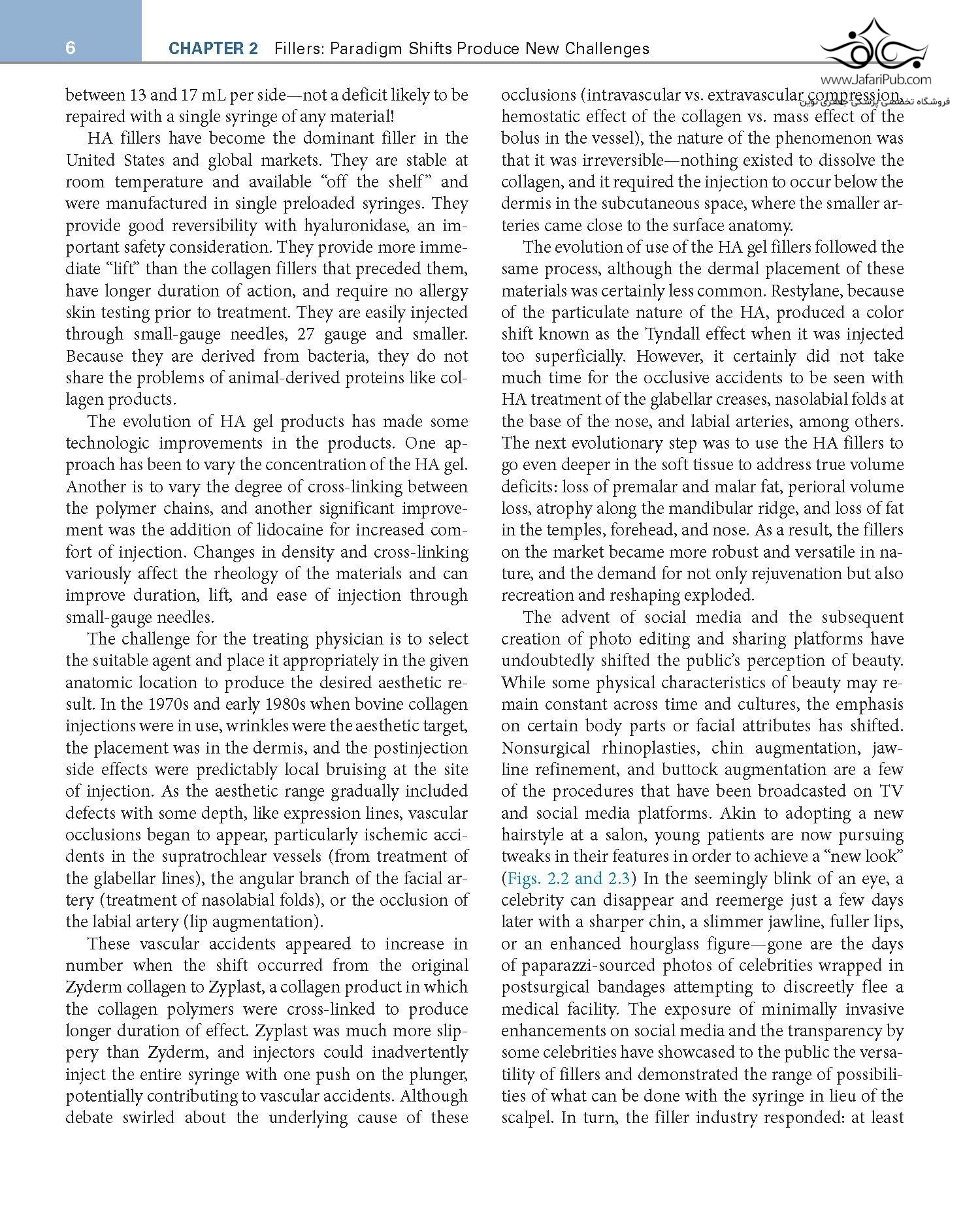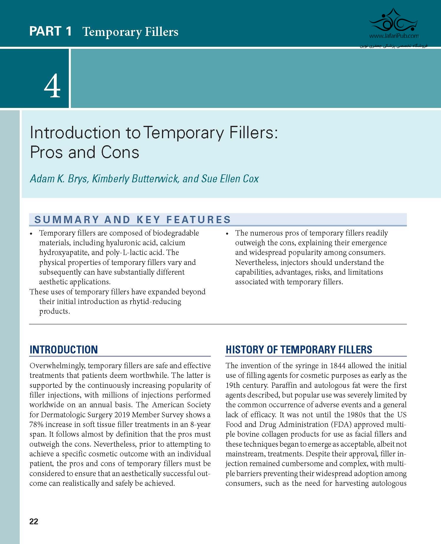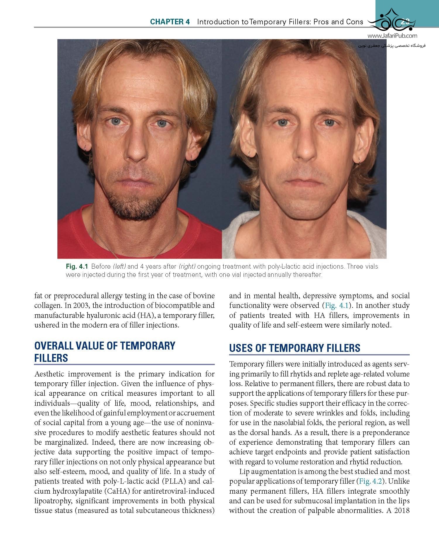 توضیحات و دلایل کامل و واضحی برای استفاده از فیلرهای پوستی برای مقابله با از دست دادن چربی صورت، عضلات و تراکم استخوان ارائه می دهد. محتوای منطقی سازماندهی شده با تکنیک های تزریق عمومی و ملاحظات صورت آغاز می شود و پس از آن گزینه های متعددی از مواد فیلر و فصل هایی برای هر ناحیه درمان ارائه می شود.