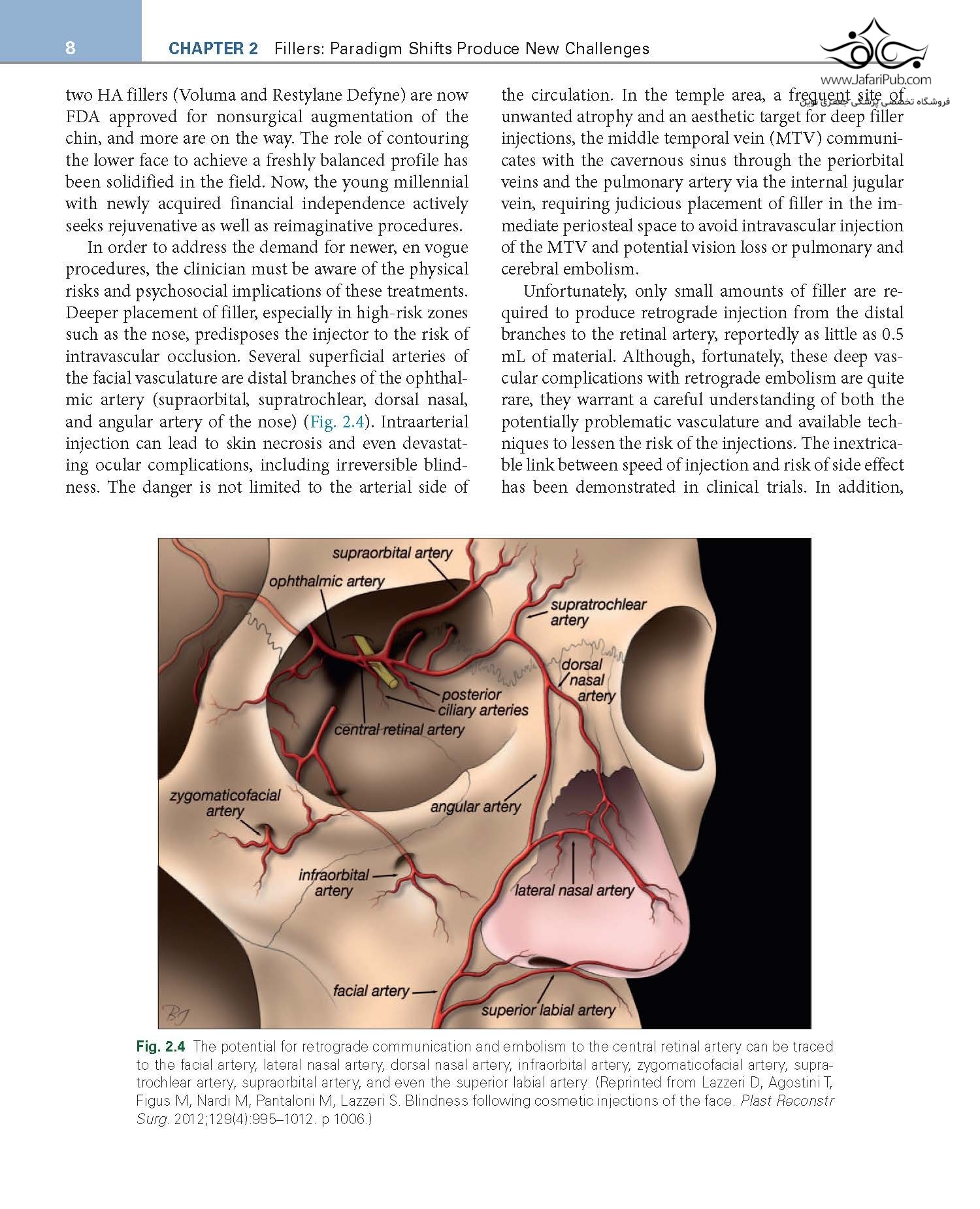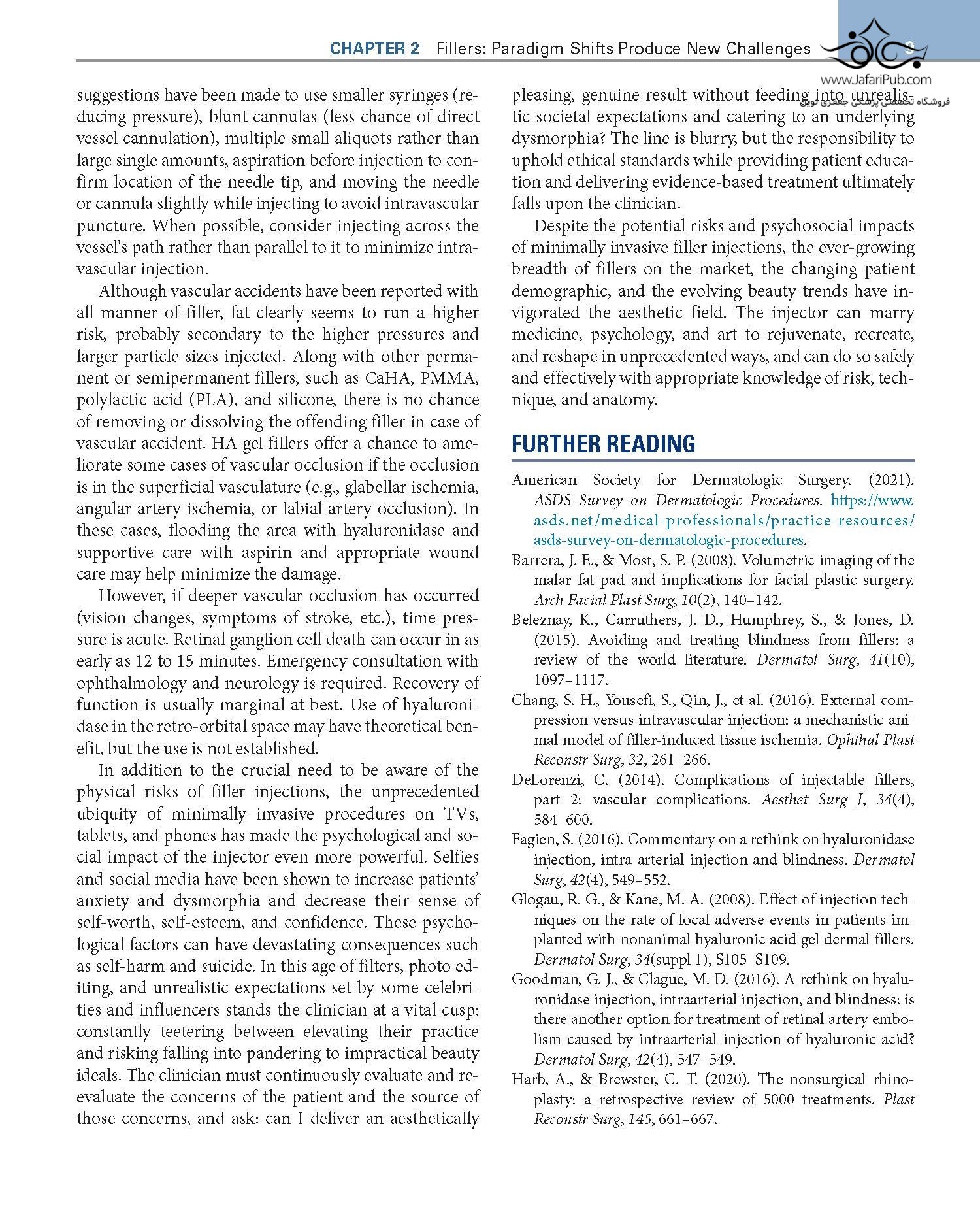 شامل عکس های متعدد قبل و بعد، تصاویر درمانی که نقاط دقیق تزریق را نشان می دهند، مطالعات موردی، نکات مثبت و منفی، و نمودارهای جریان کاربرپسند در مورد پروتکل های درمانی عوارض جانبی. سایر عناوین اخیر در مجموعه روش های زیبایی پوست: