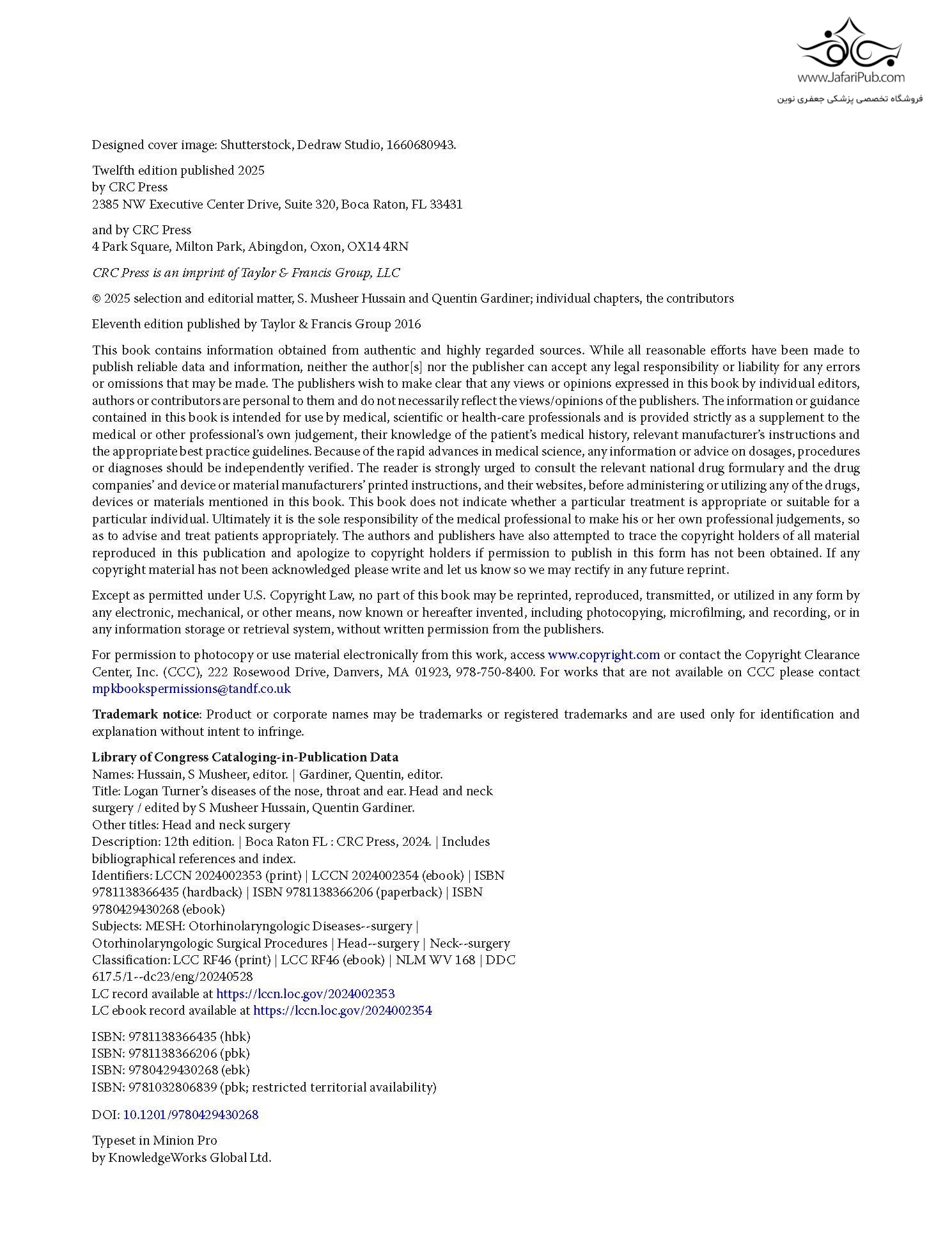بیماری های بینی، گلو و گوش لوگان ترنر: جراحی سر و گردن، نسخه دوازدهم، ویرایش دوازدهم
