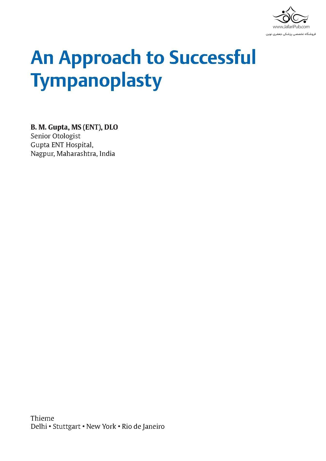 رویکردی به تیمپانوپلاستی موفقیت آمیز کتابی جامع است که بیشتر موضوعات دنیای واقعی مرتبط با این زمینه را پوشش می دهد. بخش عمده ای از این کتاب جنبه های عملی تمپانوپلاستی را پوشش می دهد که برای مشاوران جوان و همچنین برای دانشجویان کارشناسی ارشد بسیار مفید است.