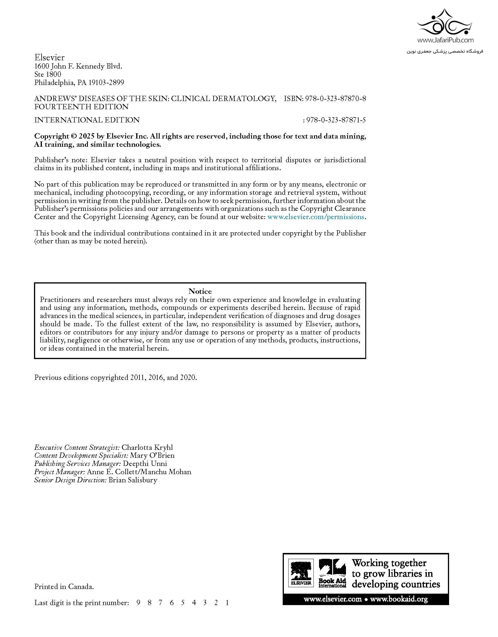 10% Andrews’ Diseases of the Skin: Clinical Dermatology 12th Edition2015 اندروز بیماری های پوست: پوست بالینی کد کتاب : 118487 انتشارات ELSEVIER 822,000 تومانقیمت اصلی کتاب 822,000 تومان بود739,800 تومان قیمت فعلی کتاب 822,000 تومان است