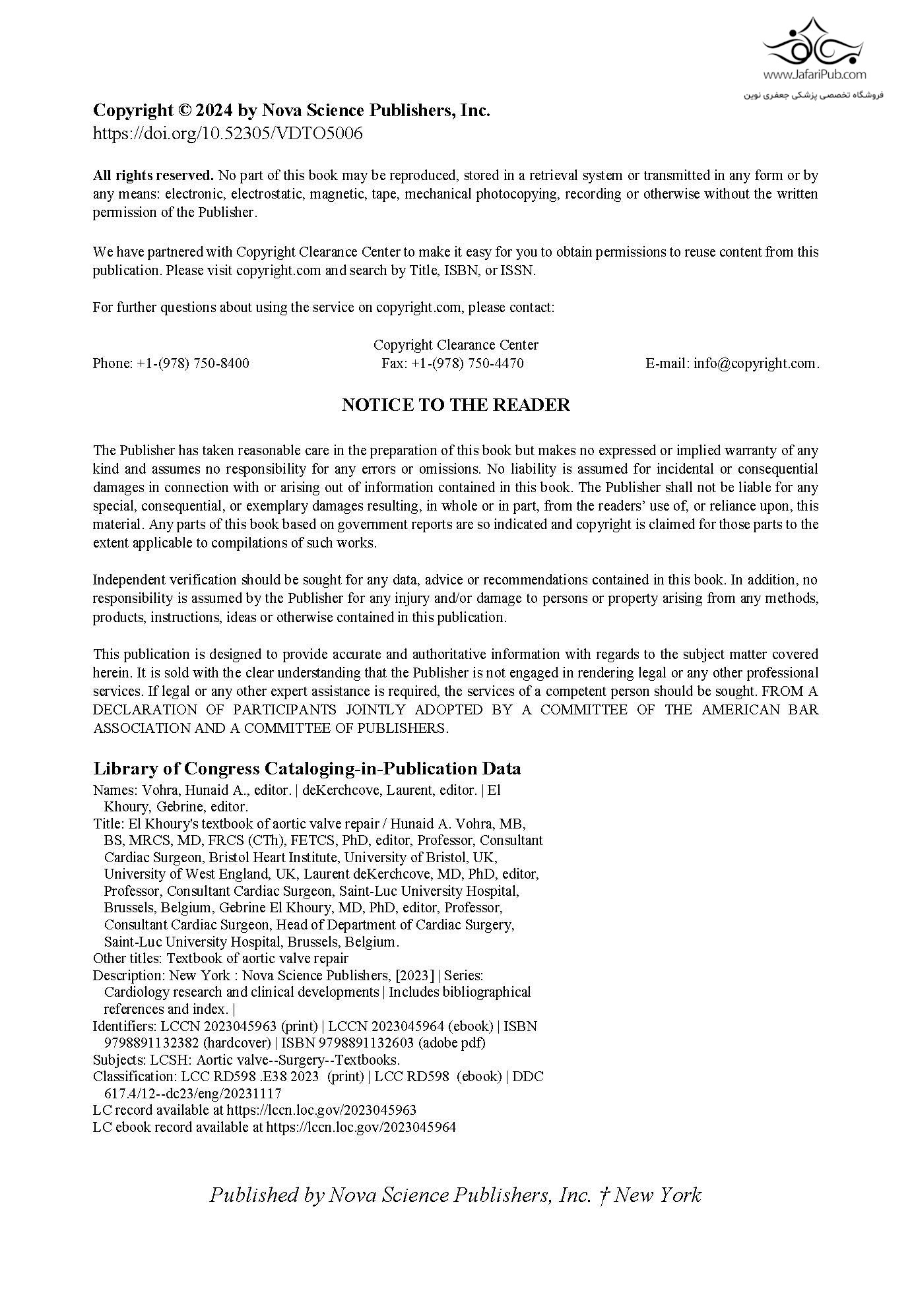 سوالات متداول در مورد خرید کتاب El Khoury's Textbook of Aortic Valve Repair قیمت این کتاب چقدر است؟ قیمت این کتاب بسته به نوع جلد و نسخه متفاوت است و از 981,000 تومان شروع می شود. در حال حاضر با تخفیف 883,000 تومان عرضه می شود. این کتاب چه زمانی به دستم می رسد؟ برای کتاب های انگلیسی یا لاتین، زمان تحویل بین 3 تا 6 روز کاری است.