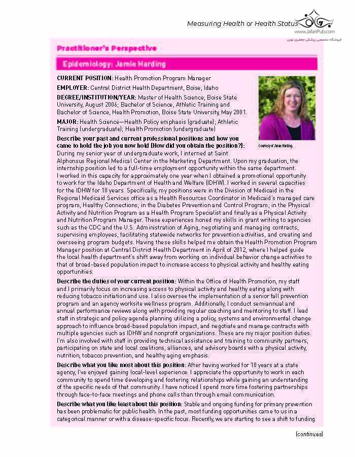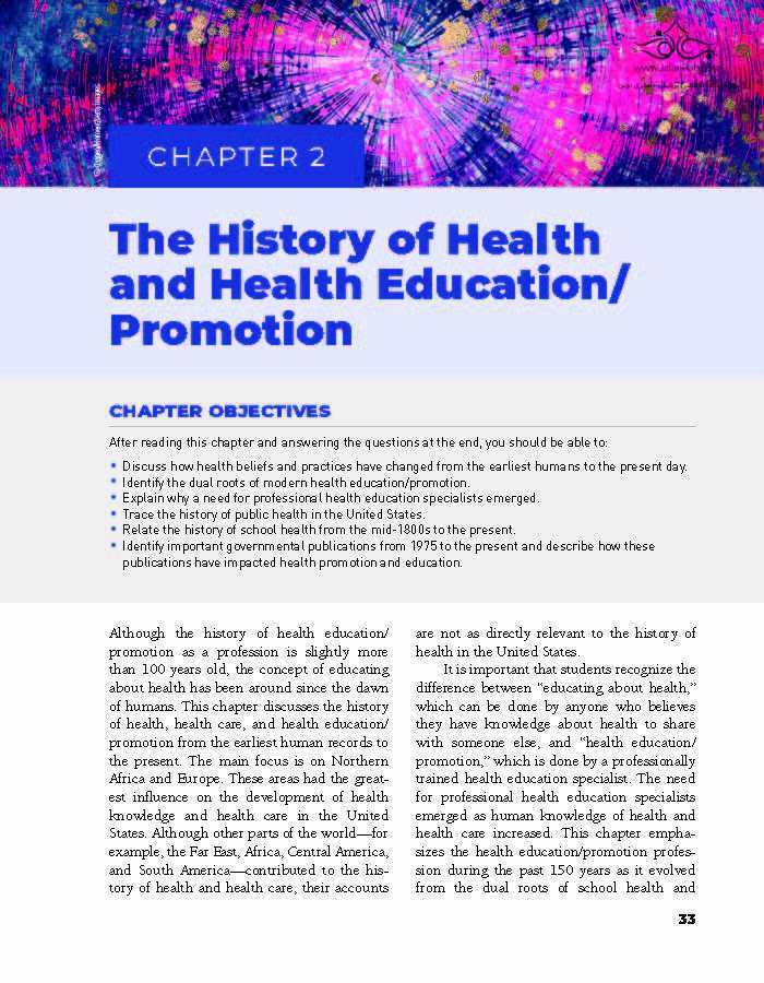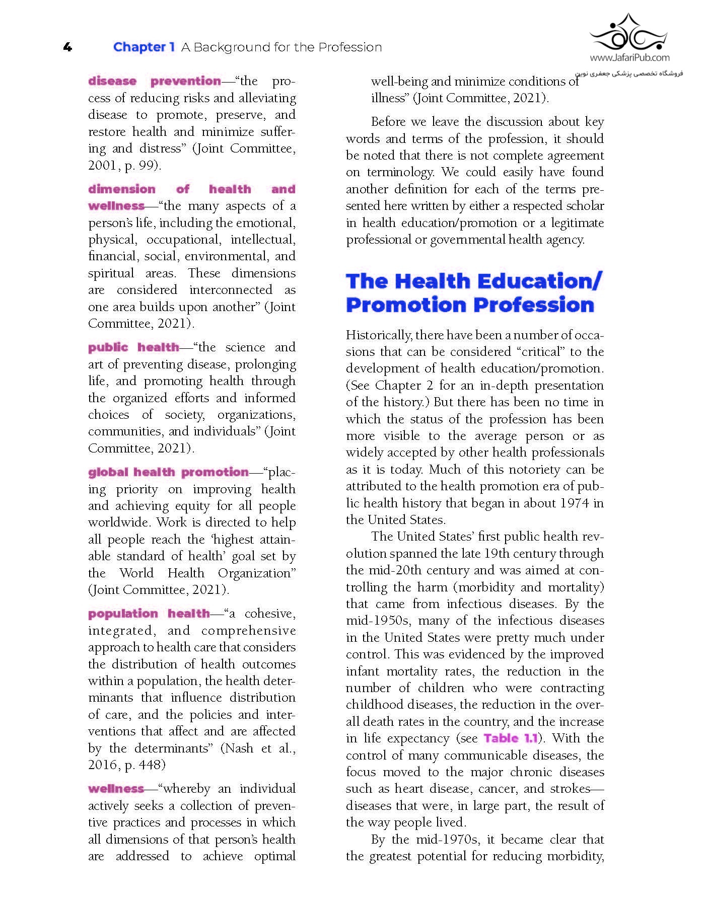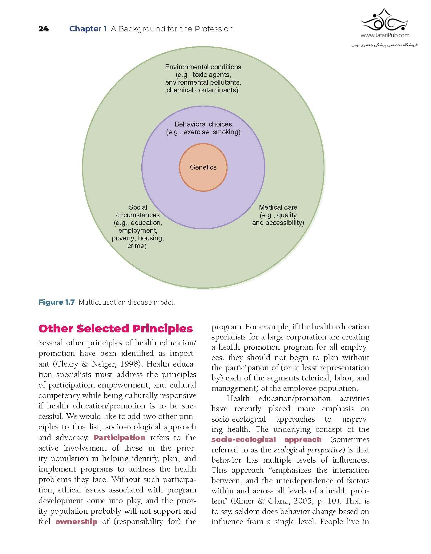 اصول آموزش و ارتقای سلامت پایه و اساس محکمی در تاریخ، فلسفه، نظریه و اخلاق آموزش سلامت در اختیار خوانندگان قرار می دهد. این متن که بهترین مقدمه کلی برای حوزه رو به رشد آموزش و ارتقای سلامت در نظر گرفته می شود، موضوعات اساسی را به تحقیقات، منابع و پزشکان مرتبط می کند. نقش ها و مسئولیت های متخصصان آموزش بهداشت، محیط های شغلی بالقوه، و اخلاقیاتی که تصمیمات حرفه ای را تعیین می کند را پوشش می دهد. با نگاهی به گذشته، حال و آینده بهداشت، مراقبت های بهداشتی و آموزش و ارتقای سلامت، این کتاب شامل بحث هایی در مورد اصلاحات اخیر سلامت، چشم انداز حرفه ای در حال تکامل، استفاده از رسانه های اجتماعی در ارتقای سلامت و موارد دیگر است.
