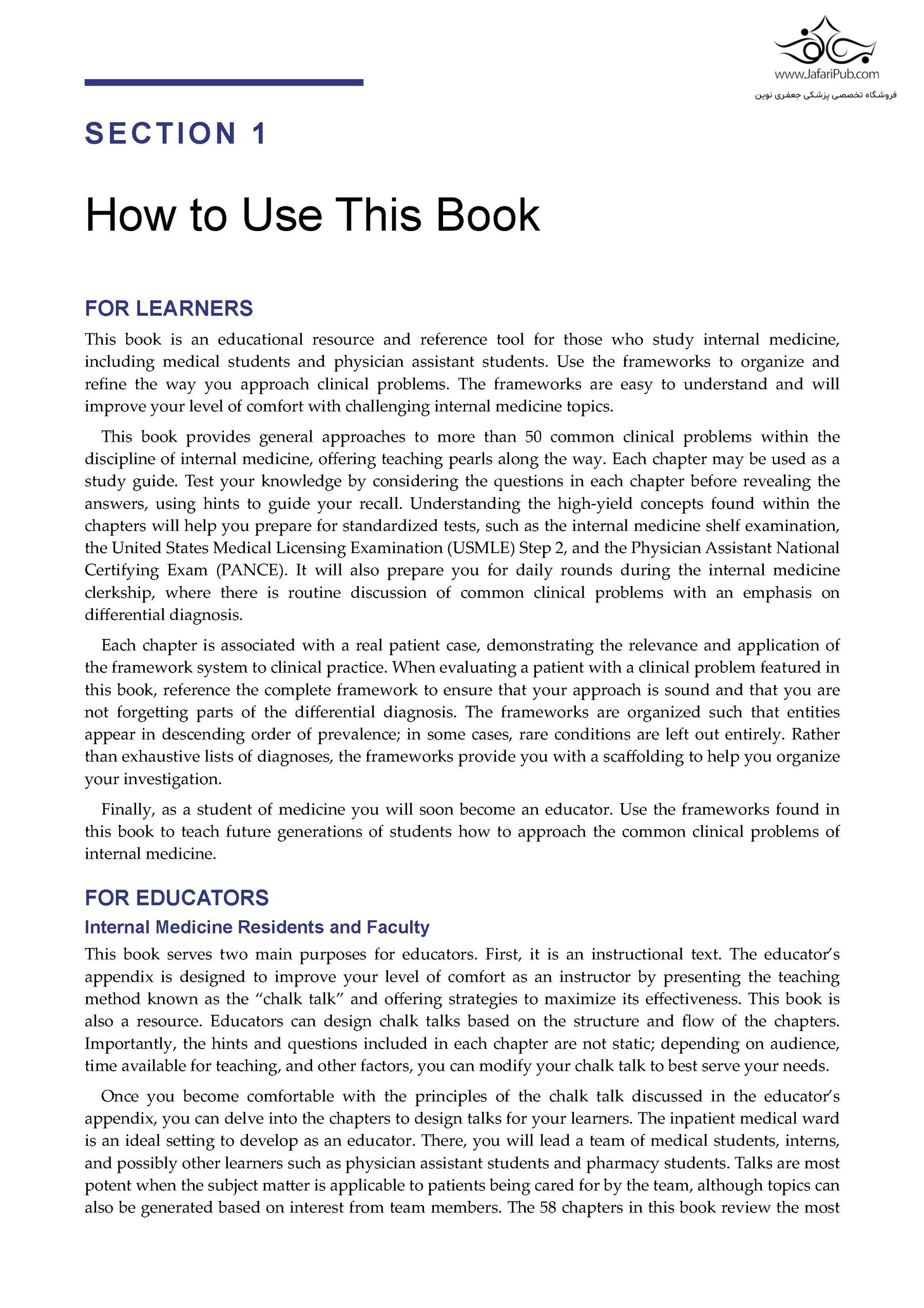 نسخه دوم این منبع بسیار بصری که به طور قابل توجهی به روز شده و بهبود یافته است، از قالبی مبتنی بر مورد و به سبک پرسش و پاسخ برای ساخت چارچوب هایی استفاده می کند که فراگیران را در هر مرحله از فرآیند تشخیص افتراقی راهنمایی می کند. این چارچوب های منحصربه فرد نه تنها زبان آموزان را برای موفقیت در دوره های کارآموزی، چرخش و رزیدنتی پزشکی داخلی تجهیز می کند، بلکه به اطمینان از تشخیص های افتراقی مطمئن تر در تنظیمات بالینی نیز کمک می کند.