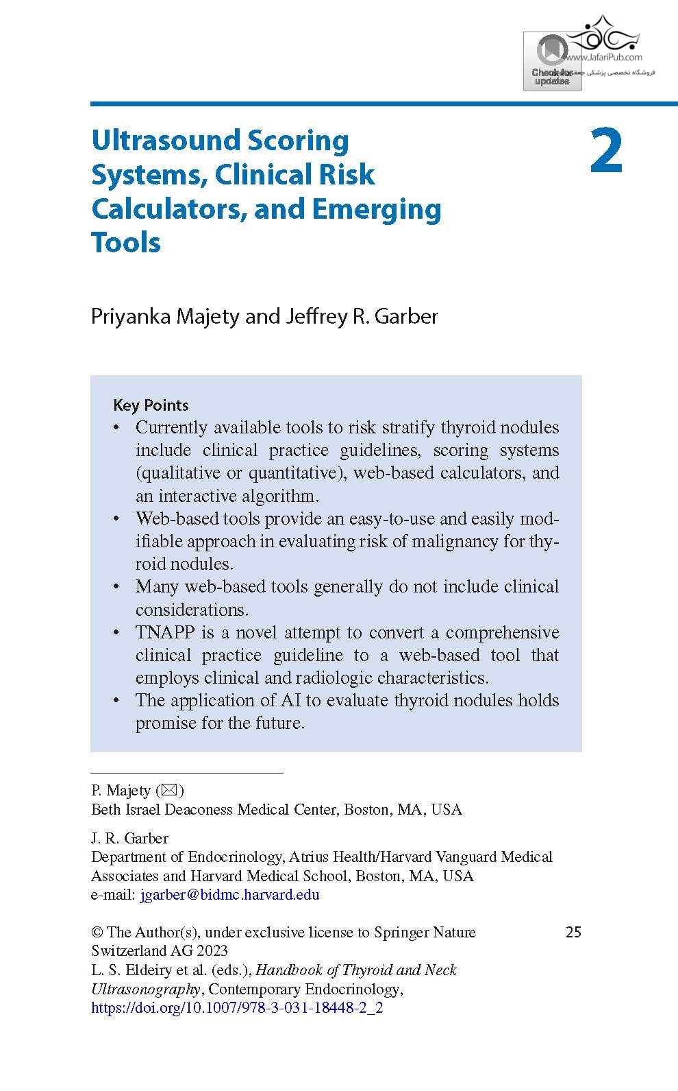 تصادفاً ندول های تیروئیدی و توده های قابل لمس گردن یک مشکل بالینی رایج است. ارزیابی بیشتر با سونوگرافی گردن به شناسایی این ضایعات و طبقه بندی خطر بدخیمی کمک می کند. بر اساس ویژگی های سونوگرافی، این ضایعات را می توان با استفاده از داده های پاتولوژیک و سایر داده های بالینی به منظور تعیین بهترین مدیریت، بهتر تعریف کرد.