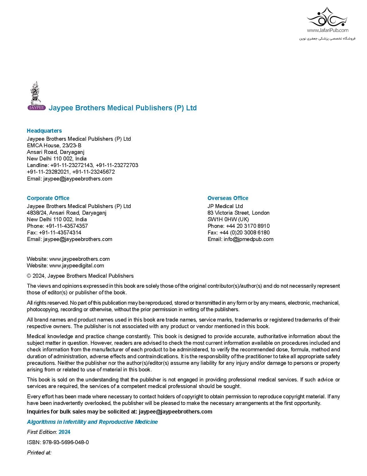 سوالات متداول در مورد خرید کتاب Algorithms in Infertility and Reproductive Medicine قیمت این کتاب چقدر است؟ قیمت این کتاب بسته به نوع جلد و نسخه متفاوت است و از 1,043,000 تومان شروع می شود. در حال حاضر با تخفیف 938,700 تومان عرضه می شود. این کتاب چه زمانی به دستم می رسد؟ برای کتاب های انگلیسی یا لاتین، زمان تحویل بین 3 تا 6 روز کاری است.