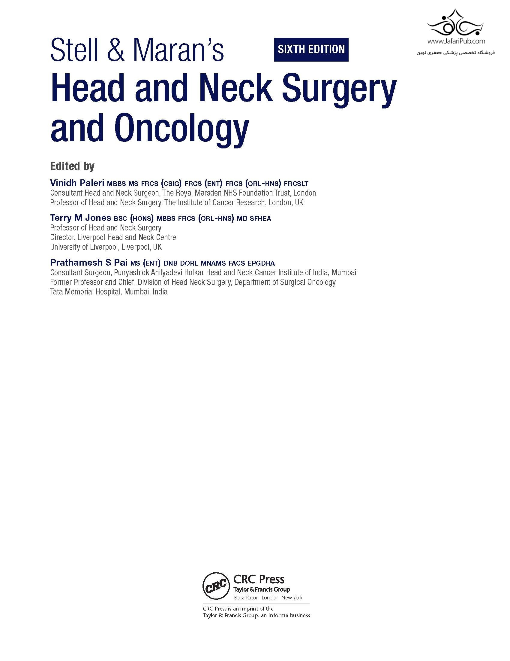 دانش مورد نیاز جراح سر و گردن امروزی، به عنوان یکی از اعضای کلیدی یک تیم چند رشته ای جامع و گسترده، قابل توجه است. ویرایش ششم جراحی سر و گردن و انکولوژی Stell & Maran همچنان به عنوان کتاب مرجع پیشرو در این تخصص است.