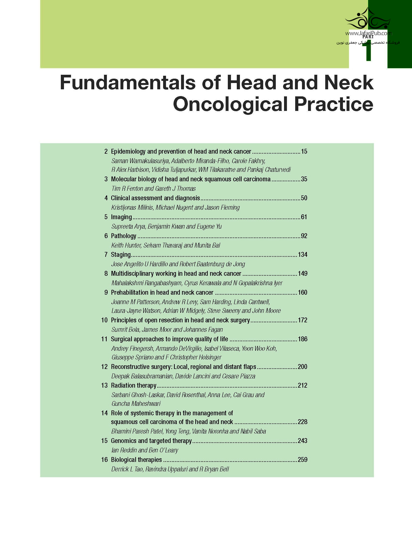 این متن قابل دسترس و معتبر به طور کامل اصلاح و به روز شده است تا رویه بین المللی را در سراسر تیم چند رشته ای منعکس کند. یک جامعه جهانی از نویسندگان متخصص، فصل هایی را ارائه کرده اند که شامل تخصص مورد نیاز جراح سر و گردن امروزی است. این کتاب شامل اصول عمل انکولوژیک سر و گردن از جمله آسیب شناسی، تصویربرداری، مرحله بندی، پیش آمادگی، رویکردهای جراحی و بازسازی، پرتودرمانی، شیمی درمانی، درمان های بیولوژیکی و بسیاری موارد دیگر است. بخش های کلیدی در مورد طیف وسیع تومورها بر اساس محل آناتومیک و سرطان های نادر بحث می کنند. دیدگاه های آینده با موضوعاتی در مورد چگونگی تبدیل شدن به یک کارآزمایی بالینی، ارائه نوآوری های جراحی و رویکردهای شخصی برای درمان سرطان سر و گردن با بینش هایی برای آینده بررسی می شود.