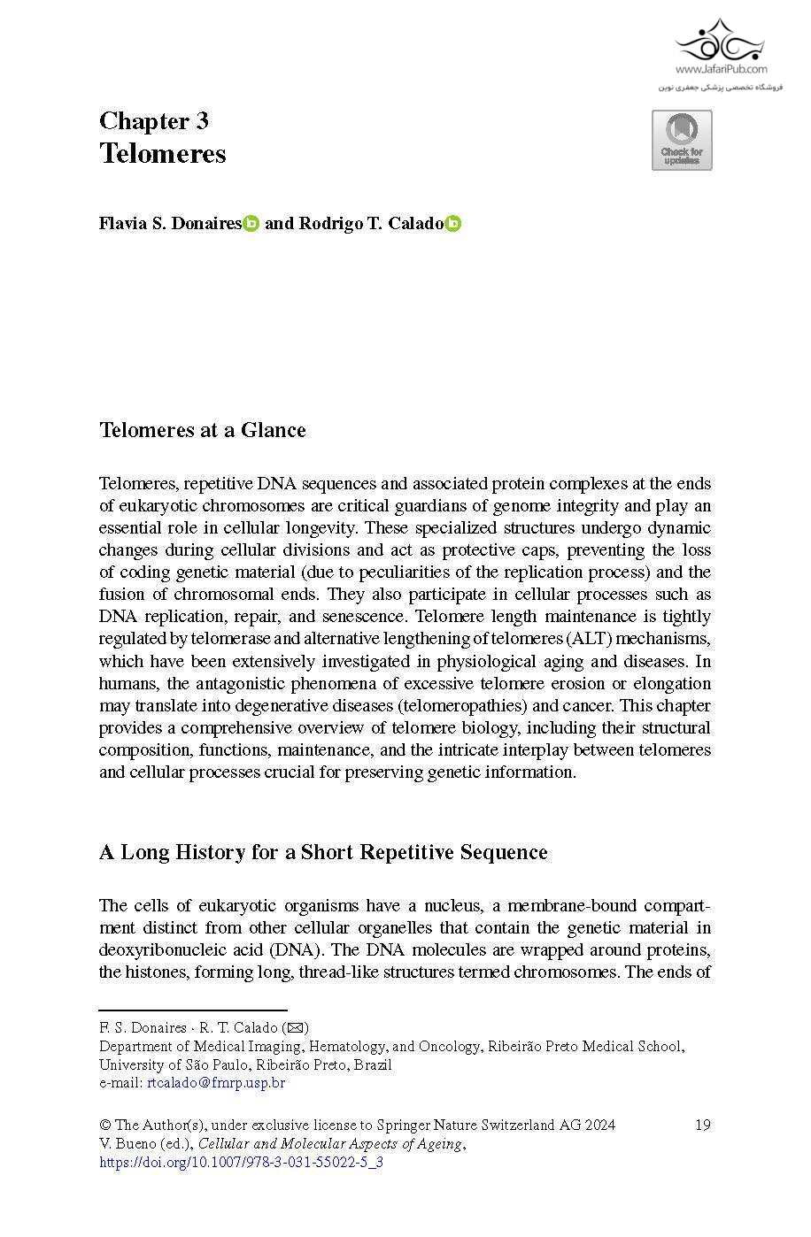 The hypothesis that organismal ageing and dysfunction is influenced by the accumulation of senescent cells had origin in Hayflick and Moorhead results from cultured human fibroblasts. It was shown that fibroblasts presented a limited capacity for proliferation reaching thus the state of irreversible growth arrest (replicative senescence). In 2011, van Deusen et al. showed that p16Ink4a accumulation was associated with premature ageing in a mouse model and the inactivation of the p16Ink4a gene mitigated the ageing phenotype. Thus, the cell cycle arrest due to the expression of p16Ink4a and p21CIP (cell cycle inhibitors) is the main characteristic of senescence. In addition to cellular senescence, the hallmarks of ageing include genomic instability, telomere shortening , epigenetic alterations, loss of proteostasis, deregulated nutrient-sensing, mitochondrial dysfunction, stem cell exhaustion, altered intercellular communication, and a pro-inflammatory senescence-associated secretory phenotype (SASP). In this book, researchers will comprehensively discuss relevant changes occurring at cellular and molecular levels (human and animal models) based on the hallmarks of ageing. The impact of lifestyle and benefits of physical activity and nutrition will be also discussed. Unravelling cellular and molecular aspects of ageing is crucial for the unanswered questions about ageing and for guiding interventions such as changes in lifestyle, senolytic (kills senescent cells), and senomorphic (interrupts deleterious intercellular communication) therapies.