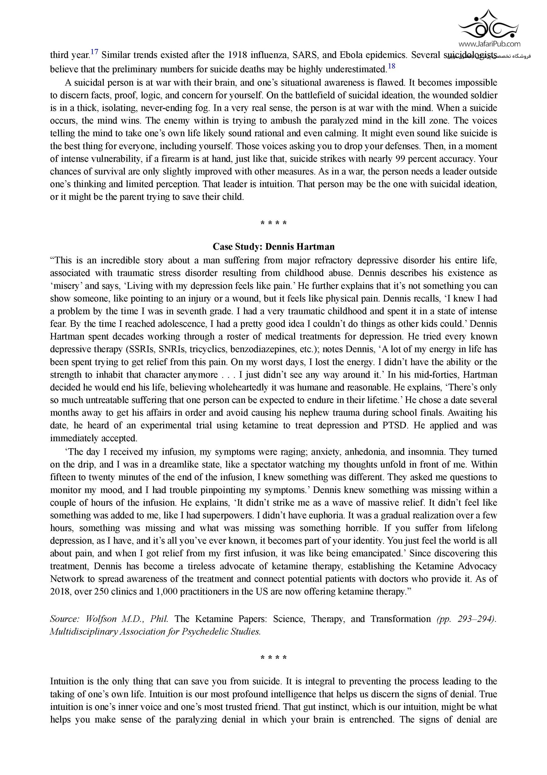 هر سال حدود 1 میلیون نفر با این عمل روبرو می شوند. تصور کنید که عزیز شما مصمم است به زندگی خود پایان دهد و شما می توانید از او کمک بگیرید. پس از خواندن کتامین انقلابی متوجه خواهید شد: