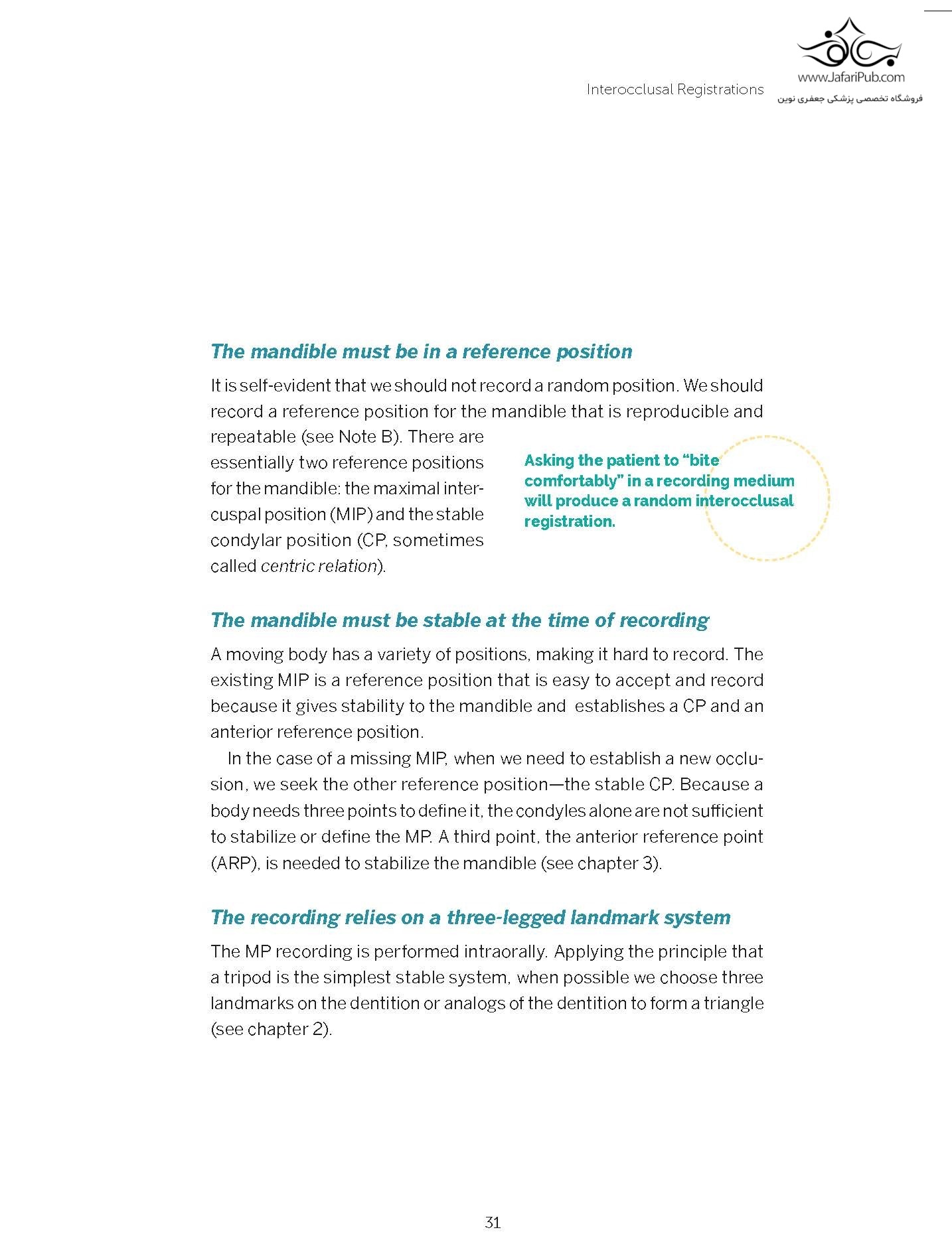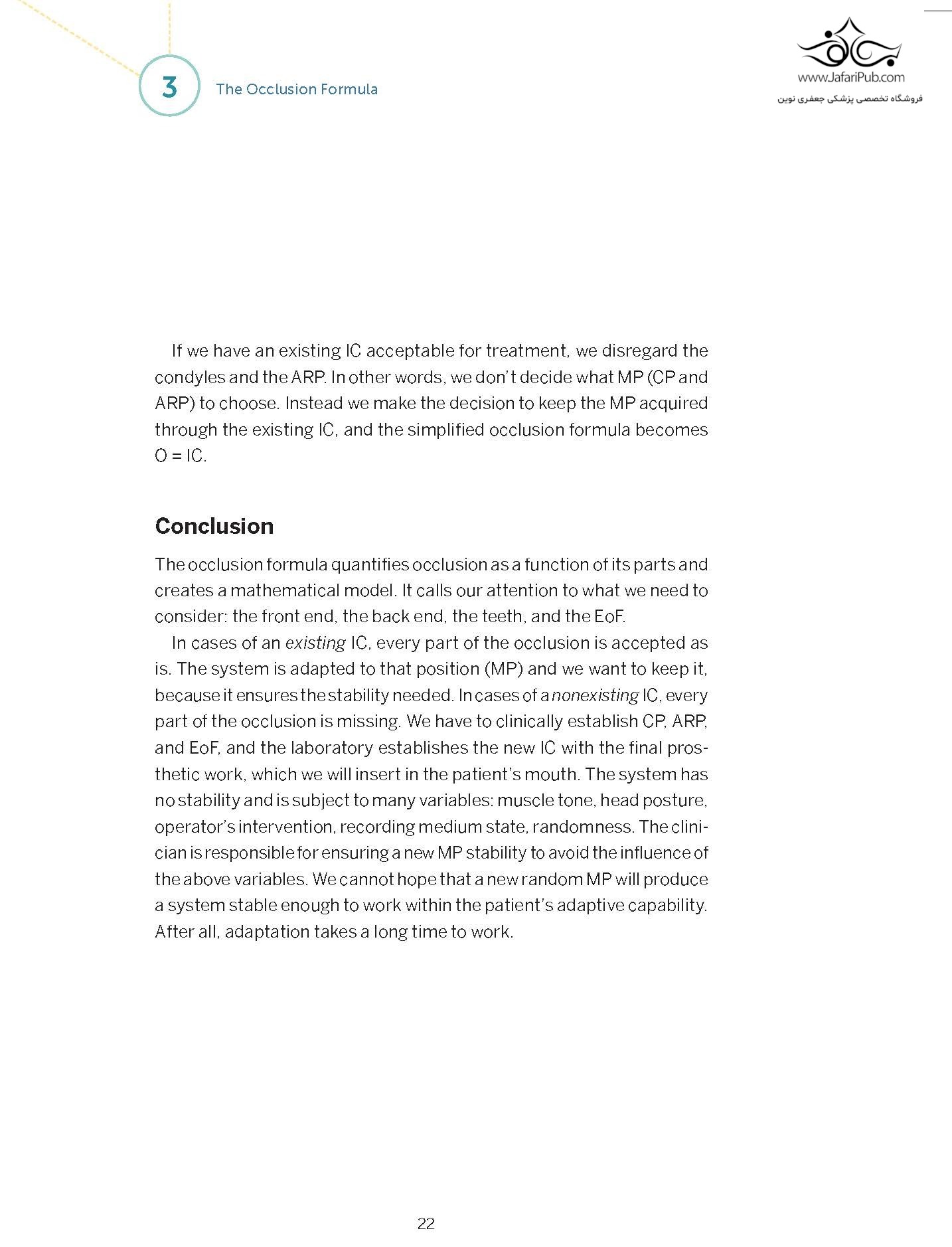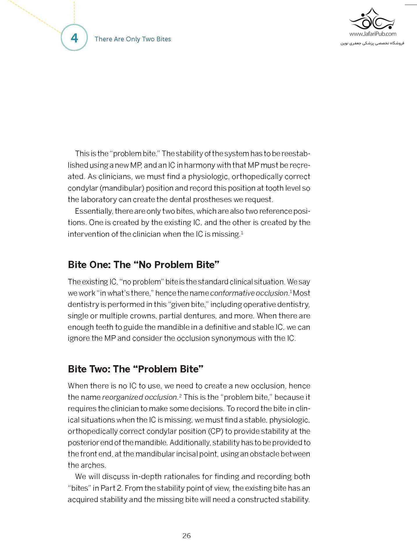 انسداد اغلب به «ضربه زدن، ضربه زدن و آسیاب کردن» علامت های کاغذی بیان می شود که دندانپزشکان روزانه انجام می دهند. قرارهای ملاقات پر از پر کردن، روکش های منفرد، بریج ها یا کارهای گسترده تر پروتزهای ثابت است. و برای 90٪ از این قرار ملاقات ها، انسداد را می توان تا حد زیادی نادیده گرفت تا زمانی که زمان آن فرا رسد که مقاله مفصلی در پایان قرار گرفته شود. ضربه بزنید، ضربه بزنید و آسیاب کنید. علائم قرمز را سوراخ کنید. با این حال، گاهی اوقات نیش فعلی بیمار اجازه درمان لازم را نمی دهد و باید یک انسداد جدید ساخته و به آزمایشگاه منتقل شود. اما چگونه؟ آیا بیمار باید موقعیت فک بالا را تعیین کند (یعنی نشان دهد کجا احساس راحتی می کند)، یا باید اصول علمی برای یافتن رابطه فیزیولوژیک فک بالا اعمال شود؟ چگونه انسداد جدید را برای آزمایشگاه ثبت می کنید؟ این جایی است که این کتاب وارد می شود - برای آموزش یک مفهوم ساده از انسداد که می تواند به شما در انجام درمان قابل پیش بینی و موفقیت آمیز کمک کند. این کتاب به دو بخش تقسیم می شود: بخش 1 اصول راهنما و مدل ساده شده انسداد را تشریح می کند، و قسمت 2 موقعیت های خاصی را نشان می دهد که هنگام تشخیص، برنامه ریزی درمان و درمان موارد بیماران خود با آنها مواجه خواهید شد. نویسنده مایکل رادو همه چیز را تجزیه می کند و تشبیه های توضیحی را ارائه می دهد تا به شما کمک کند اصول انسداد را به گونه ای مفهوم سازی کنید که بتوانید آن را درک کنید و در تمرین روزانه به نفع بیماران خود اعمال کنید. 210 تصویر محتویات: 1. چرا به انسداد نیاز داریم؟ 2. اصول عملی انسداد 3. فرمول انسداد 4. فقط دو بایت وجود دارد 5. تکنیک های بالینی و اصول ضبط بین اکلوژنی 6. تکنیک های معاینه و برنامه ریزی درمان ثبت بین اکلوژن برای یک انسداد جدید 9. تکنیک های تعادل انسداد 10. تکنیک های ثبت پاکت عملکرد 11. تکنیک های ارتباط با آزمایشگاه 12. تکنیک های آنالوگ در مقابل تکنیک های دیجیتالی برای اینتراکلوشنال