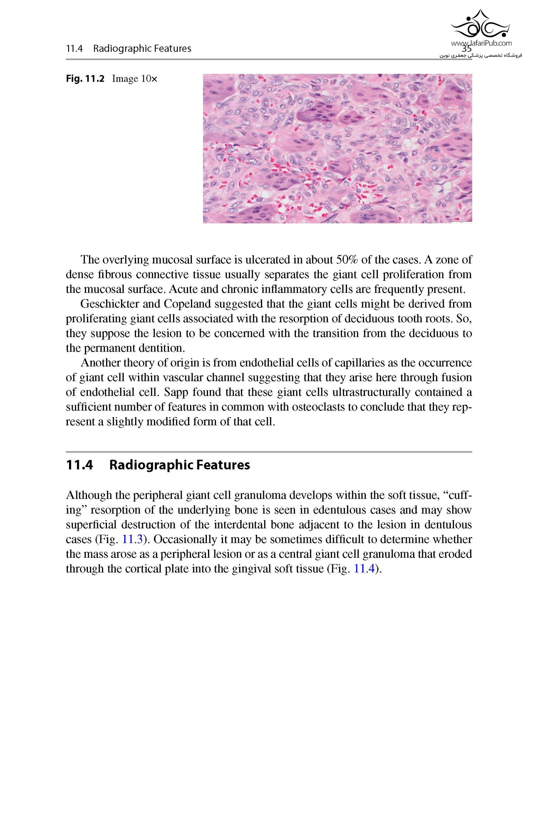 فصل ها ویژگی های بالینی ضایعات سلول غول پیکر را به همراه ویژگی های بافت شناسی و رادیوگرافی عمیق به زبانی آسان توصیف می کنند. این کتاب به آخرین روندها در مدیریت این شرایط می پردازد. این شامل بخش ویژه ای در مورد روش های تصویربرداری پیشرفته با تصاویر مرتبط برای ضایعات مختلف است.