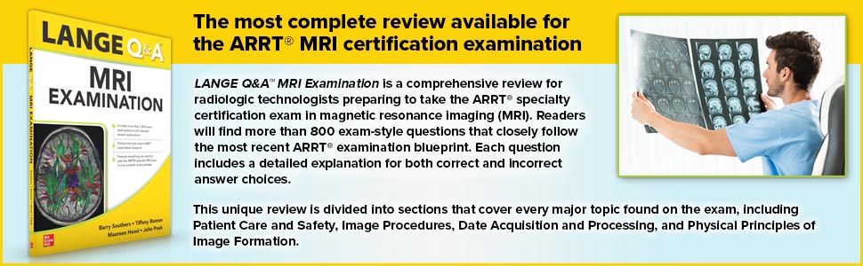 LANGE Q&A™ MRI Examination is a comprehensive review for radiologic technologists preparing to take the ARRT® specialty certification exam in magnetic resonance imaging (MRI). Readers will find more than 800 exam-style questions that closely follow the most recent ARRT® examination blueprint. Each question includes a detailed explanation for both correct and incorrect answer choices.